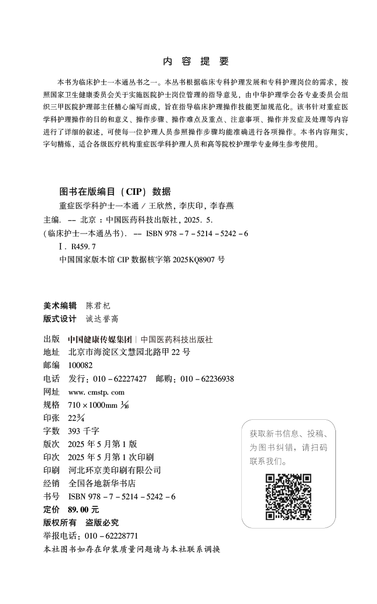 重症医学科护士一本通(临床护士一本通丛书)王欣然 李庆印 李春燕 主编 适合各级医疗机构重症医学科护理人员等中国医药科技出版社