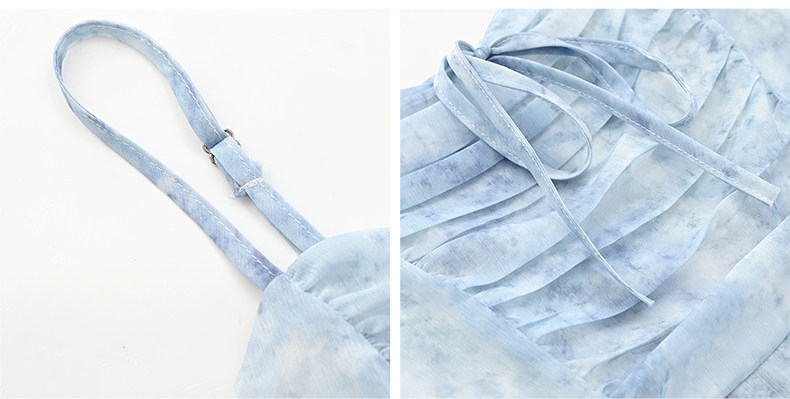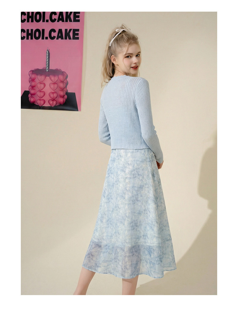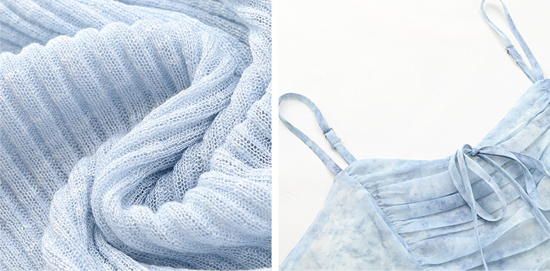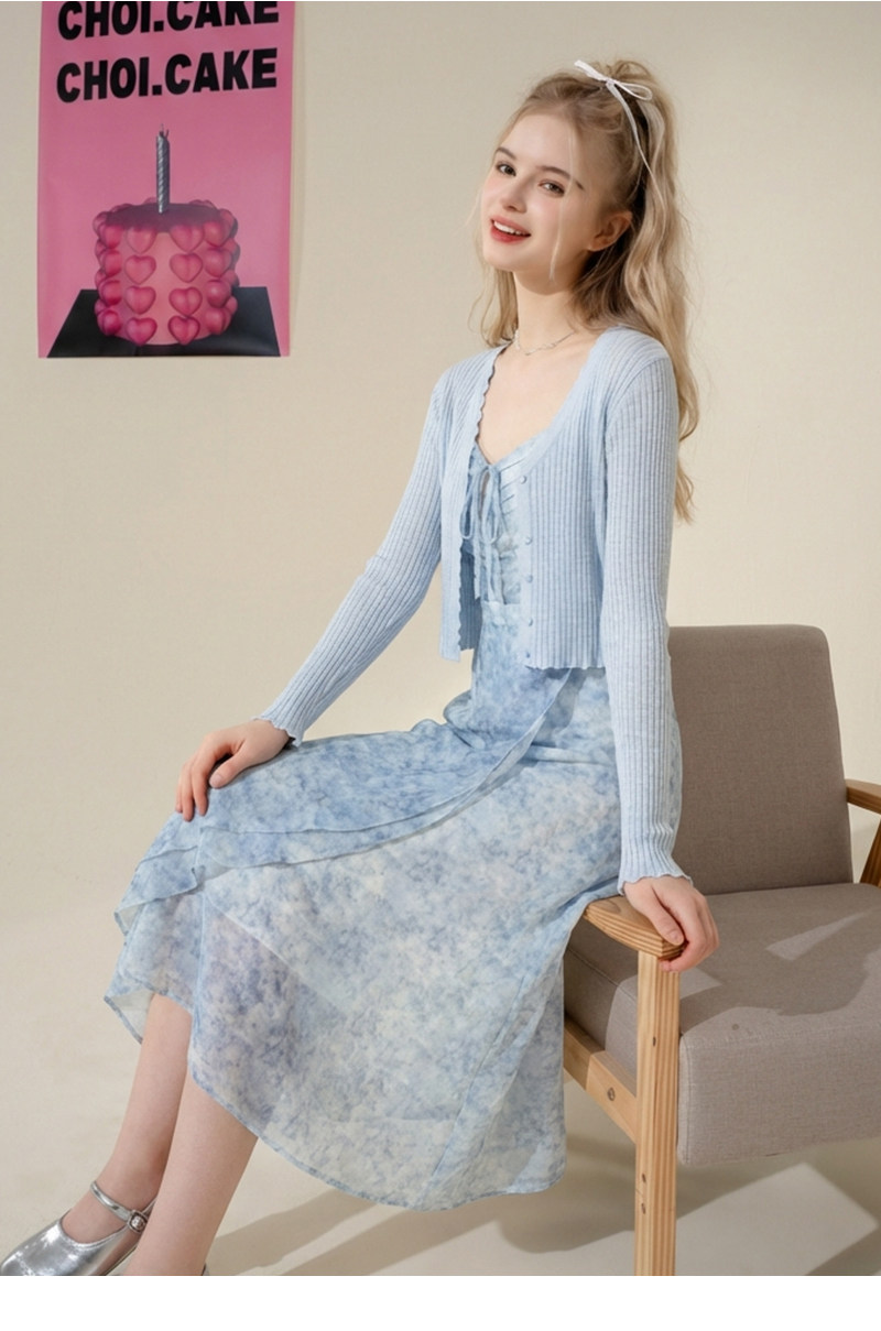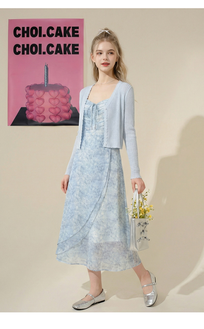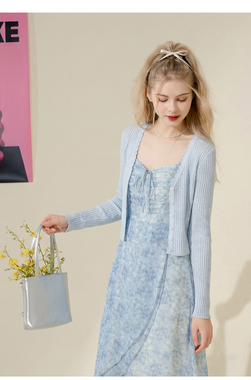 mc2吊带碎花裙+针织披肩两件套女夏季新款显白蓝色系小个子