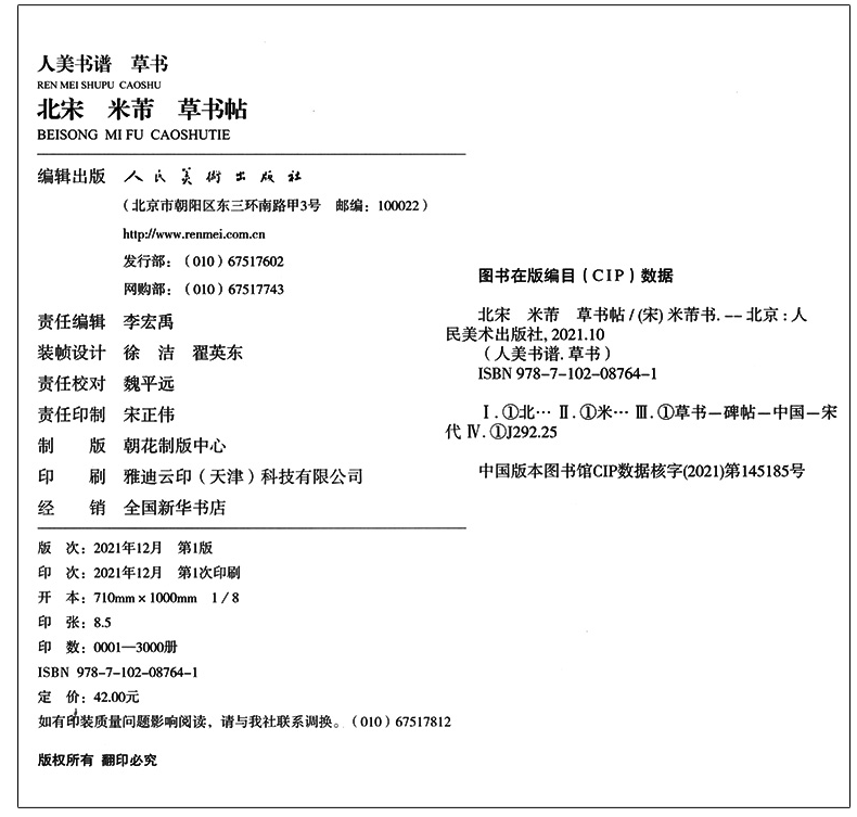 人美书谱 草书 北宋 米芾 草书帖【现货包邮】RM0049