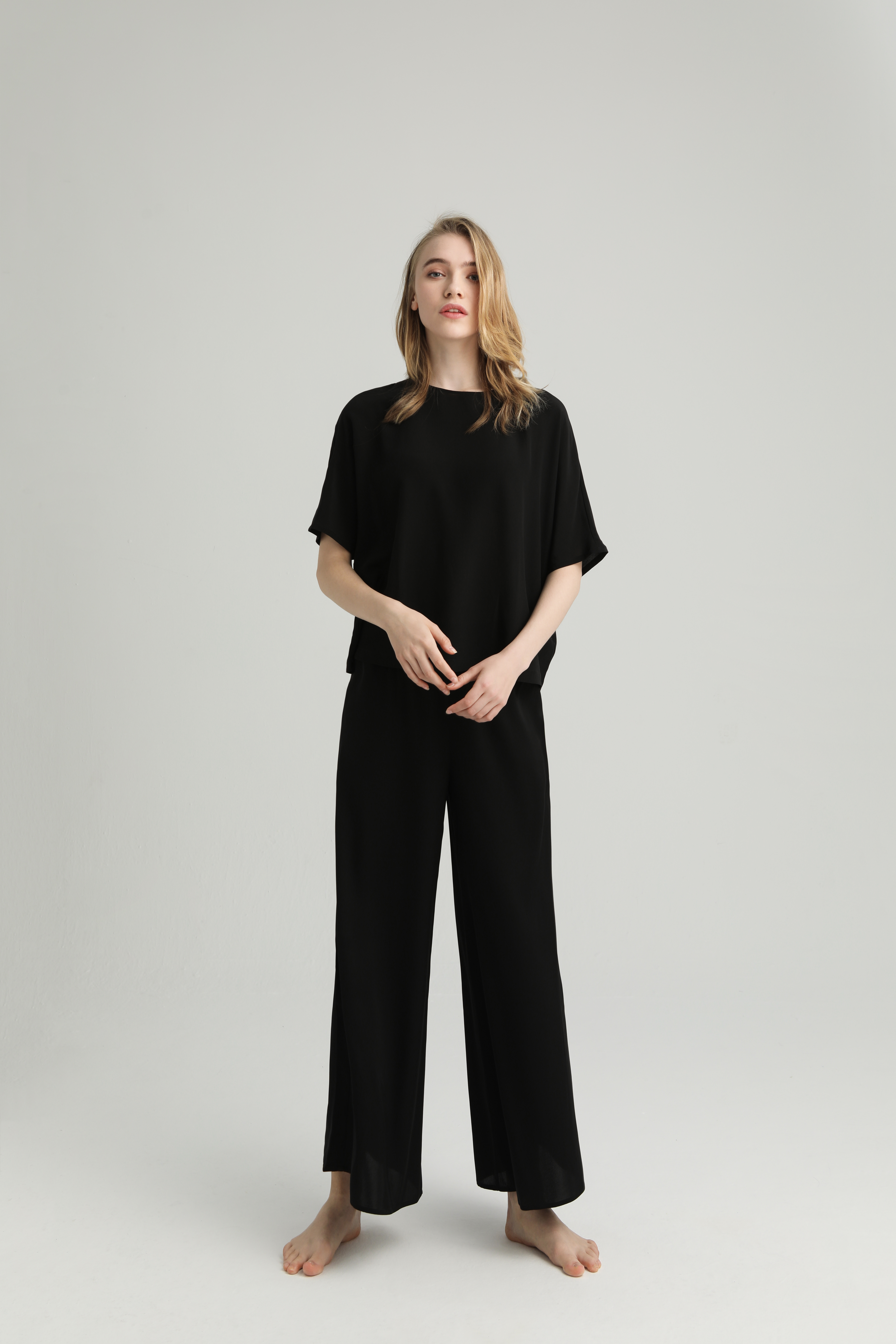 【100%桑蚕丝】SCHIESSER德国舒雅高端铂雅女士宽松款半袖上衣女士直筒宽松真丝长裤91/19307U91/19310P