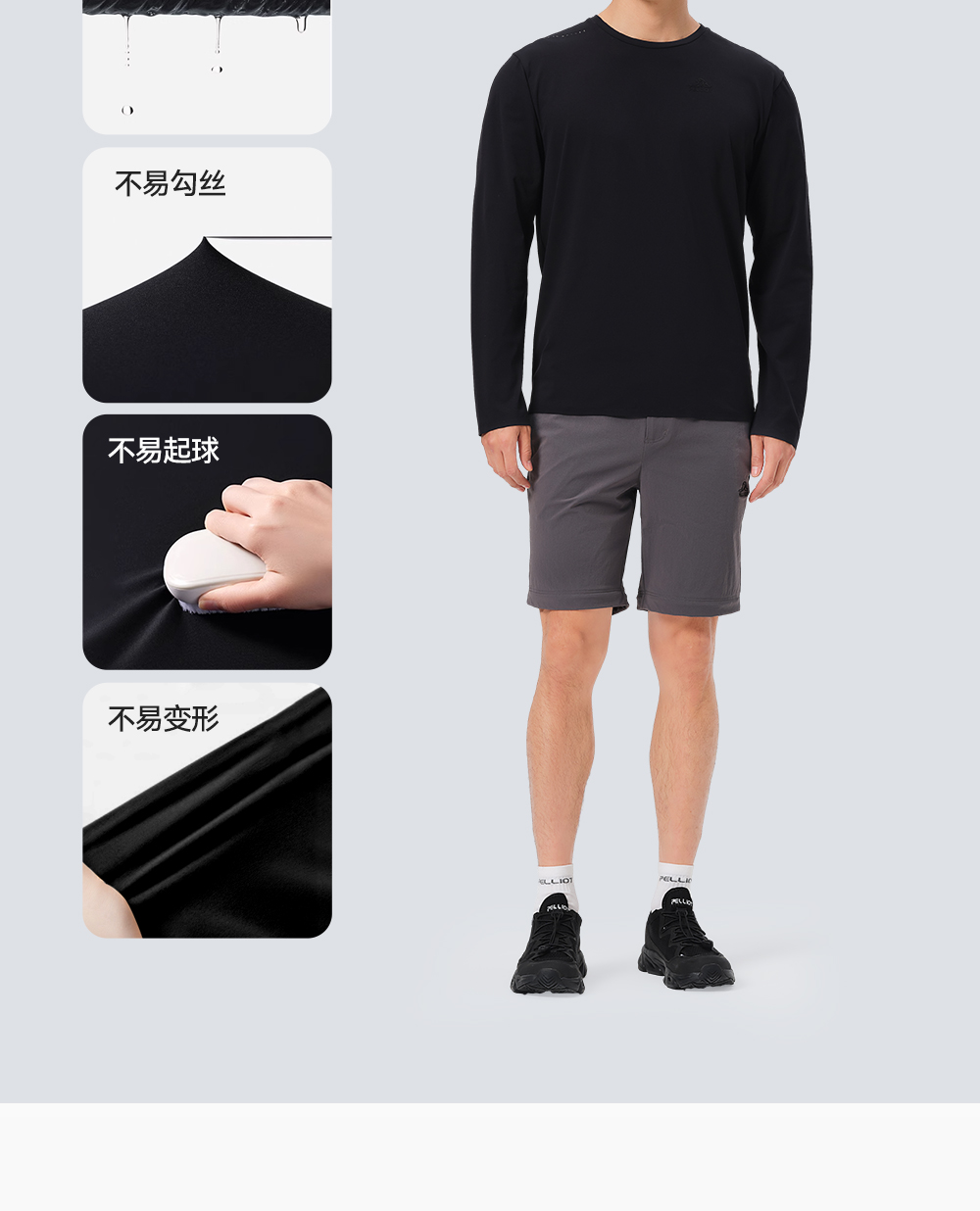 伯希和户外骑行速干T恤男款不闷汗运动长袖高弹抗皱抑菌健身上衣