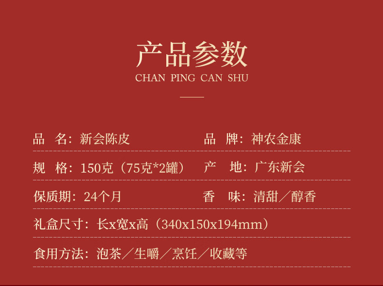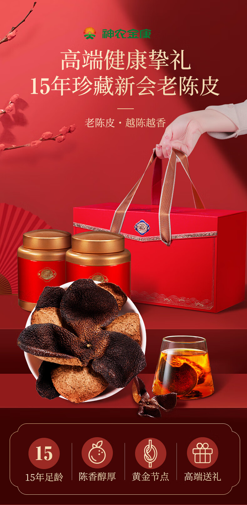 【礼盒】神农金康 十五年新会老陈皮150克(75gx2罐 )新中式滋补礼 原生态真滋补 喝护家人健康