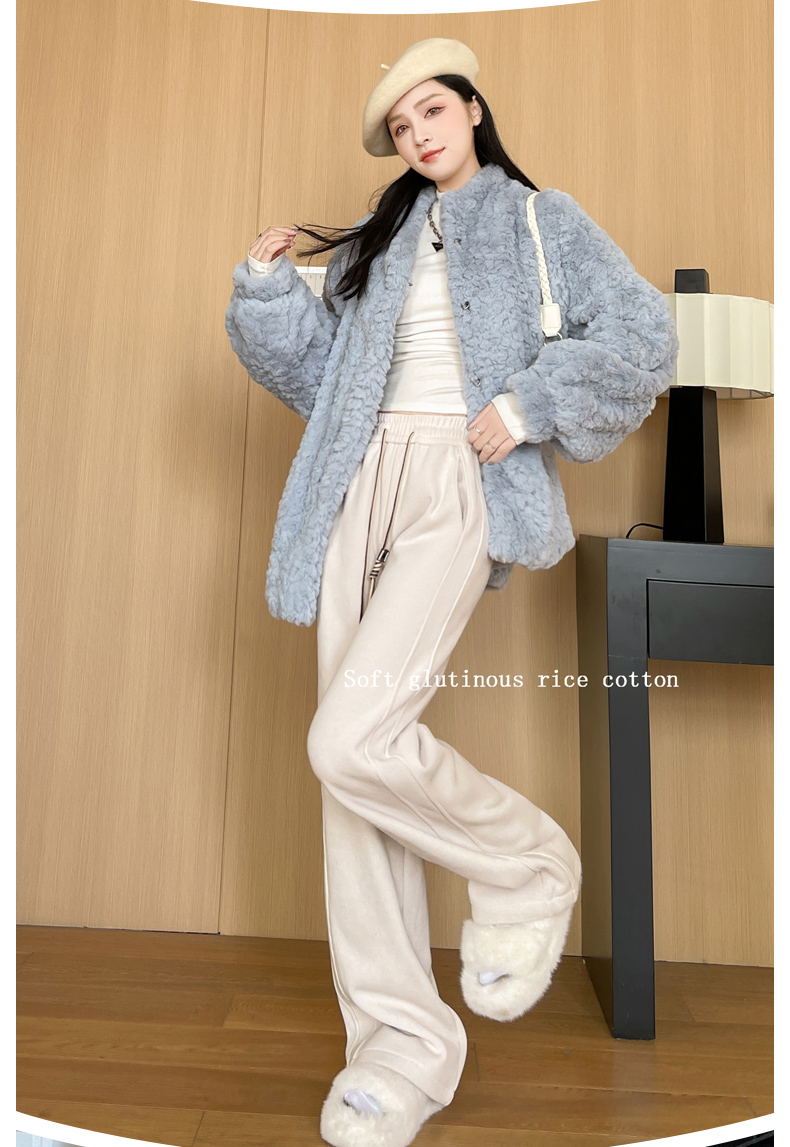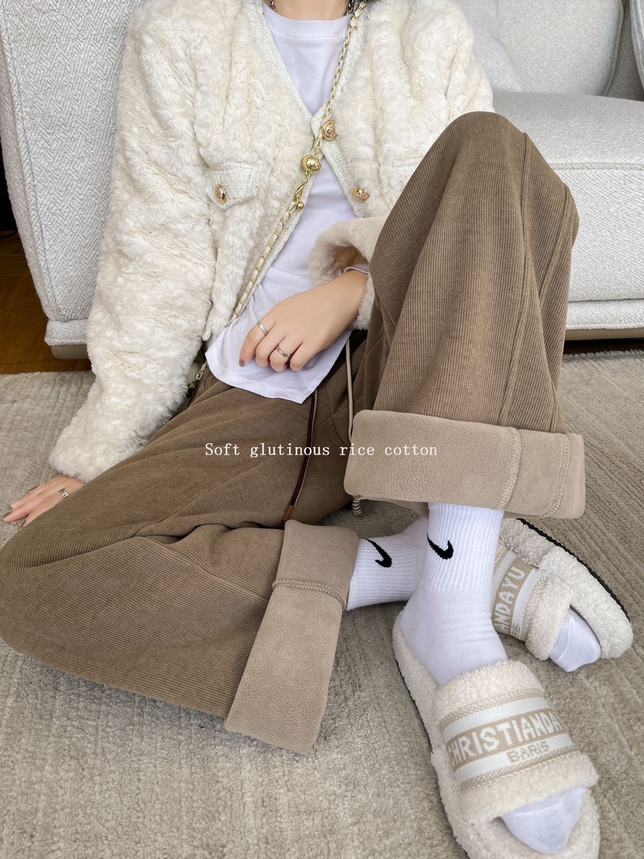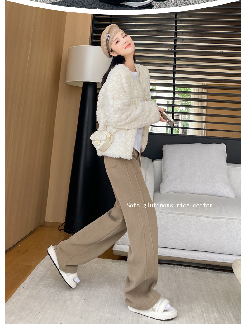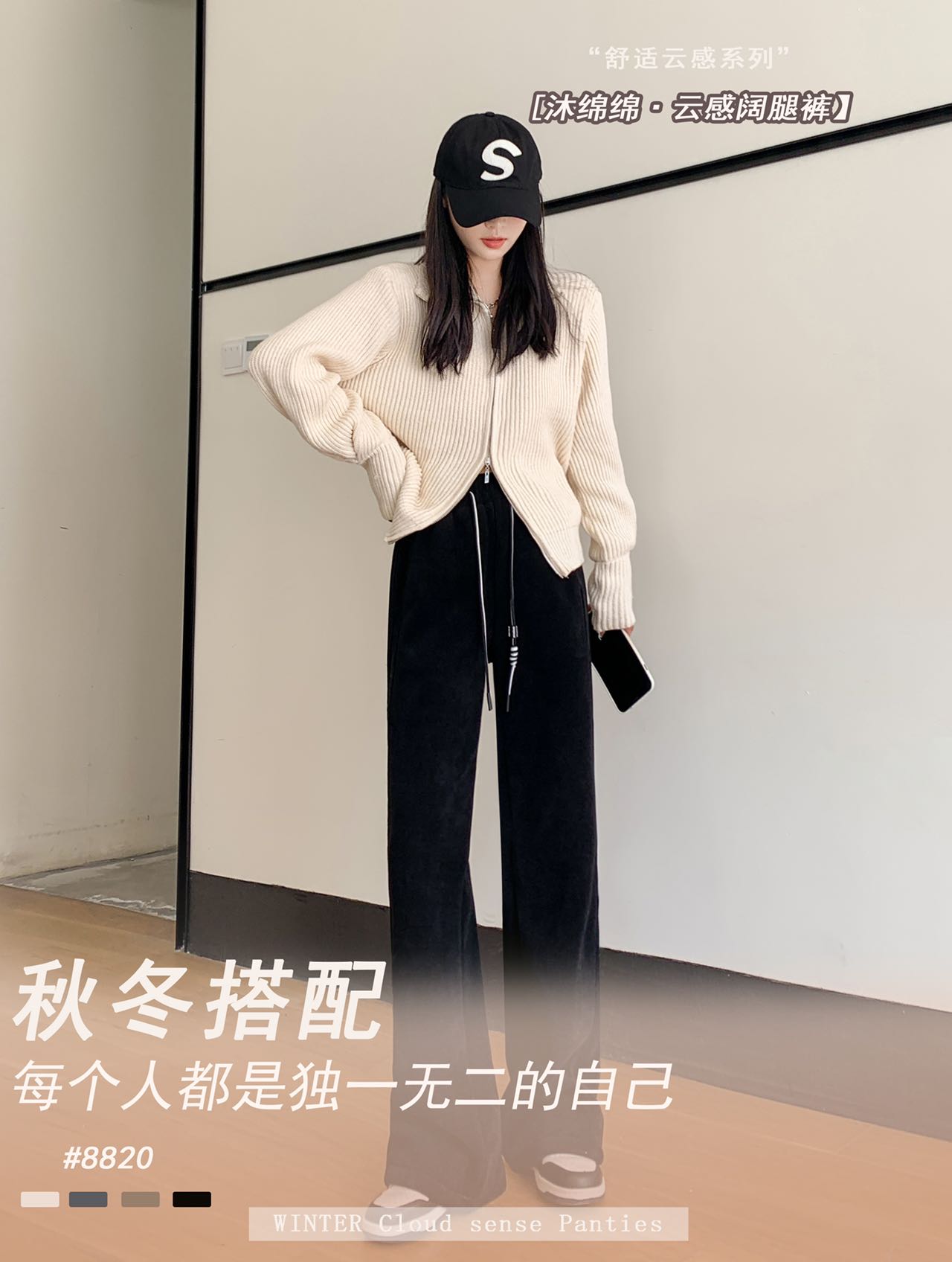 【YW】无忧购韩版百搭高腰垂感沐绒棉加绒保暖云感阔腿裤8820(截单后7天发货)25年清仓捡漏