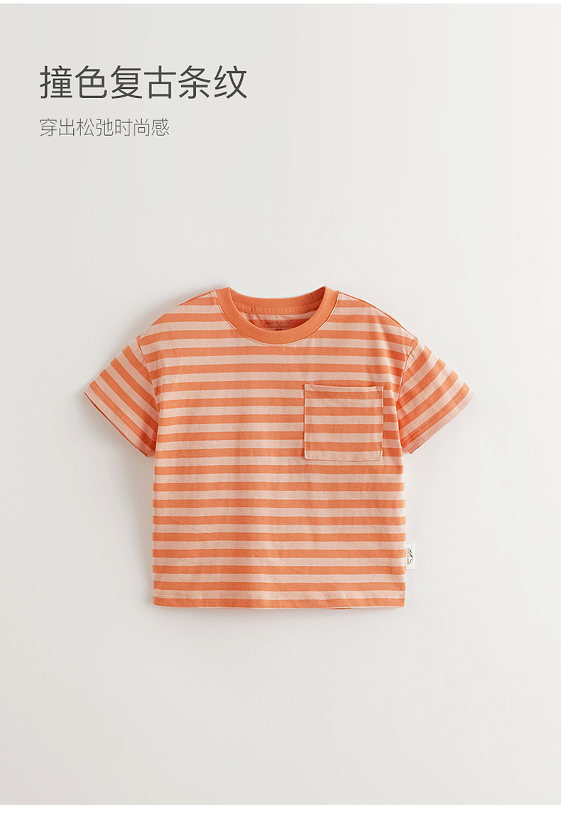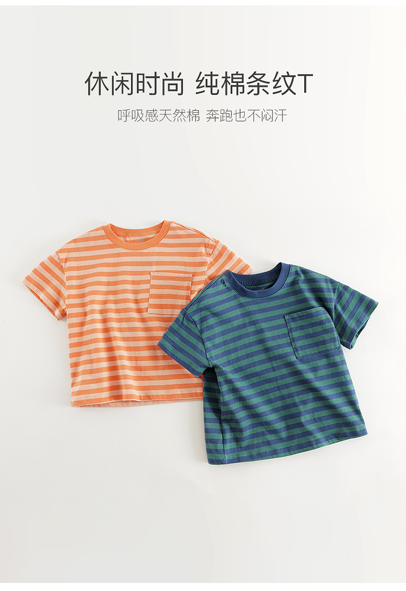 马克珍妮男童时尚条纹短袖T恤 儿童休闲上衣2025年夏装新款550811