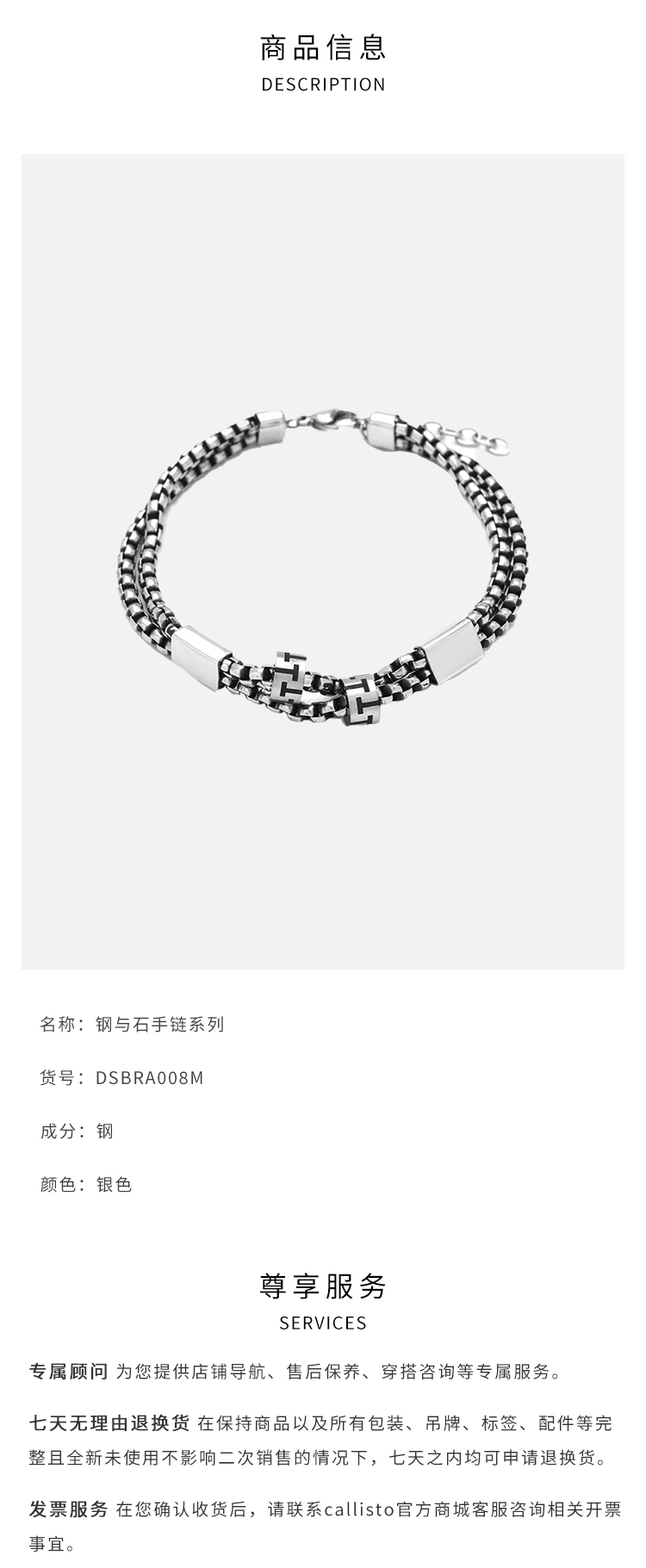 callisto银色钢与石手链系列 DSBRA008M