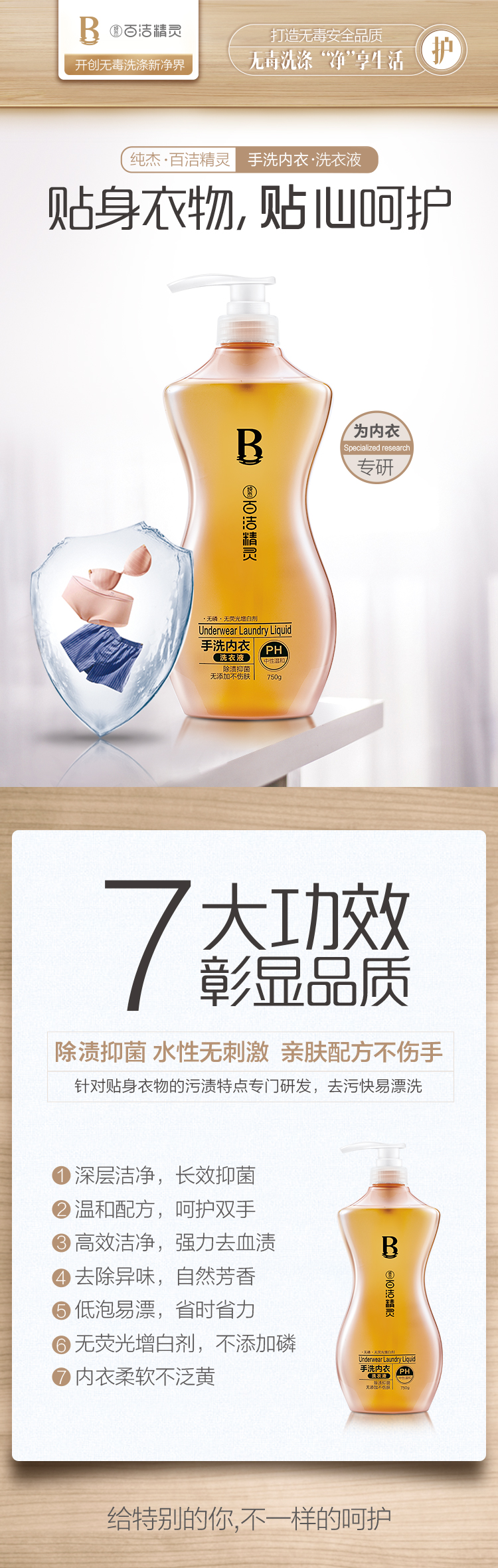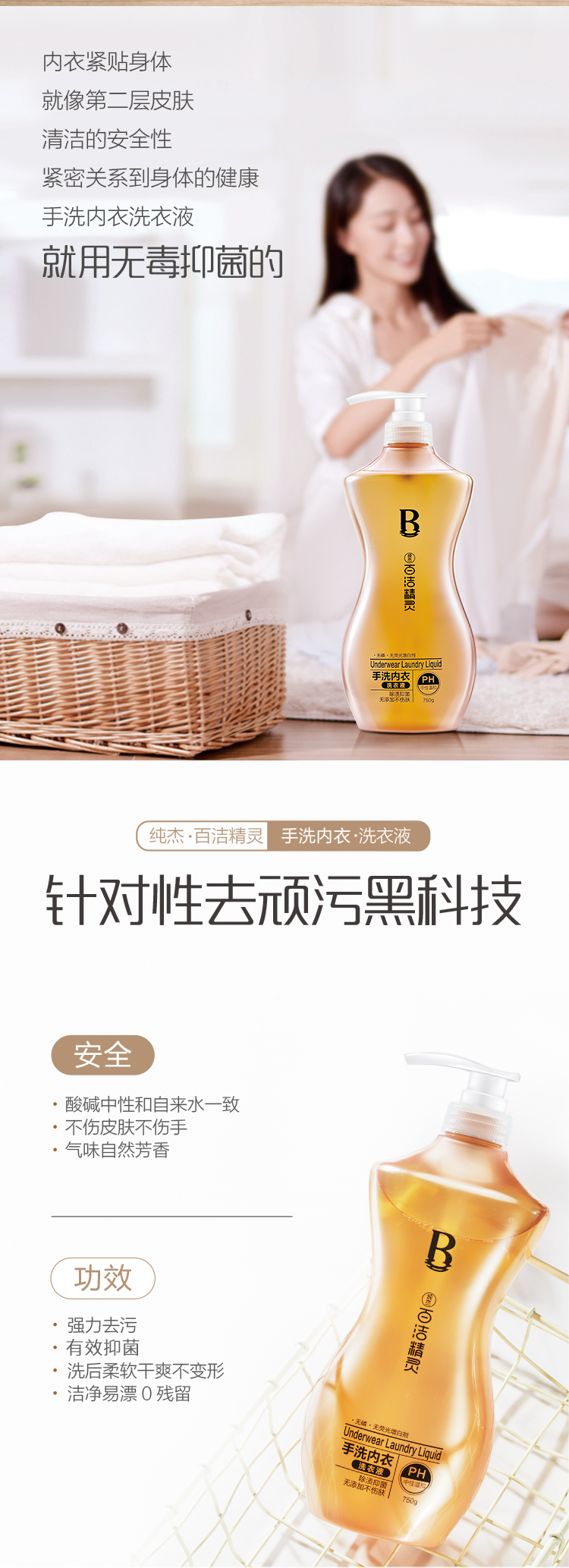 (买二送一)纯杰内衣洗衣液750g/瓶【GA】