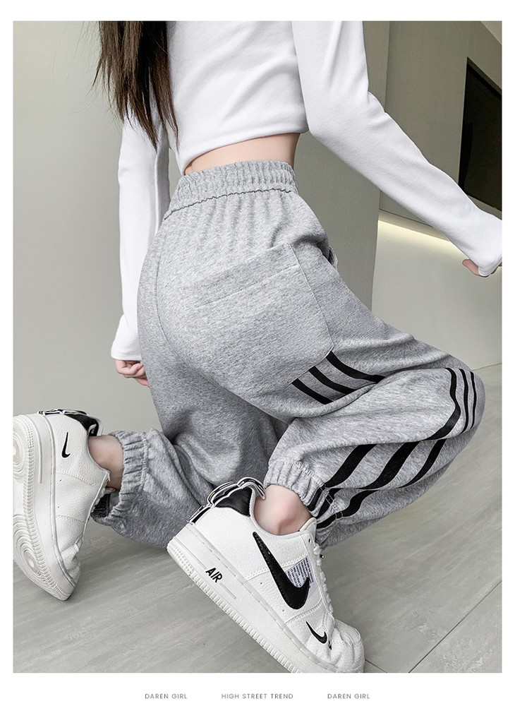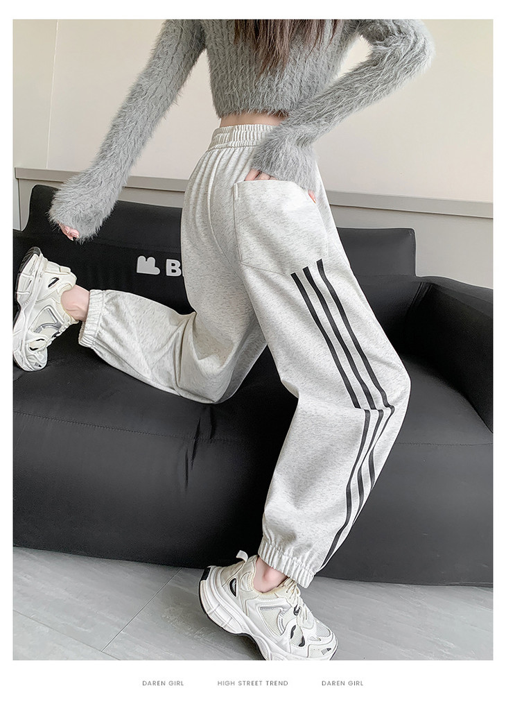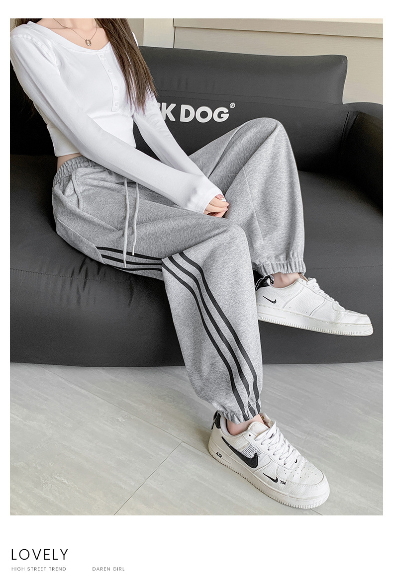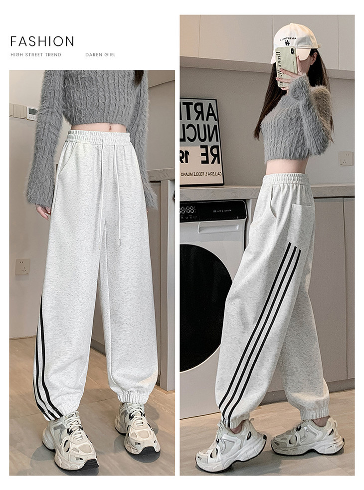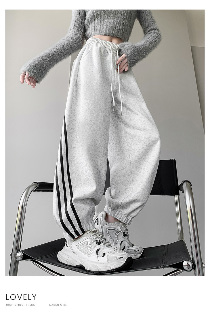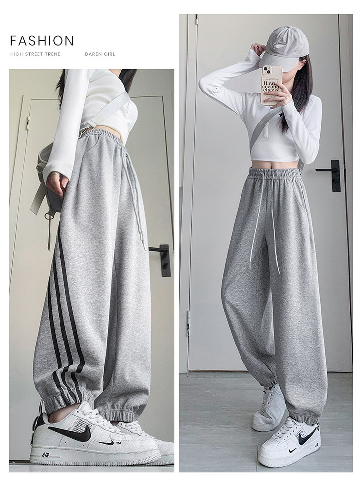 【美式灰色三杠运动裤】女春秋2025新款高腰显瘦哈伦束脚休闲阔腿卫裤
