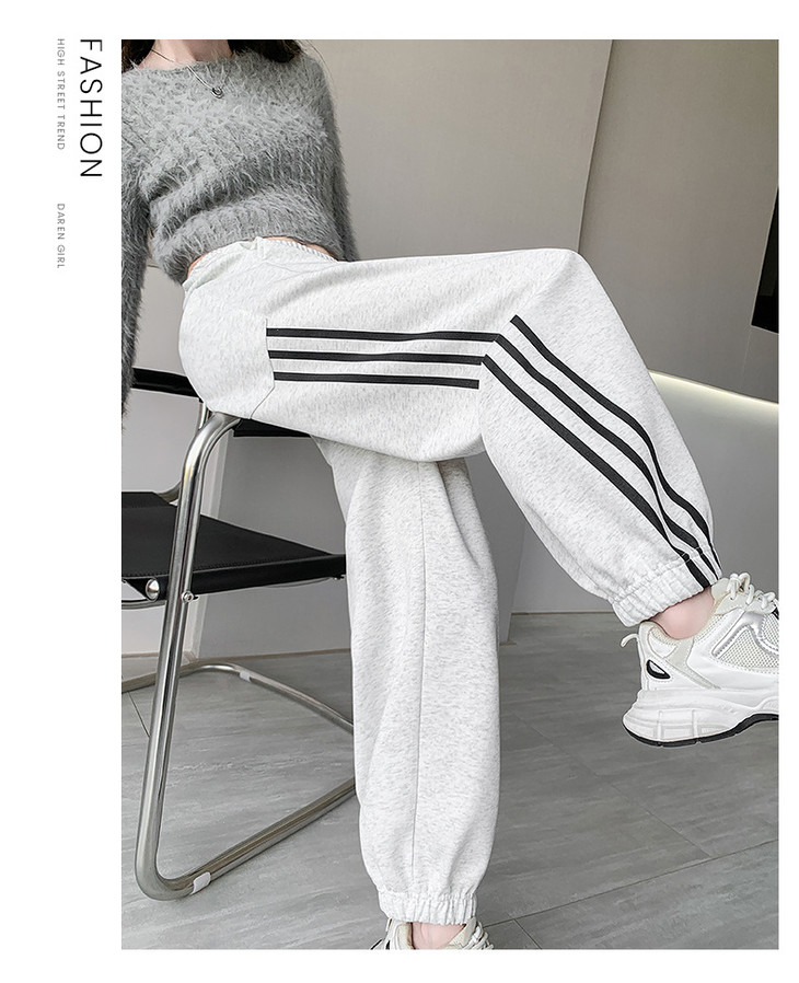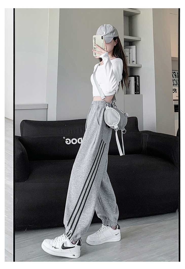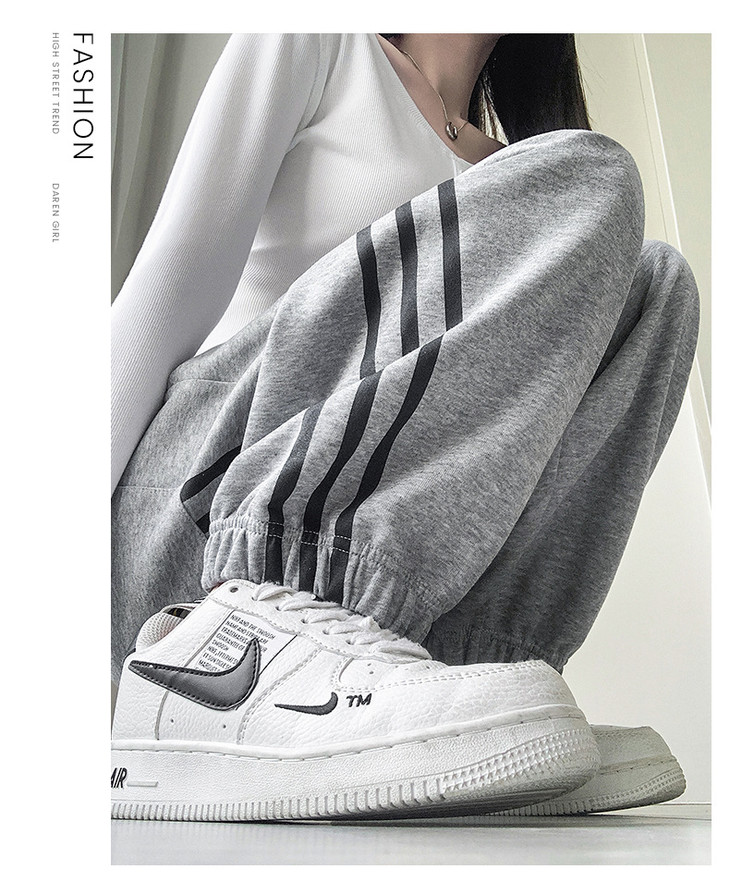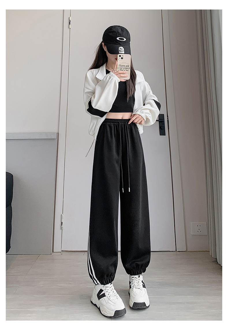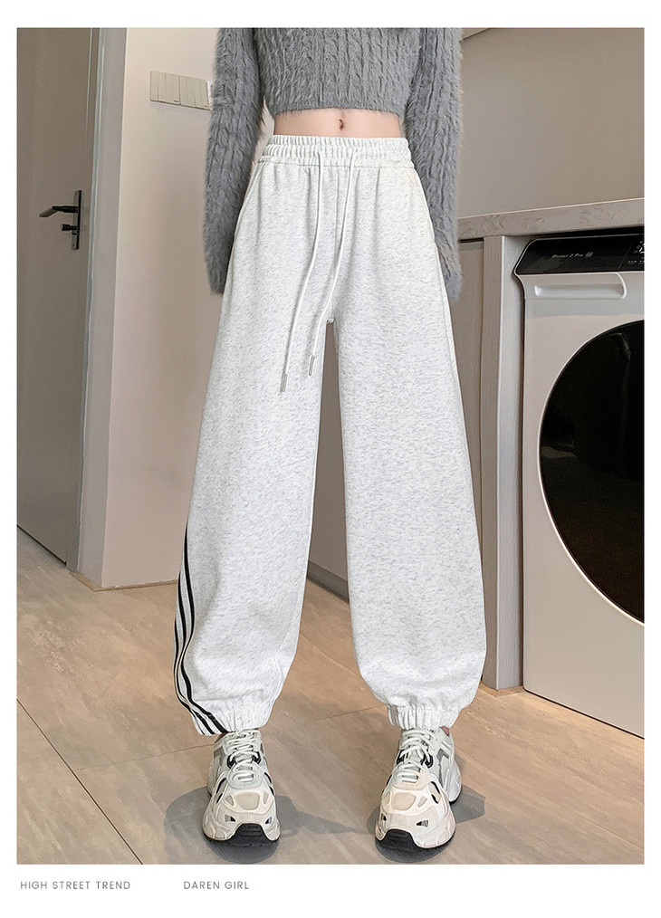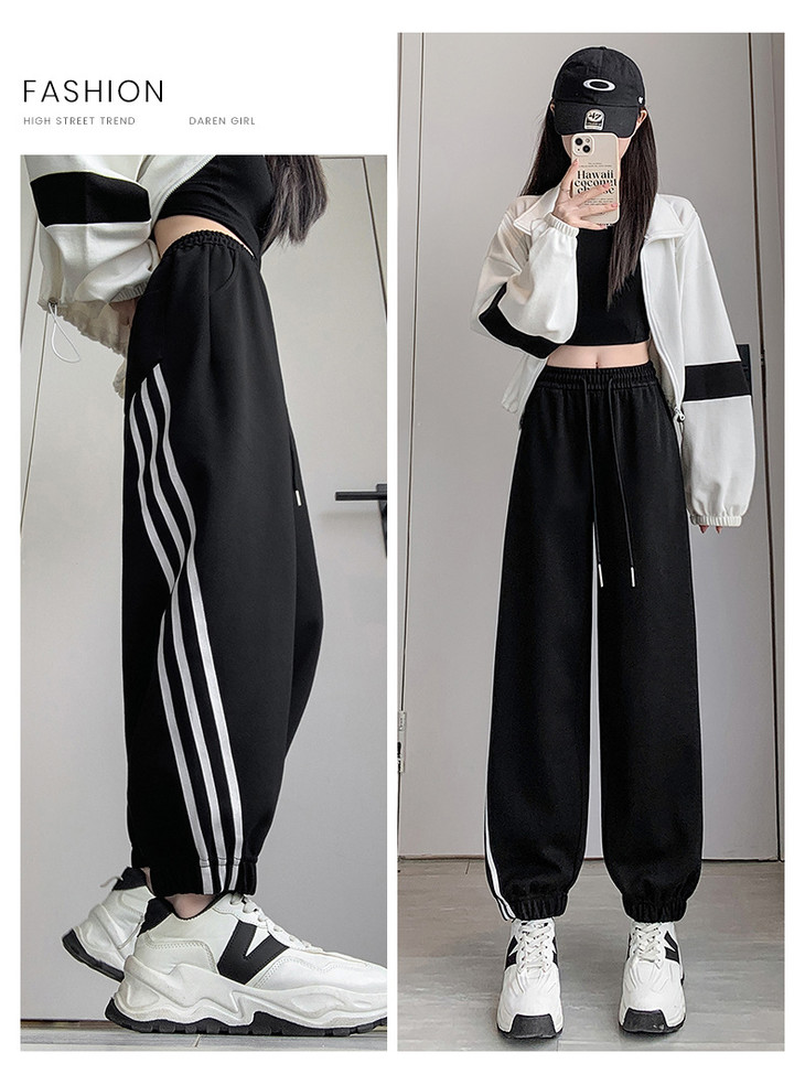 【美式灰色三杠运动裤】女春秋2025新款高腰显瘦哈伦束脚休闲阔腿卫裤