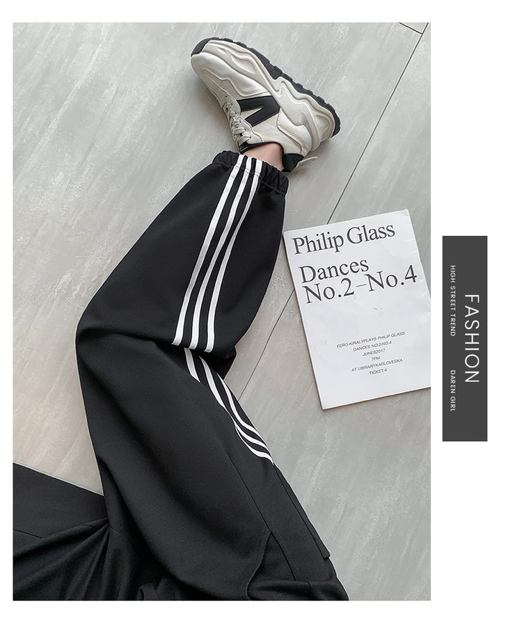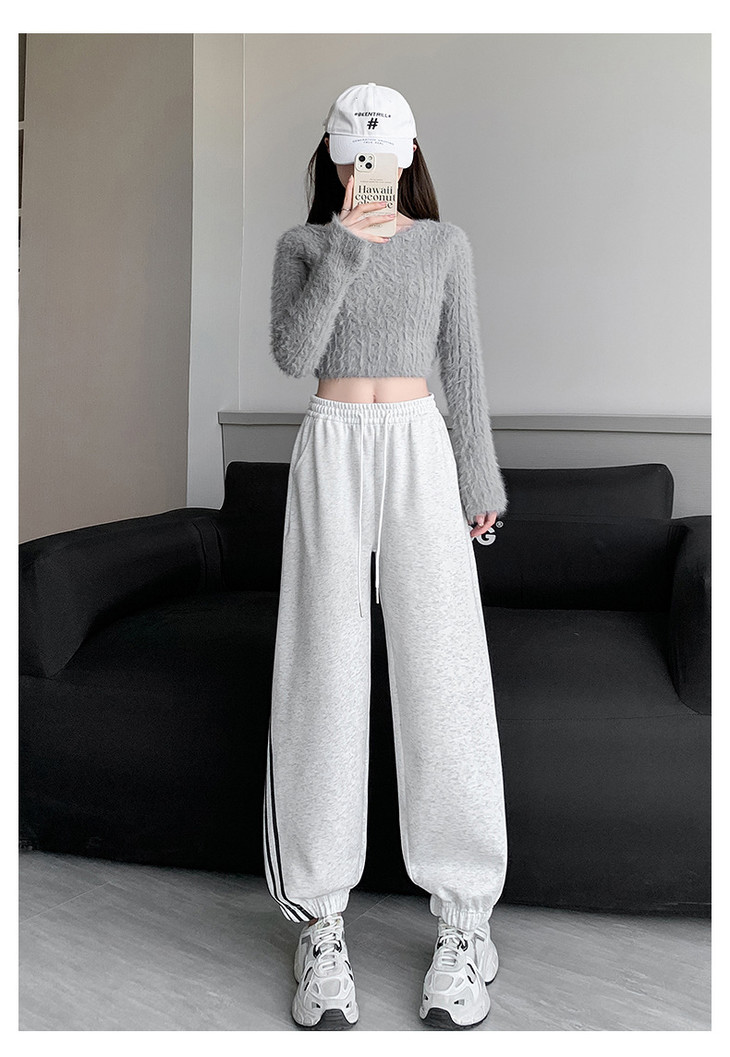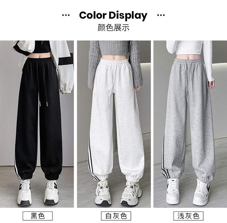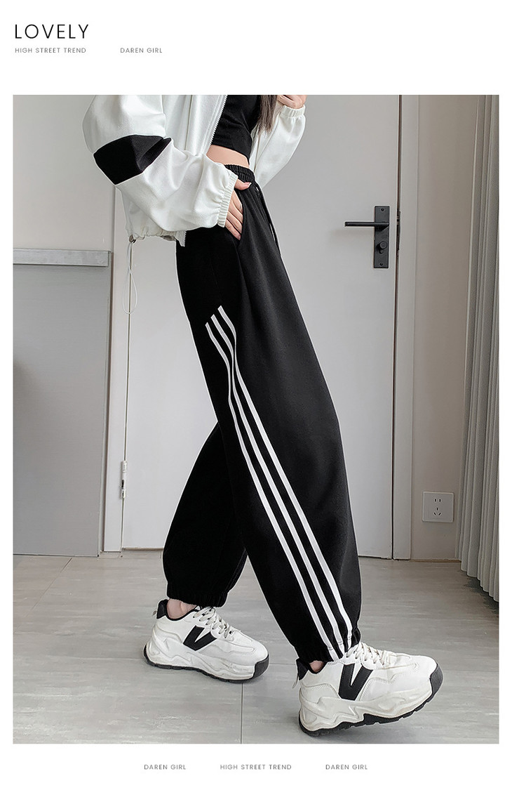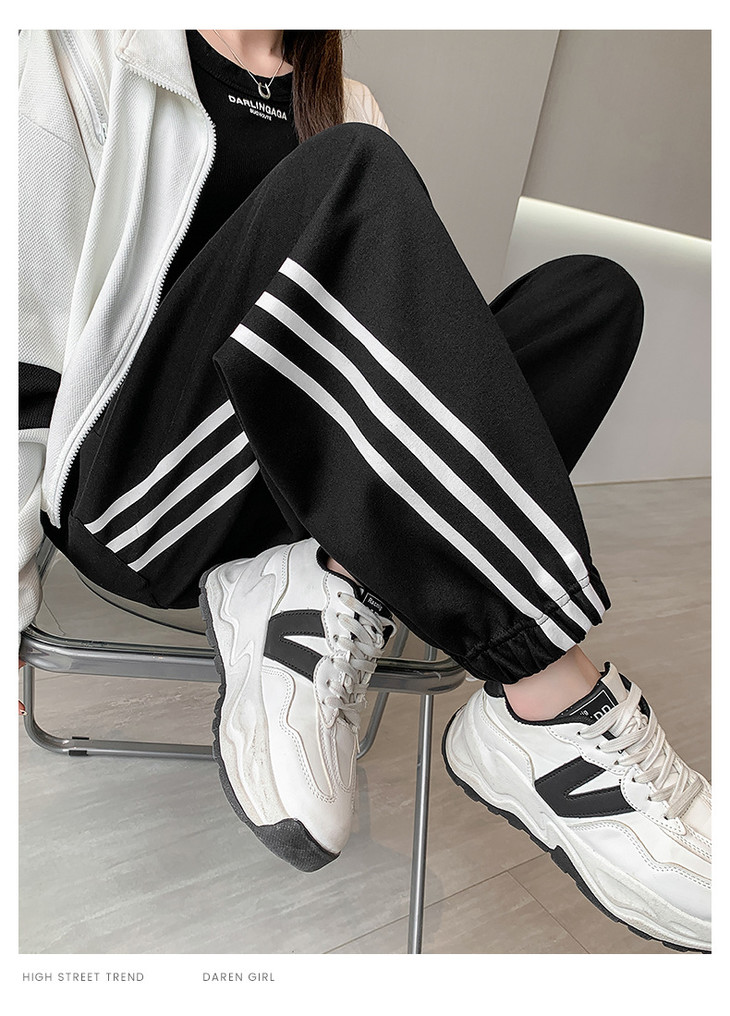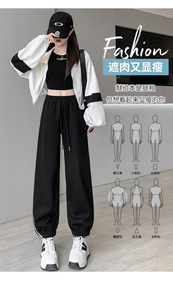 【美式灰色三杠运动裤】女春秋2025新款高腰显瘦哈伦束脚休闲阔腿卫裤