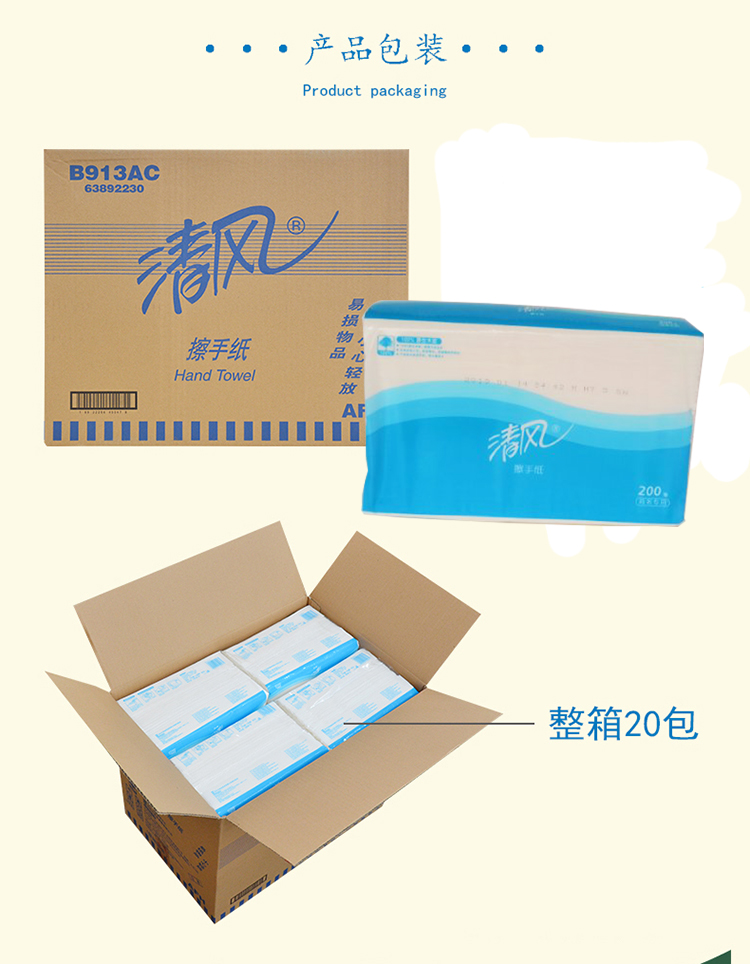 【清仓】有效期2022/10/1清风B913AC 整箱20包 200抽/包 擦手纸抹手纸吸水 单层三折