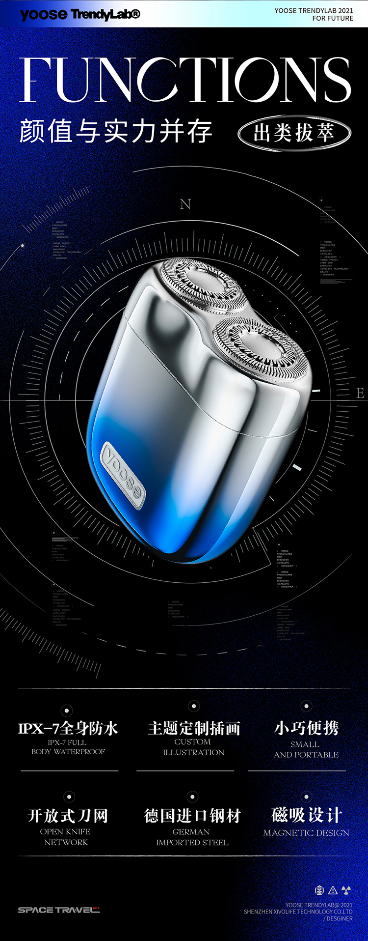 有色(太空漫游2代)电动剃须刀(渐变色)