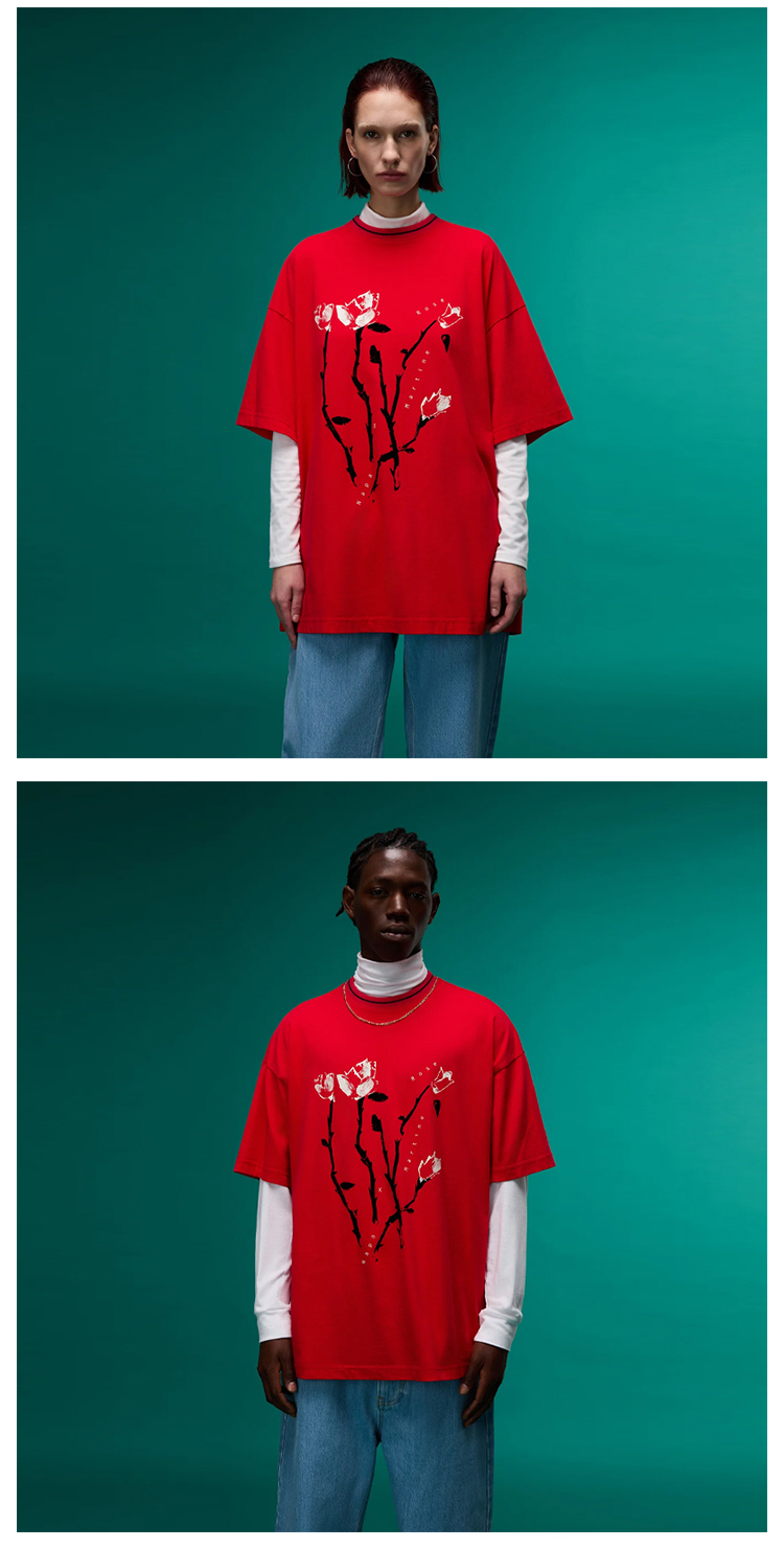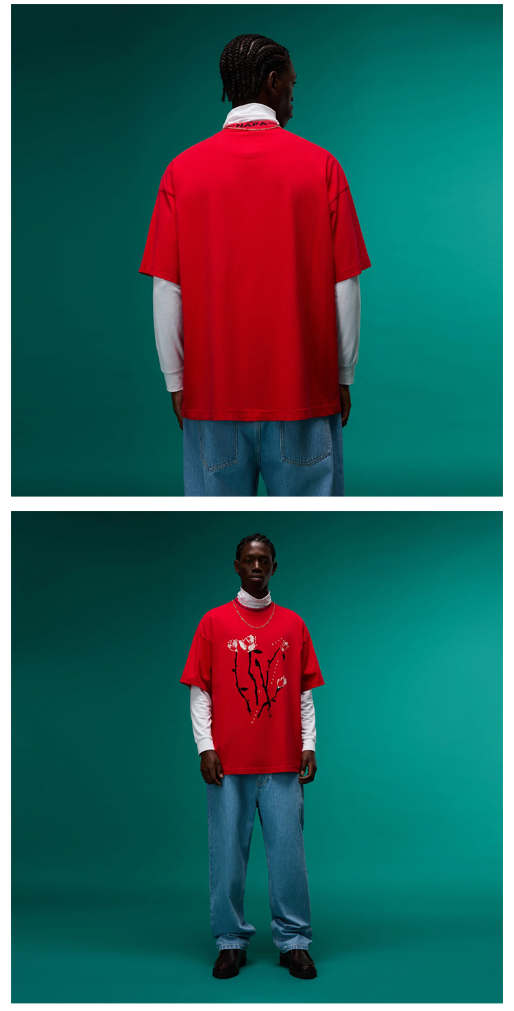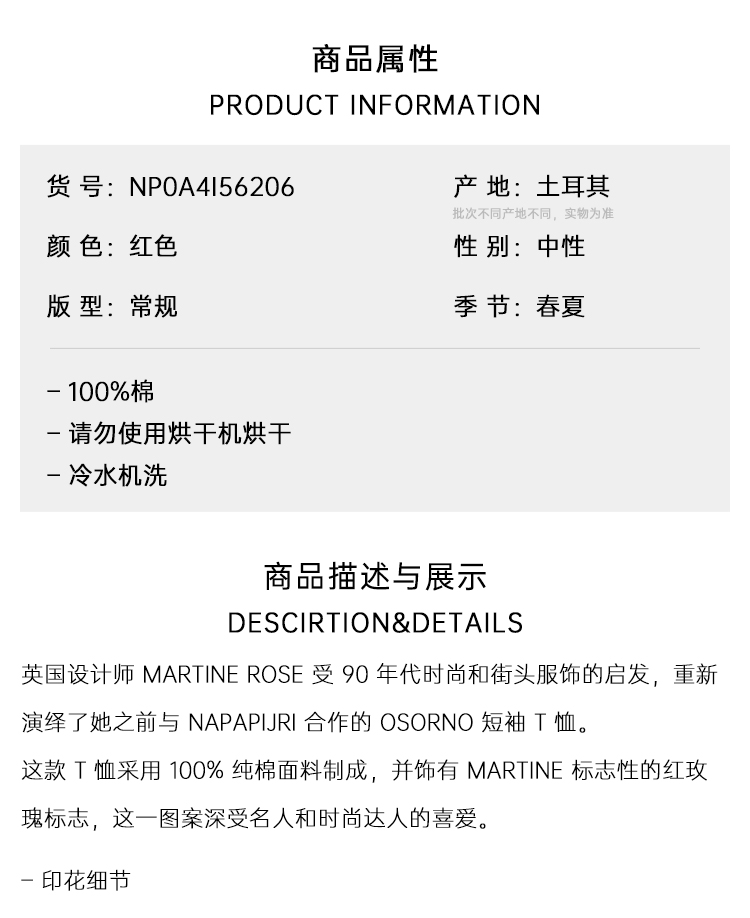 Napapijri 中性玫瑰徽标印花 Osorno 棉质圆领短袖平纹针织T恤 红色 NP0A4I56206