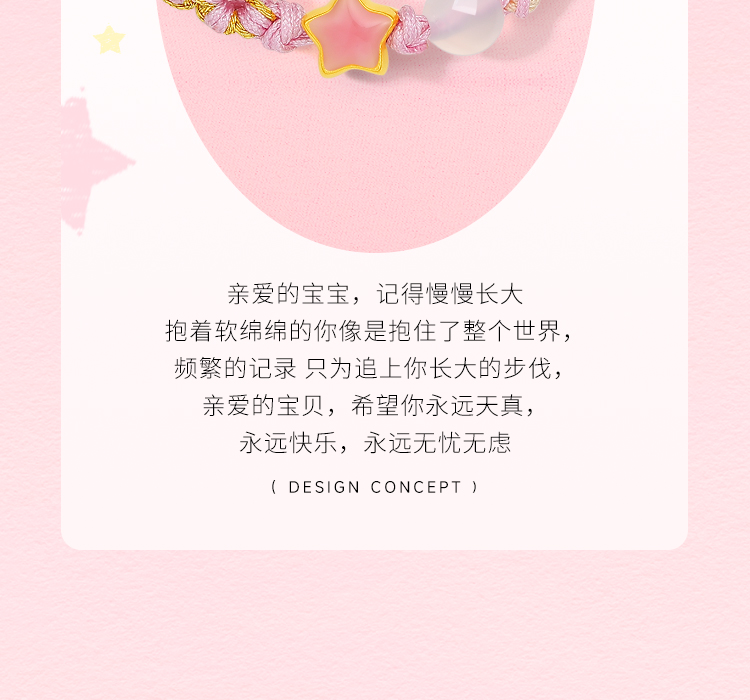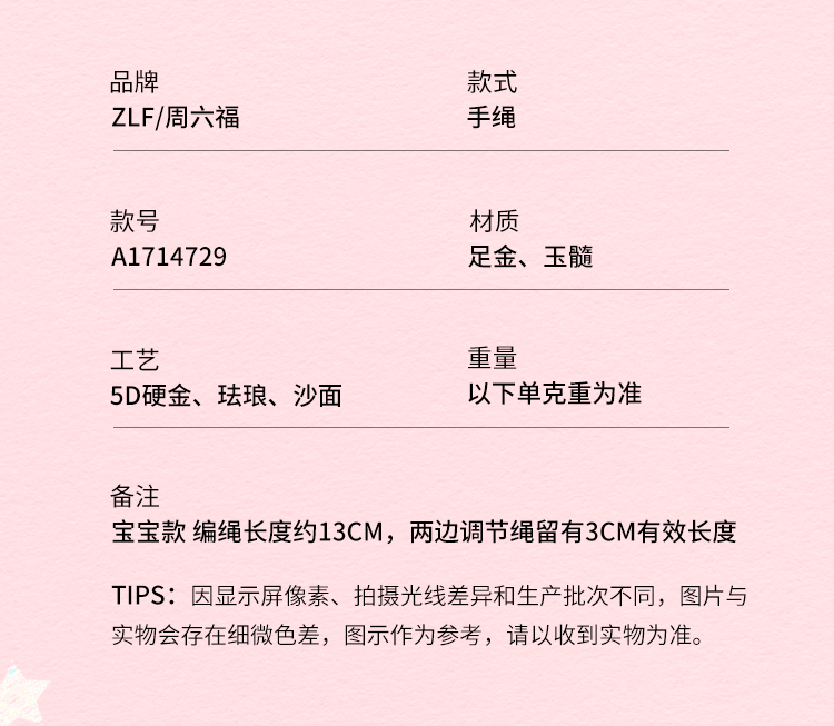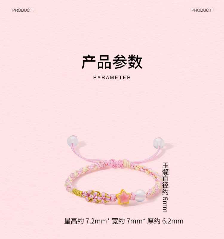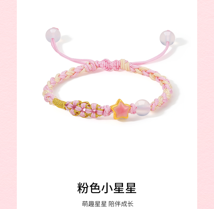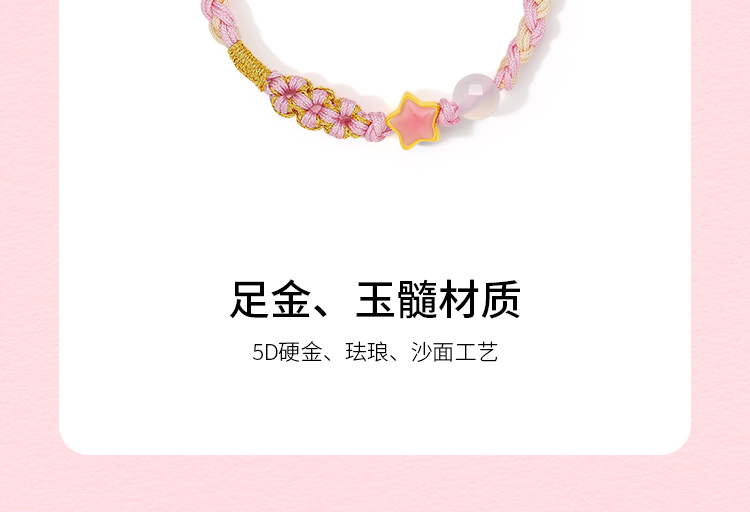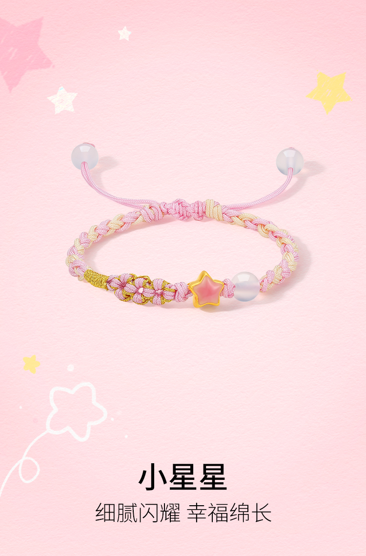 周六福黄金玉髓手绳儿童款5d硬金定价满月周岁幸运星星宝宝金饰