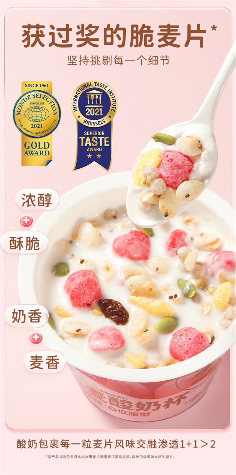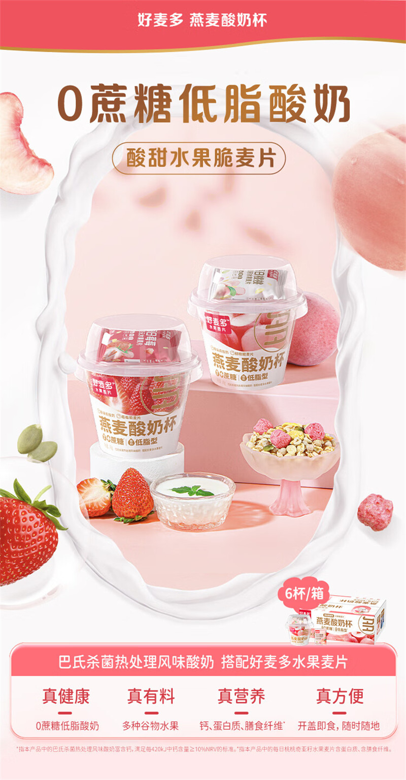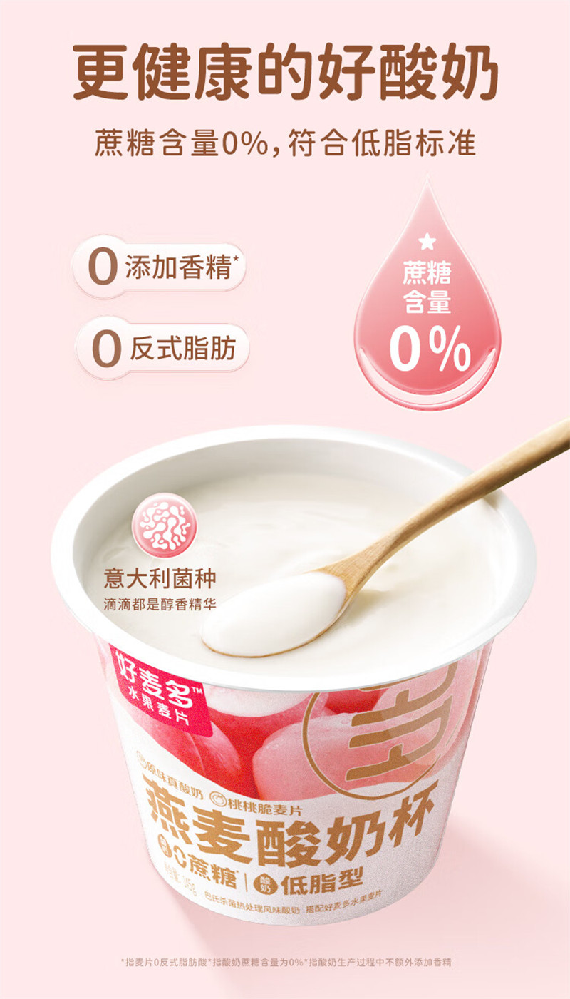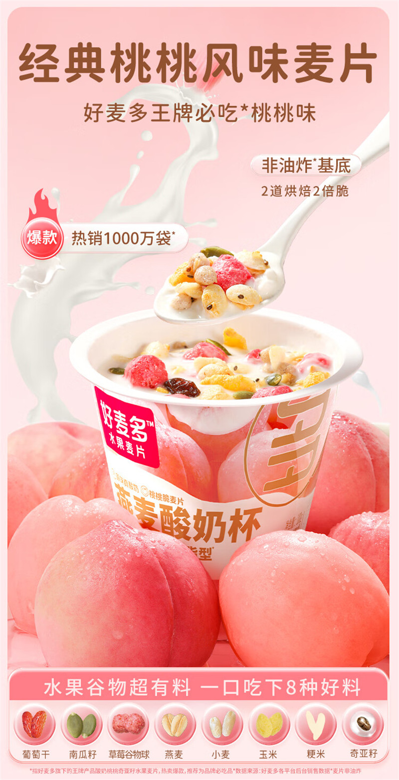 好麦多燕麦搅拌酸奶碗杯-桃桃燕麦酸奶杯礼盒装160g*9杯