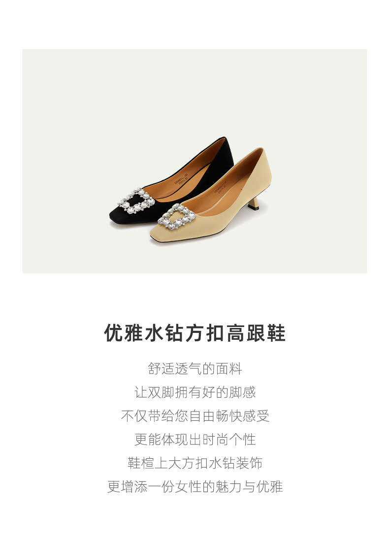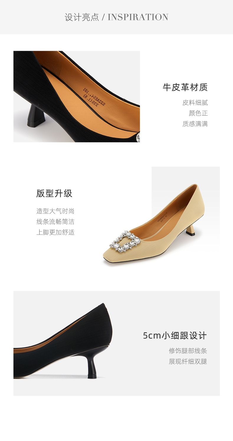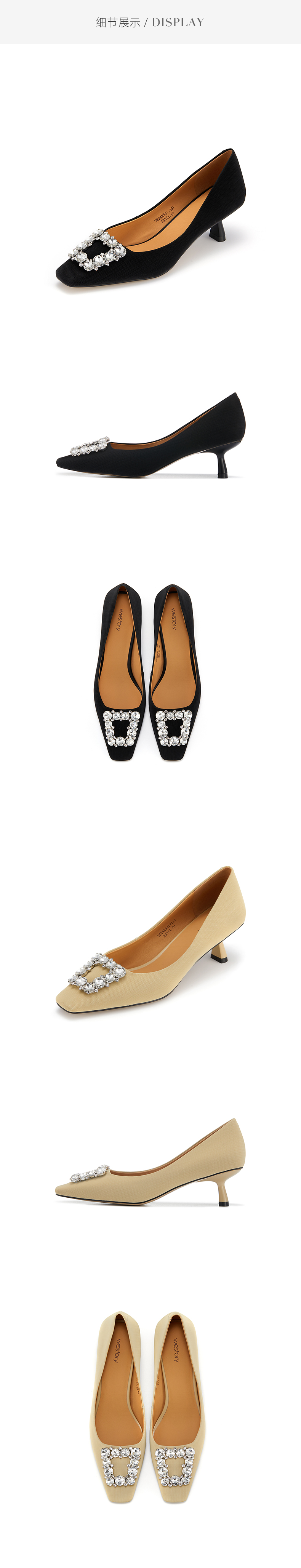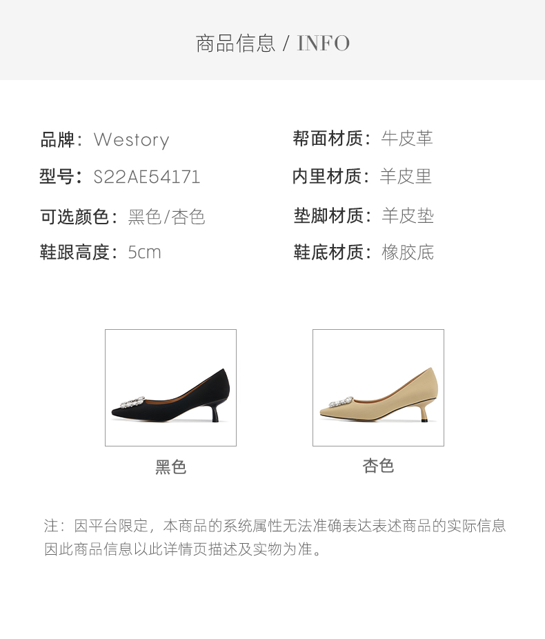 westory质感真皮高跟鞋优雅方钻浅口单鞋小方头细跟通勤职场女性S22AE54171