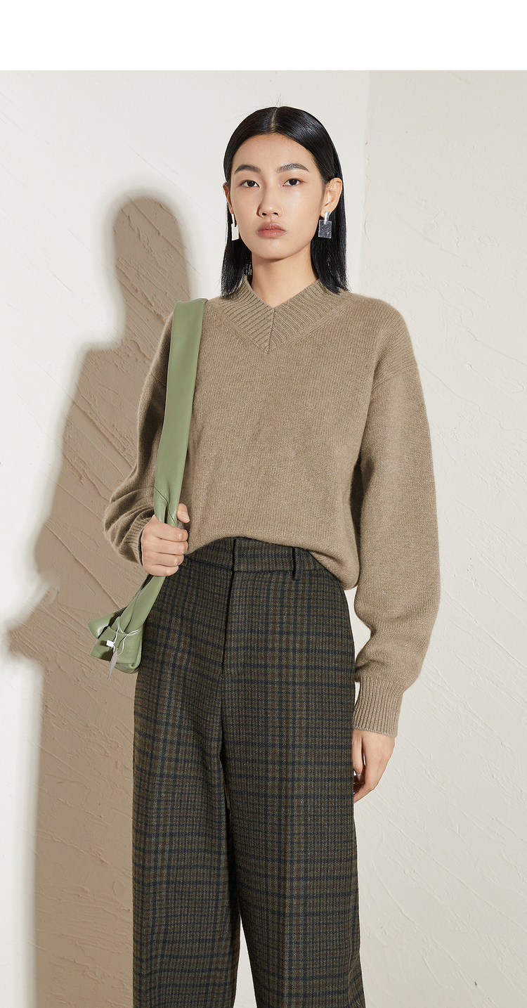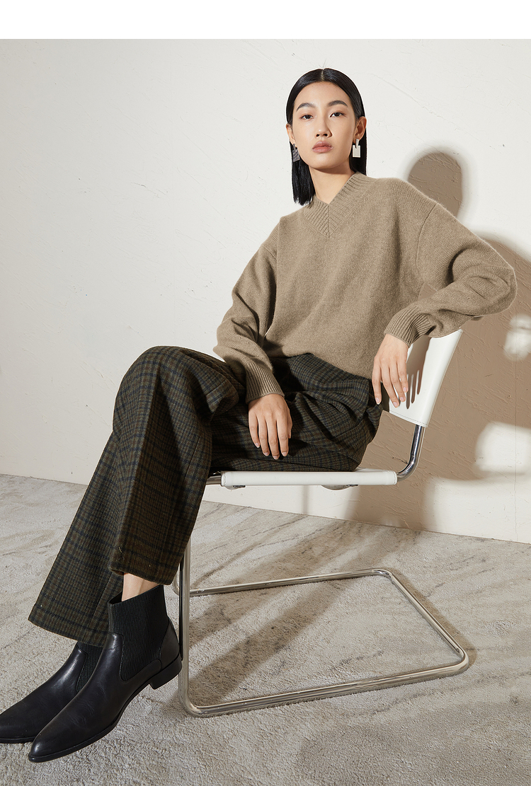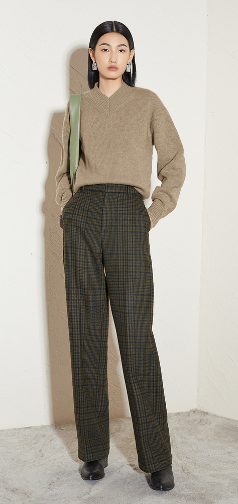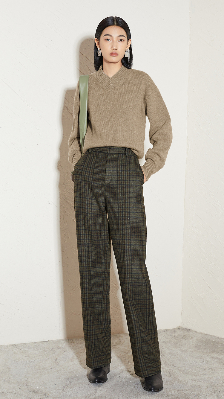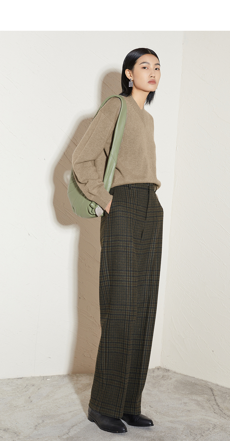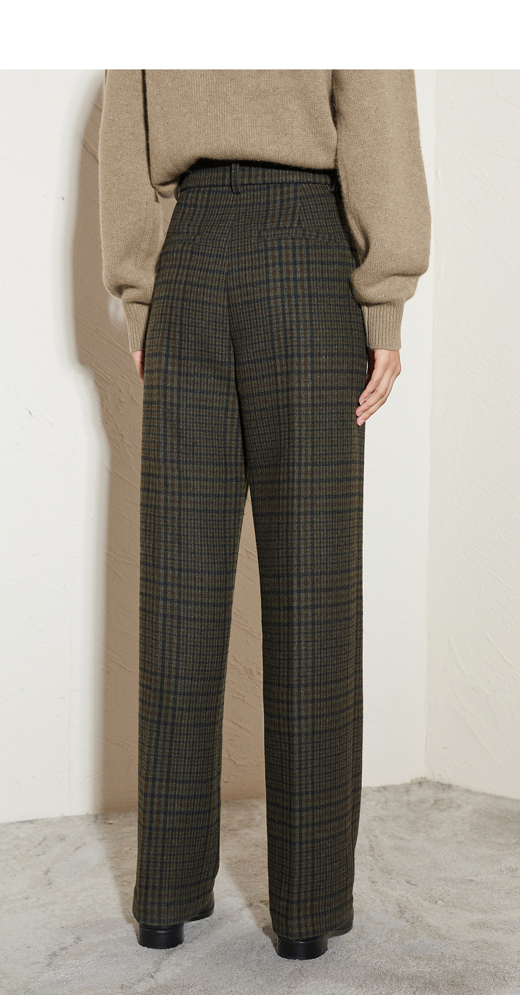 【商场同款】麦檬冬复古格纹高腰直筒裤5CA353161