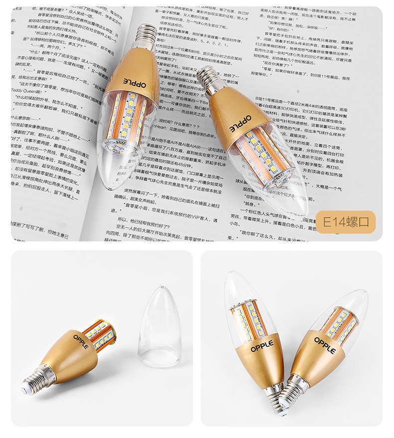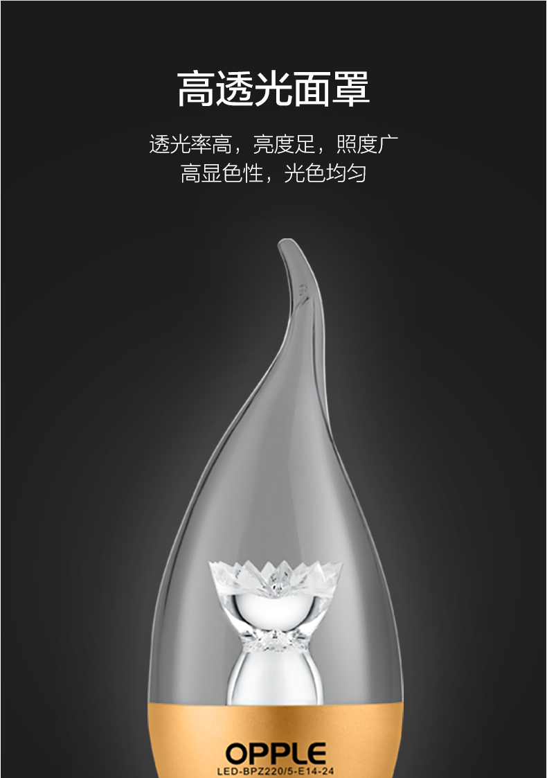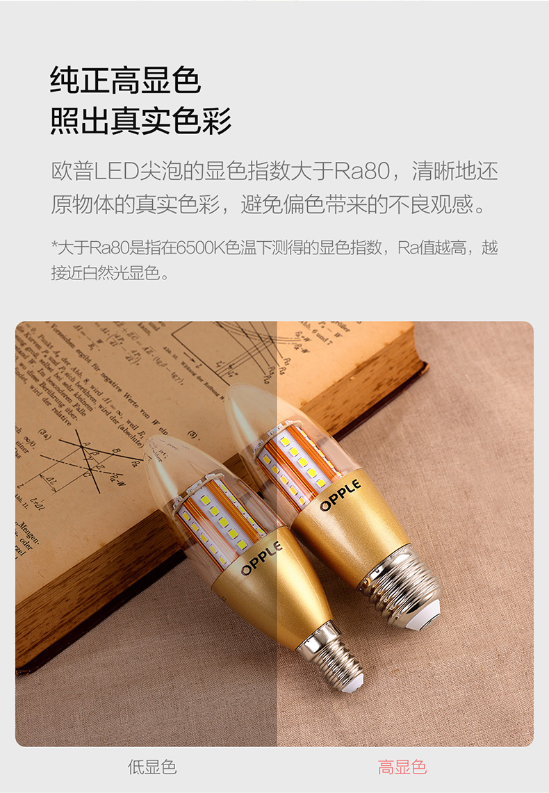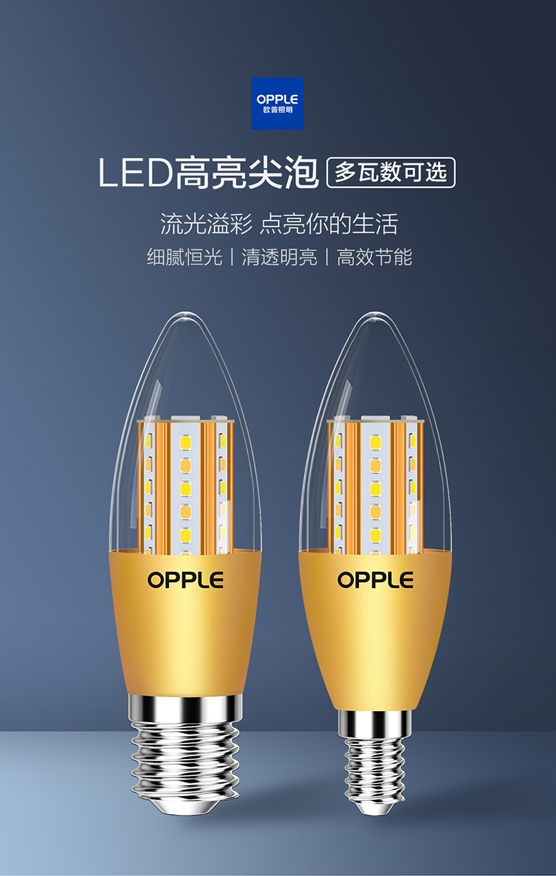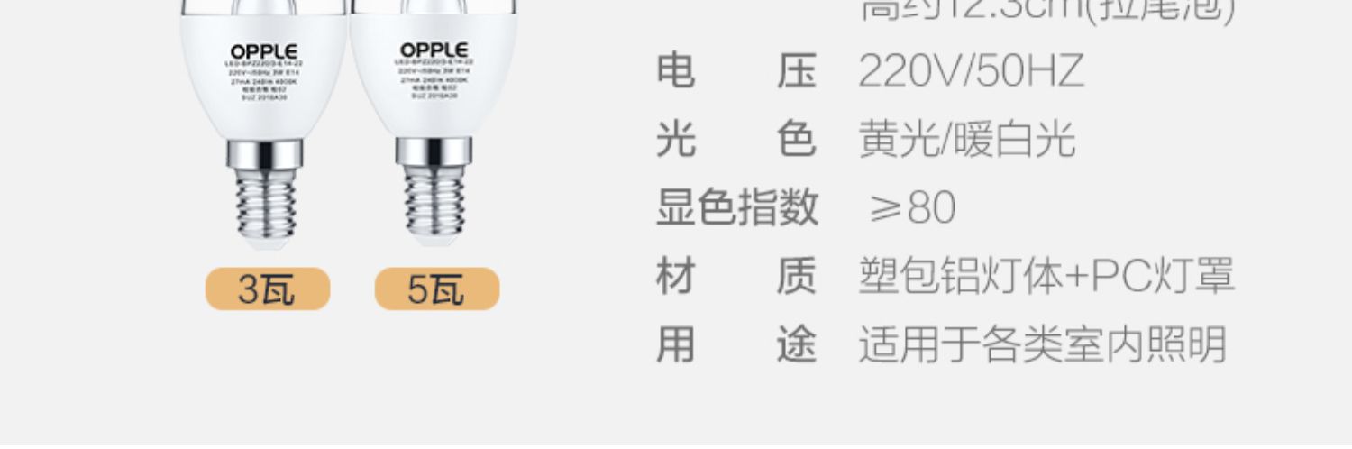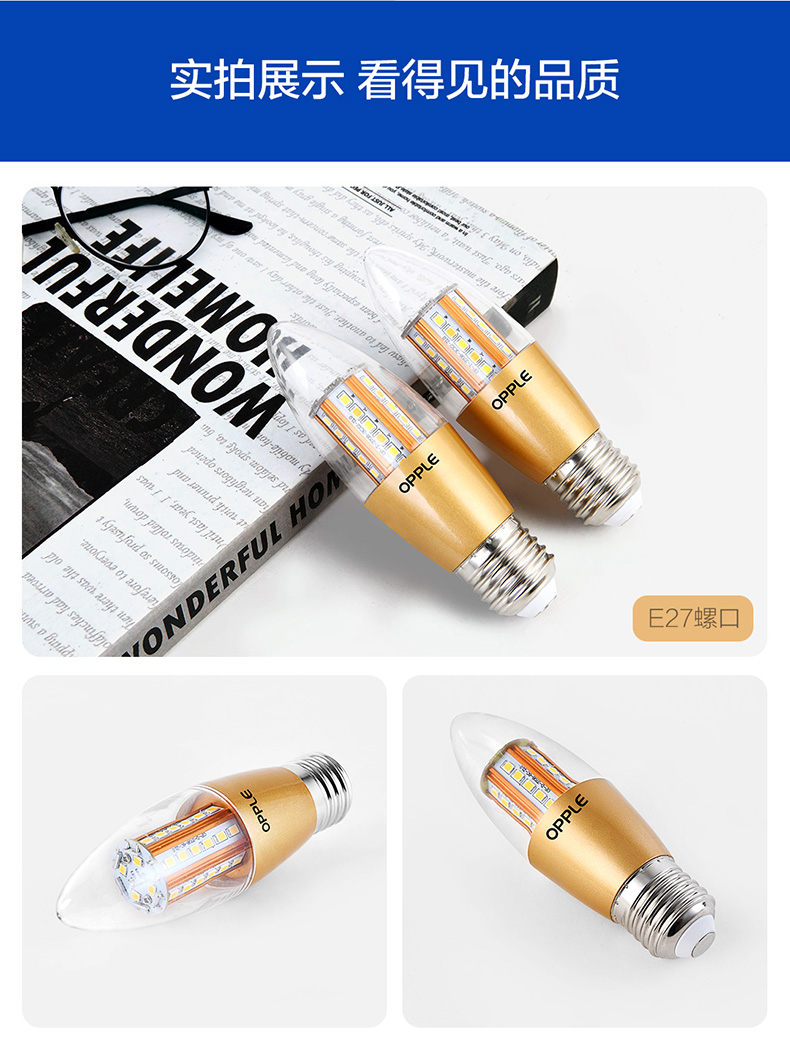 欧普(OPPLE)蜡烛灯泡led全光谱e27e14螺口尖泡吊灯节能球泡灯单灯芯光源