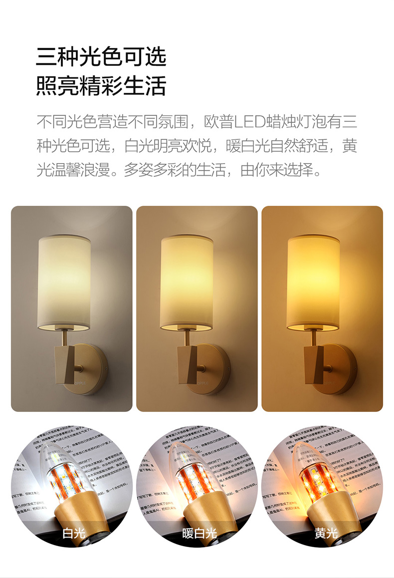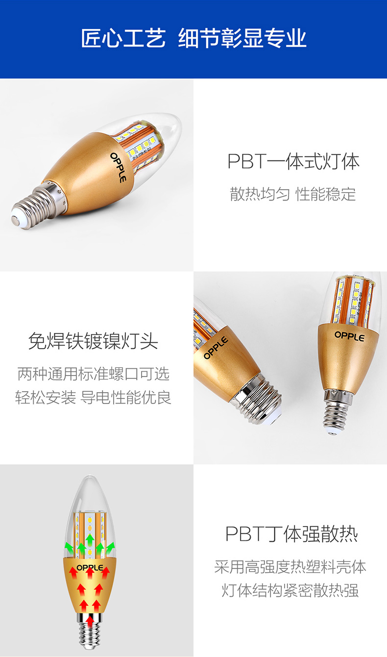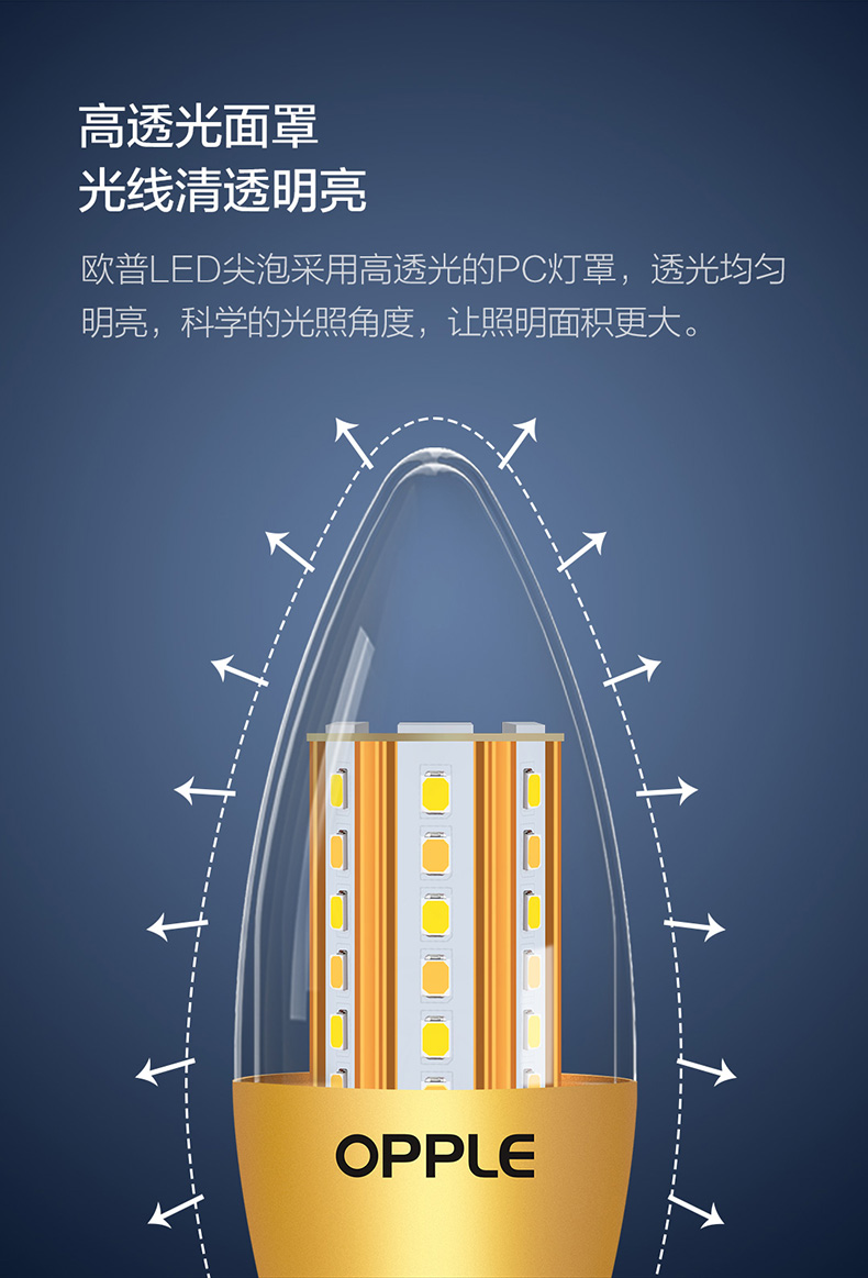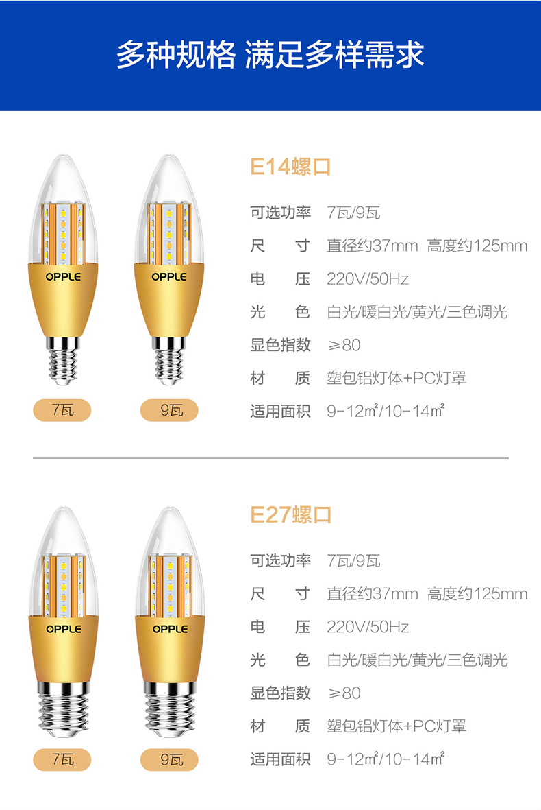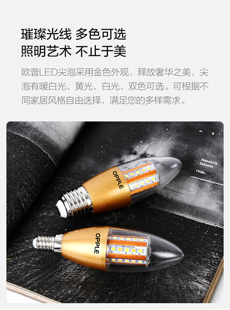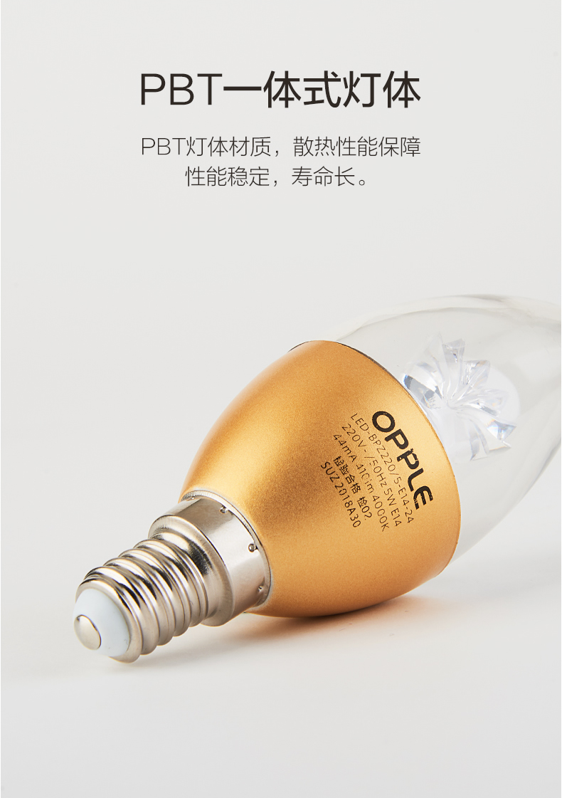 欧普(OPPLE)蜡烛灯泡led全光谱e27e14螺口尖泡吊灯节能球泡灯单灯芯光源