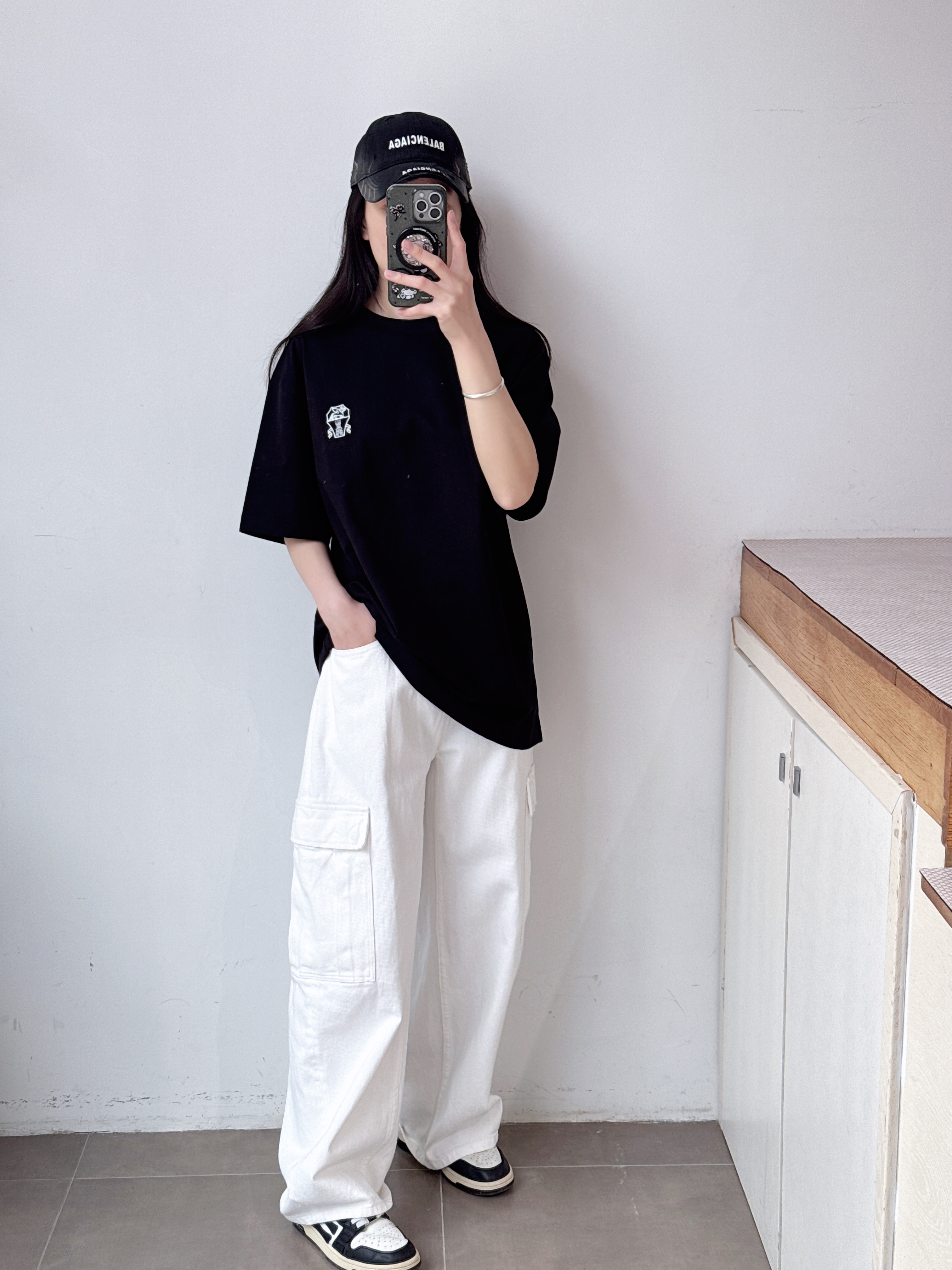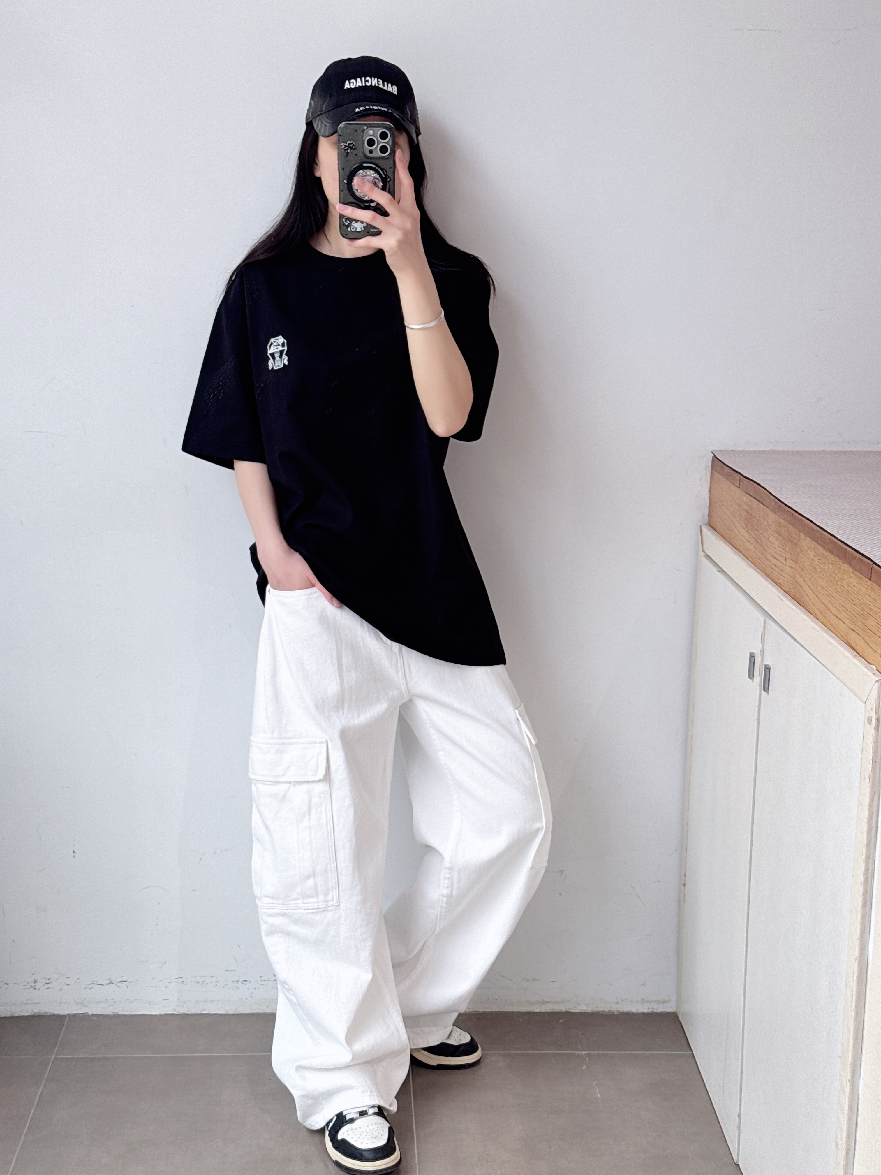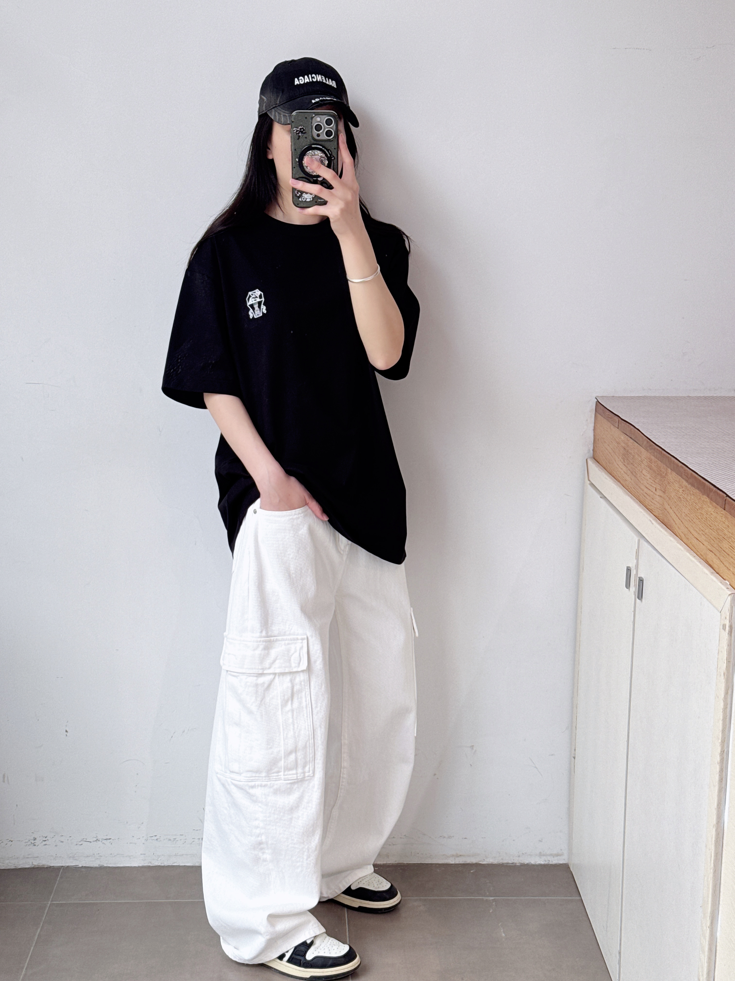 2025春夏男女同款徽章刺绣圆领休闲短袖T恤打底衫透气宽松上衣
