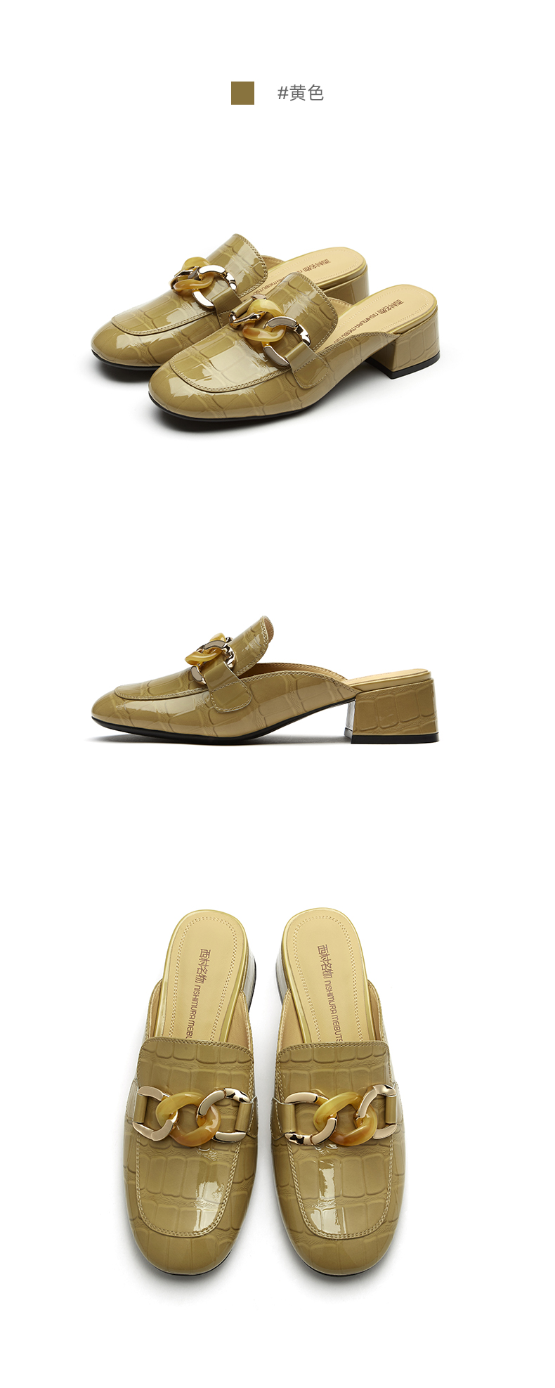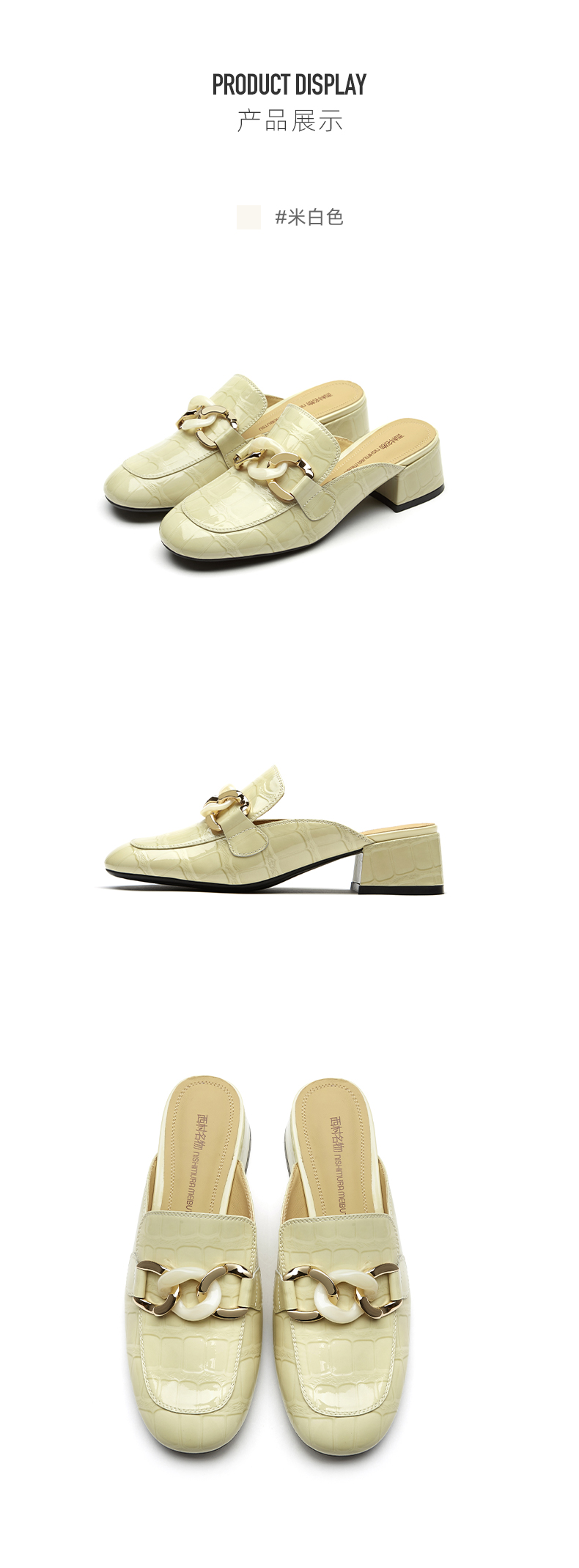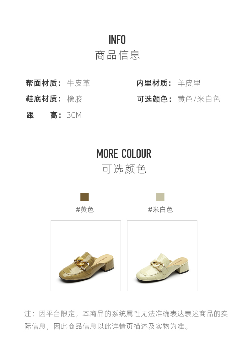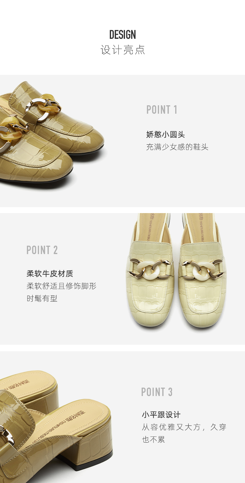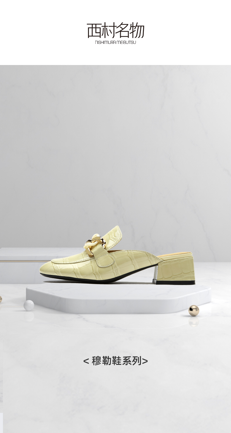 西村名物2021夏季新款真皮包头拖鞋女网红懒人鞋粗跟穆勒拖T21AH15051