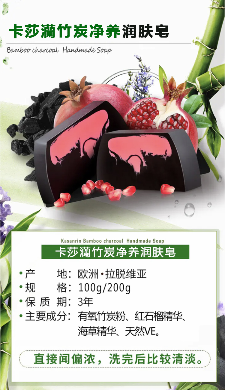 卡莎灡进口竹炭润肤皂,清洁肌肤,深层清洁。