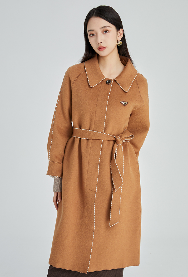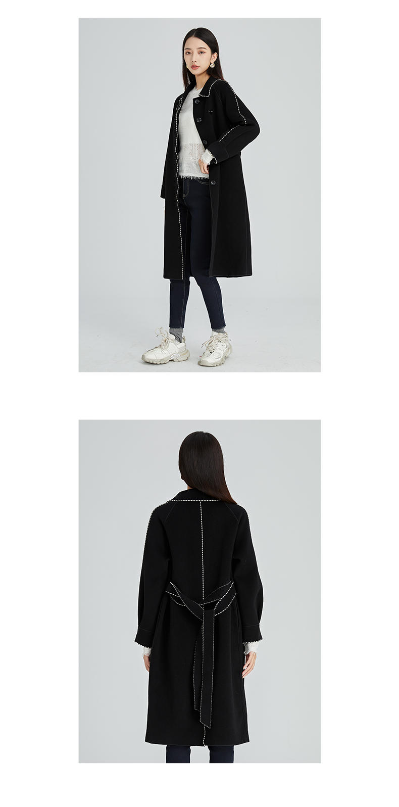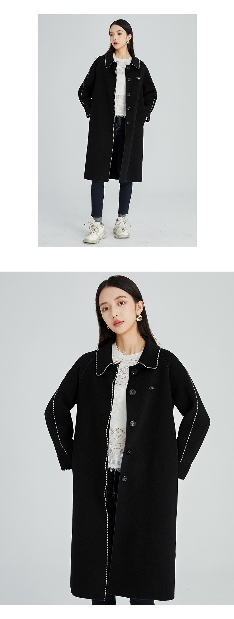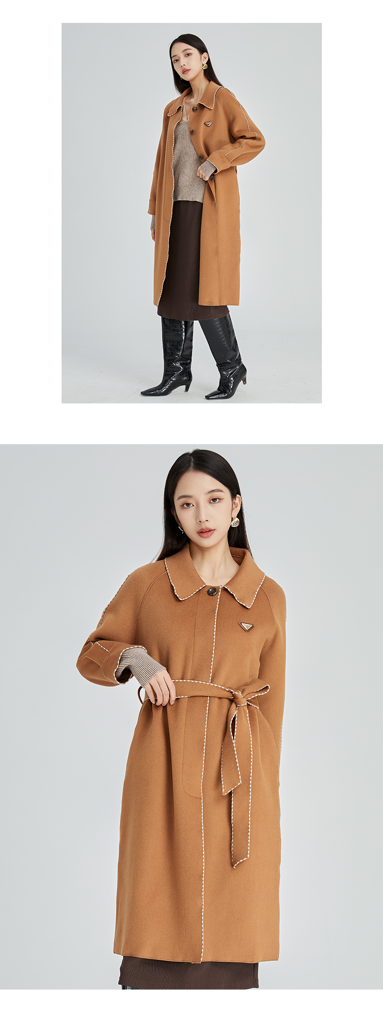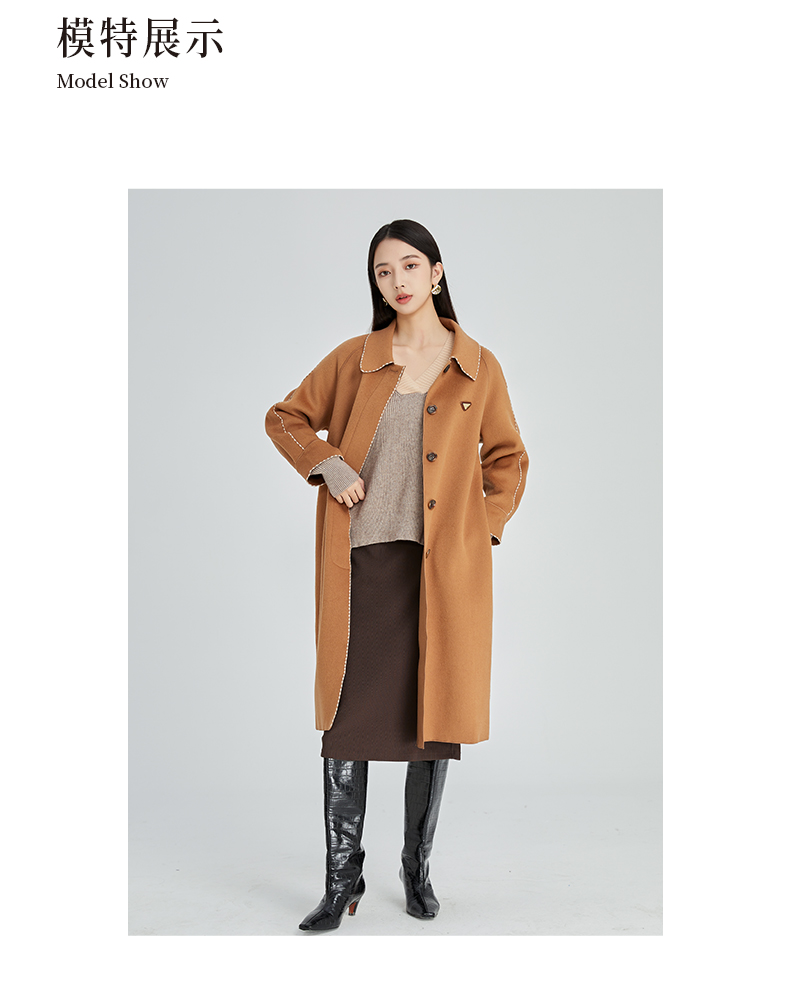 oldcolour2022冬季新款高端气质赫本风长款双面毛呢大衣外套女