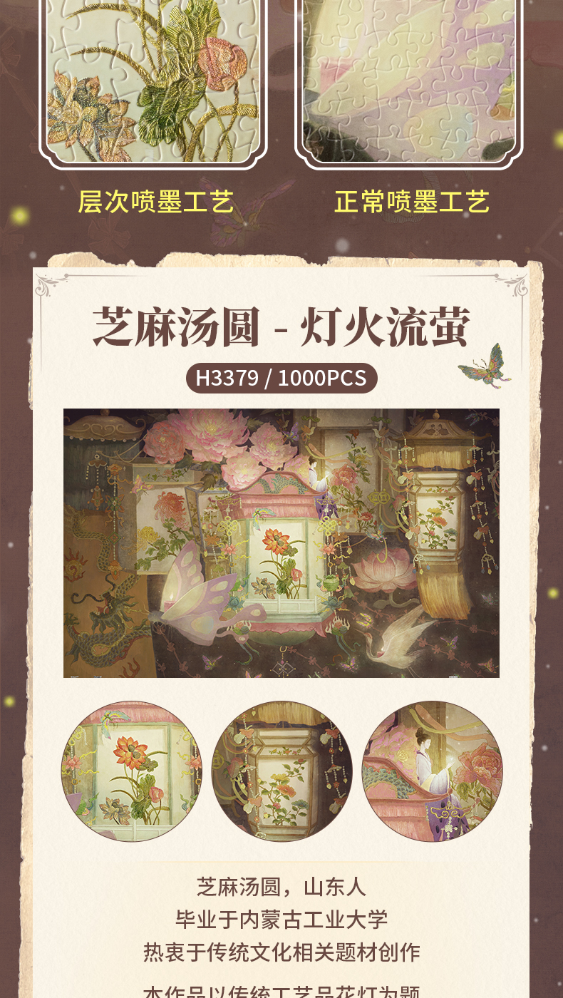 1000片 平面塑料拼图 H3379 艺术触感系列-芝麻汤圆-灯火流萤