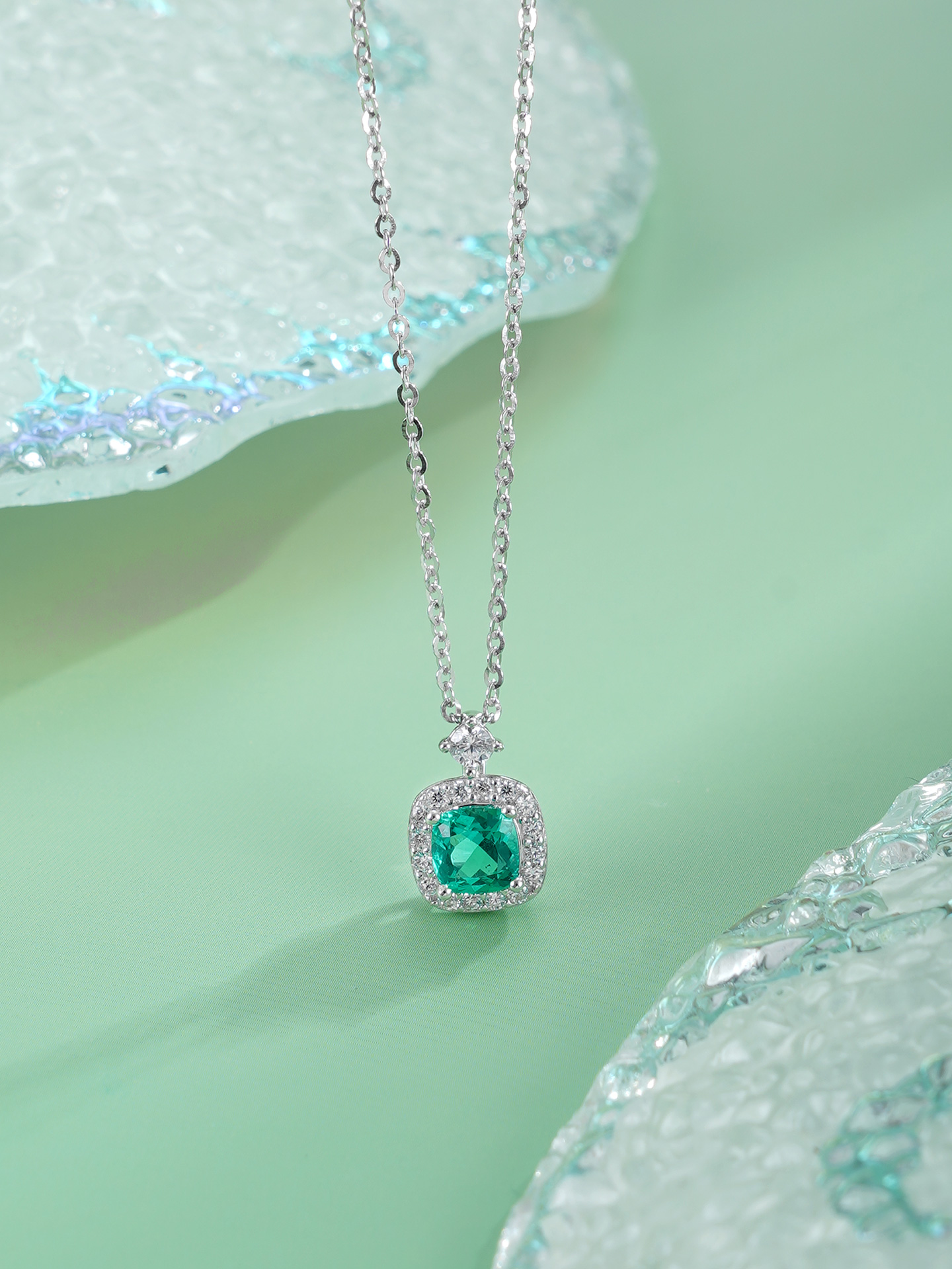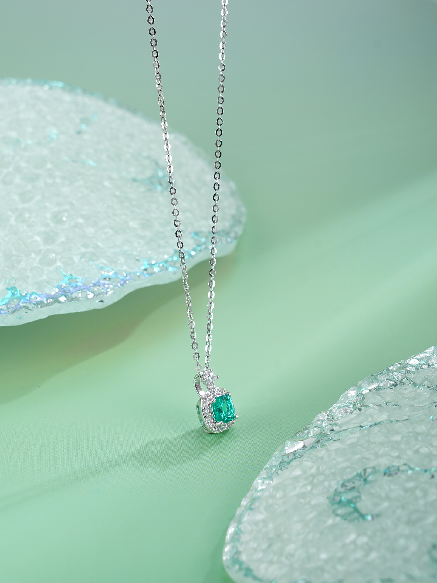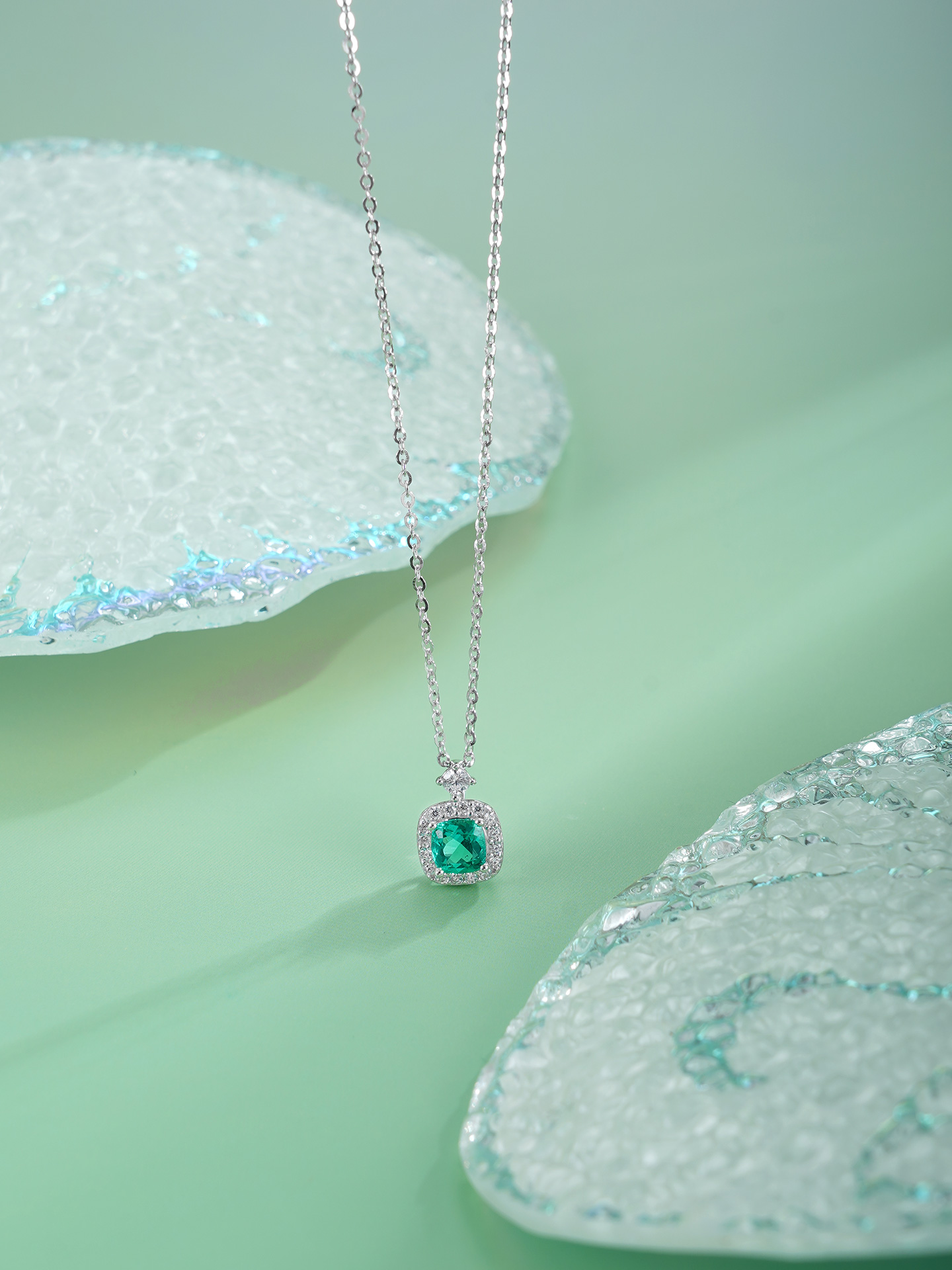 【寓意】:纯银吊坠搭配鲜活跃动的绿色宝石,将自然灵气绕于颈间,传递蓬勃生命力,象征永驻芳华,步履生风。