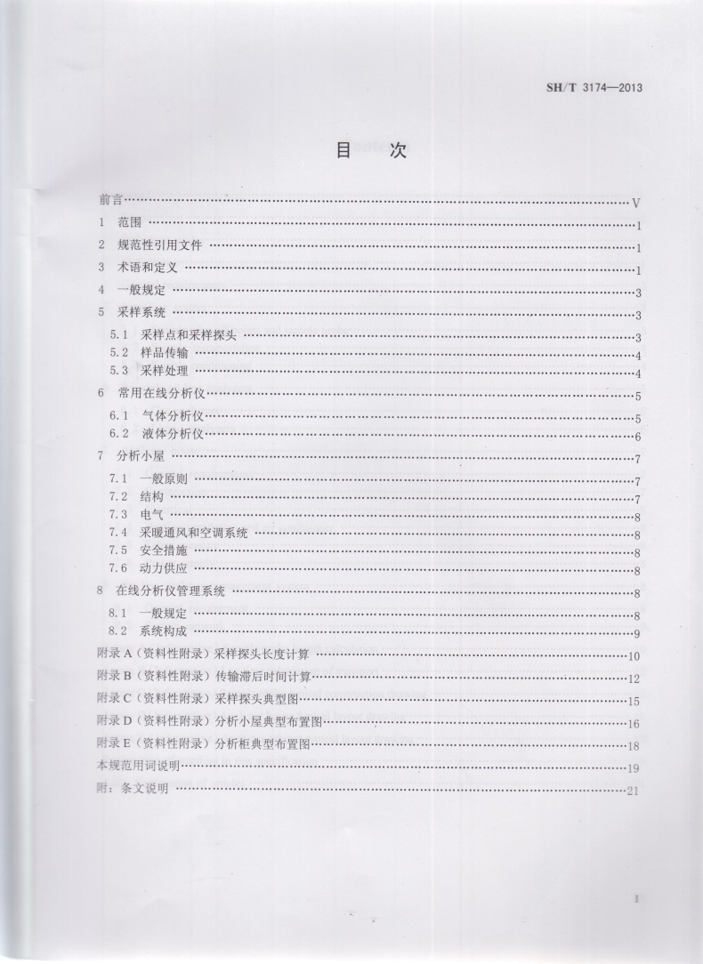 石油化工在线分析仪系统设计规范SH/T 3174-2013