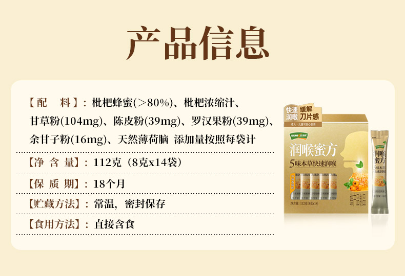 汪氏旗舰店官方正品枇杷蜂蜜纯正天然薄荷儿童枇杷润喉蜜方便携装
