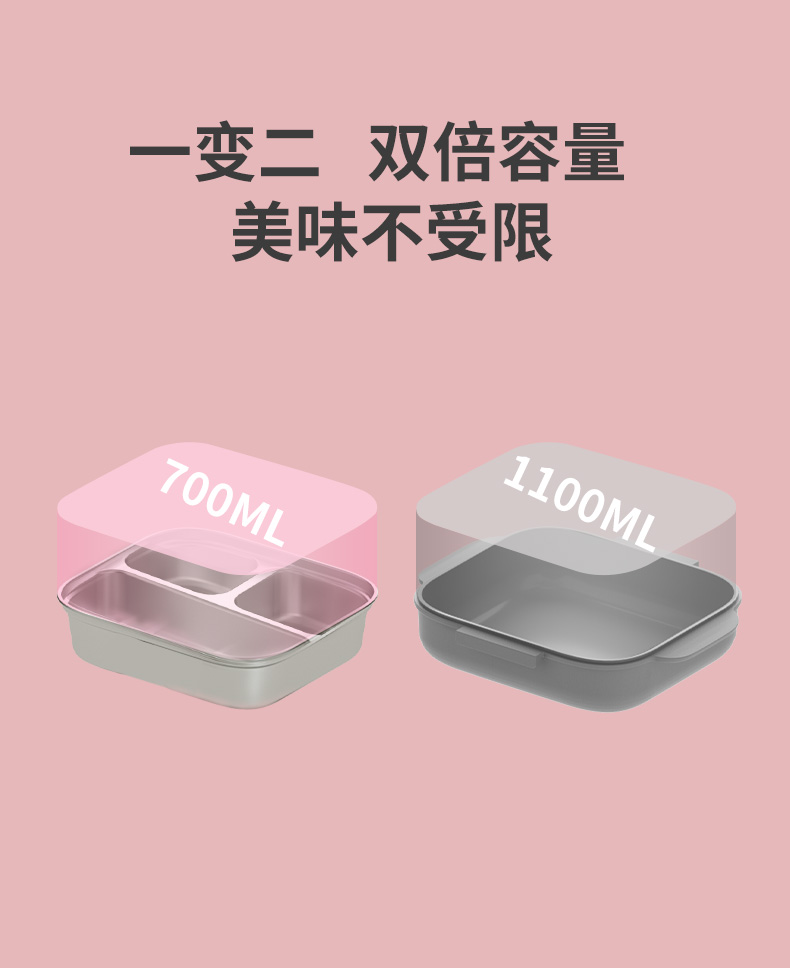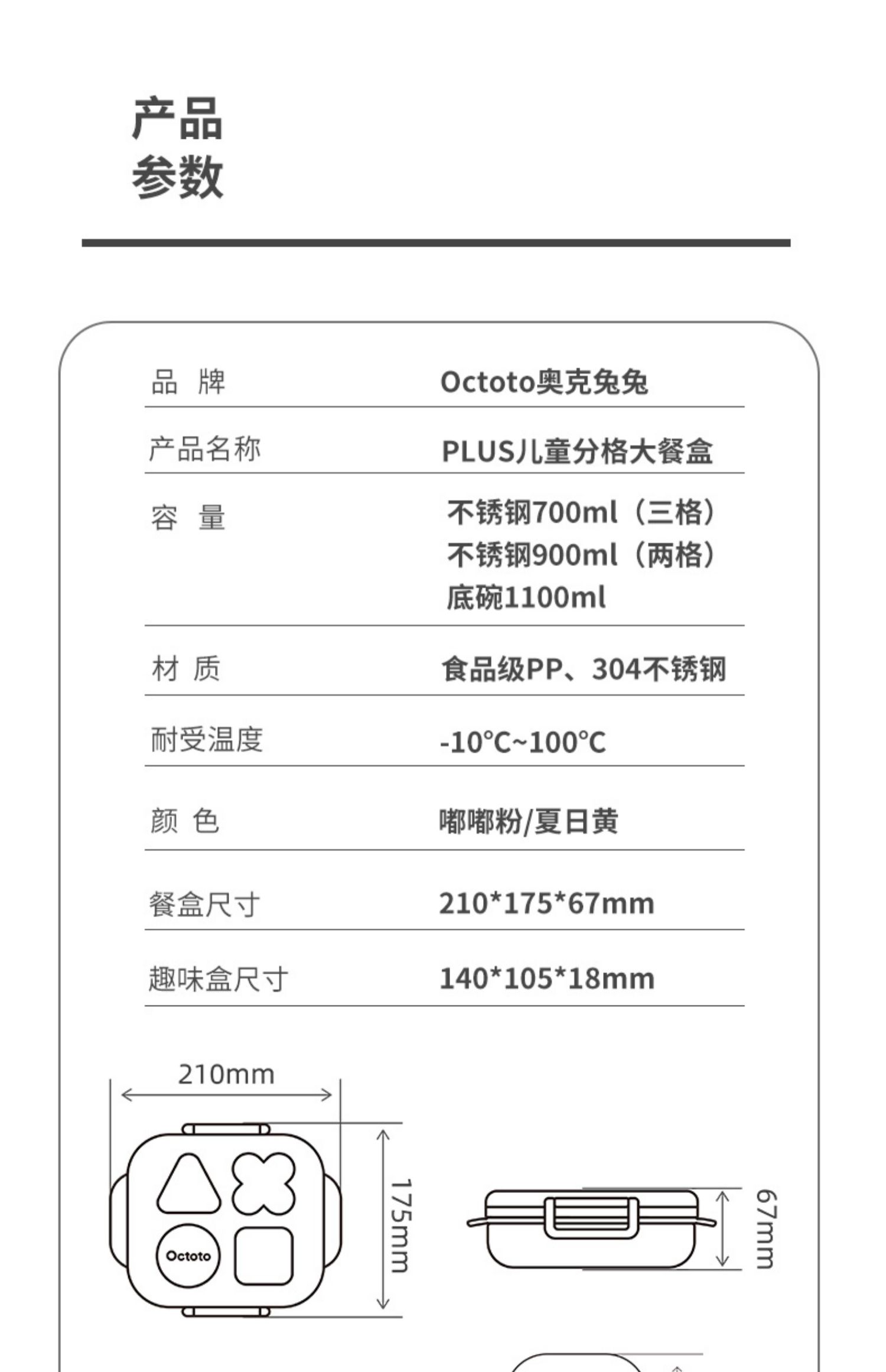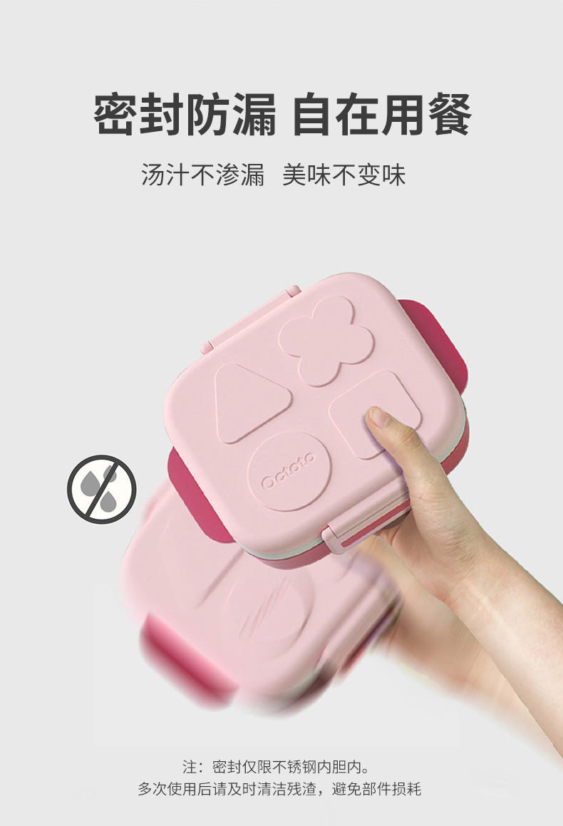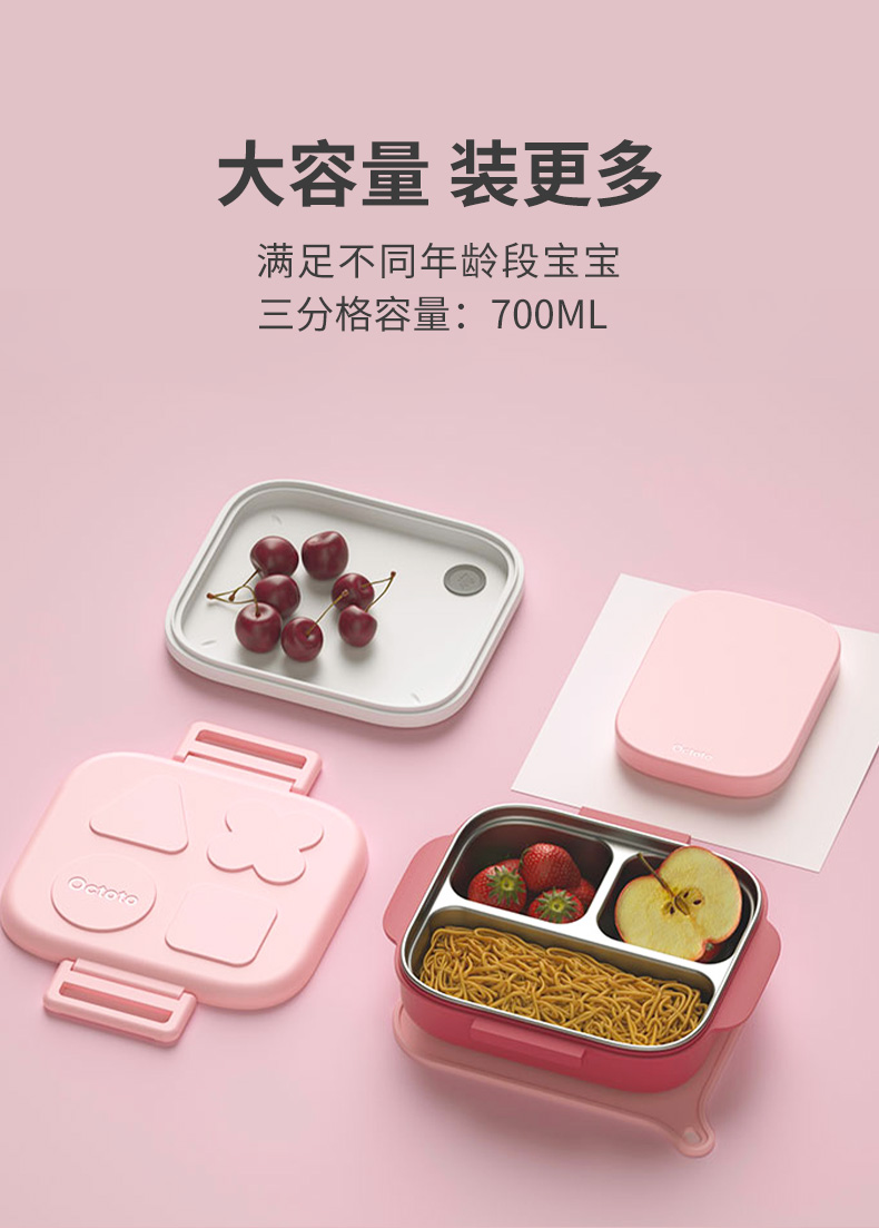 Octoto奥克兔兔分隔餐盒PLUS-收纳加强版 不锈钢儿童餐盒 宝宝吃饭餐盘便携饭盒