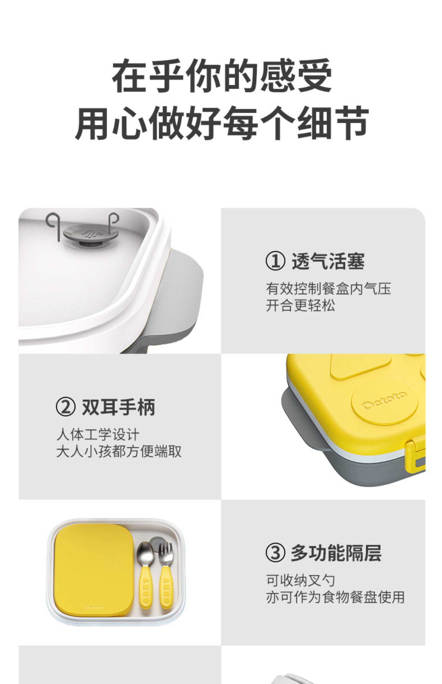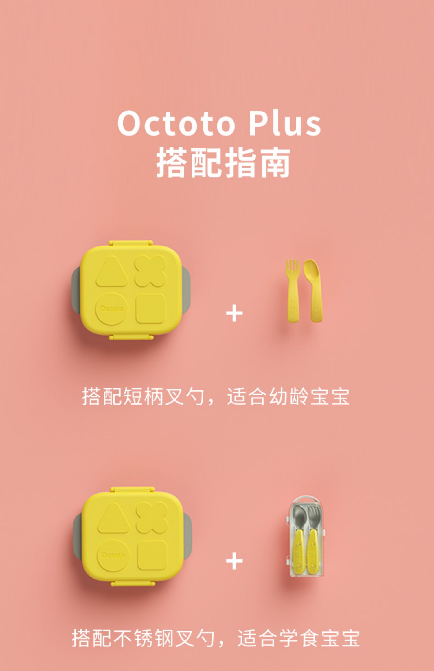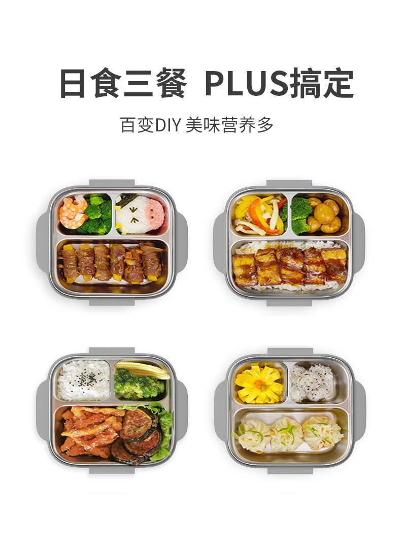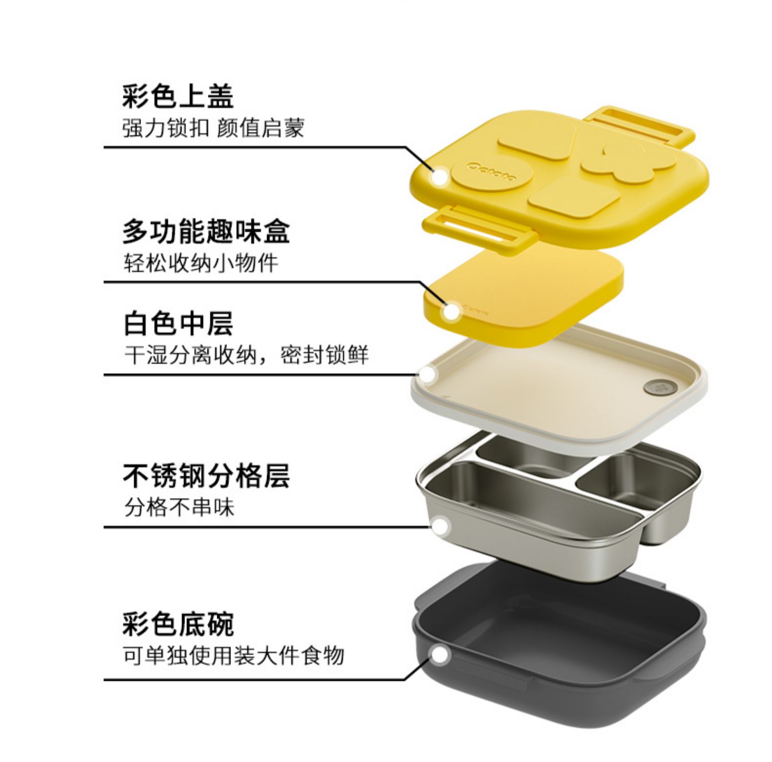 Octoto奥克兔兔分隔餐盒PLUS-收纳加强版 不锈钢儿童餐盒 宝宝吃饭餐盘便携饭盒