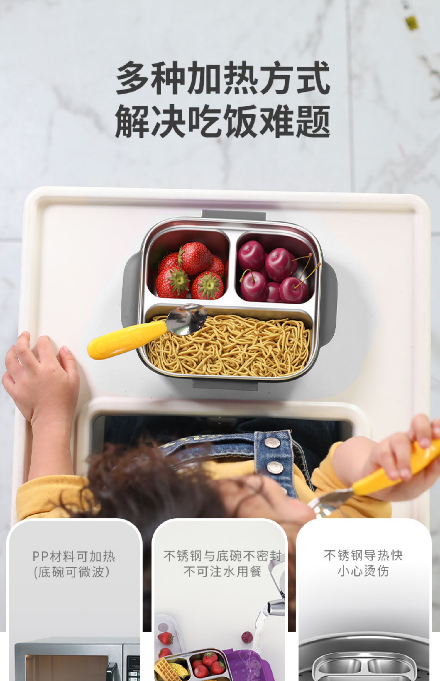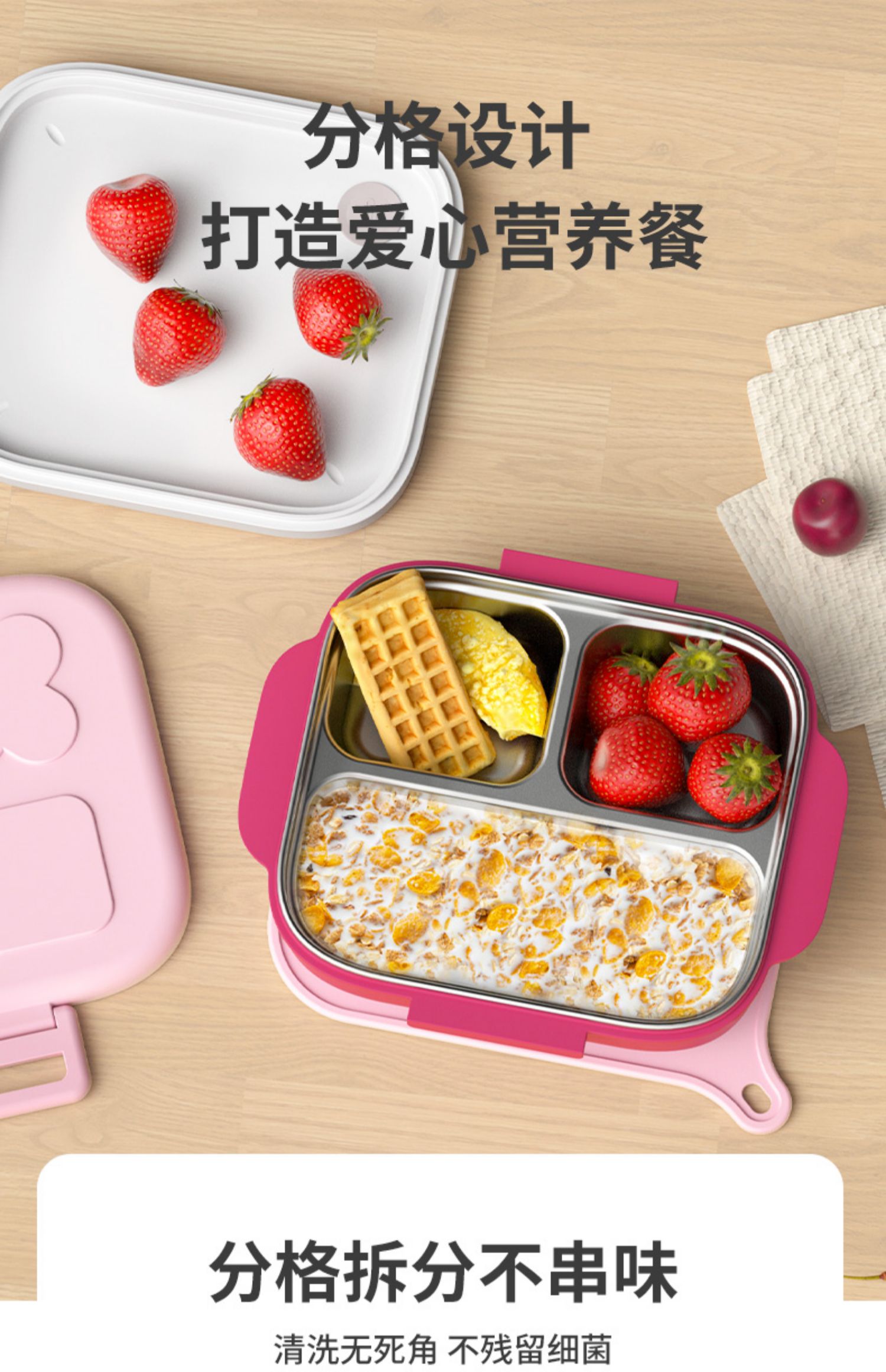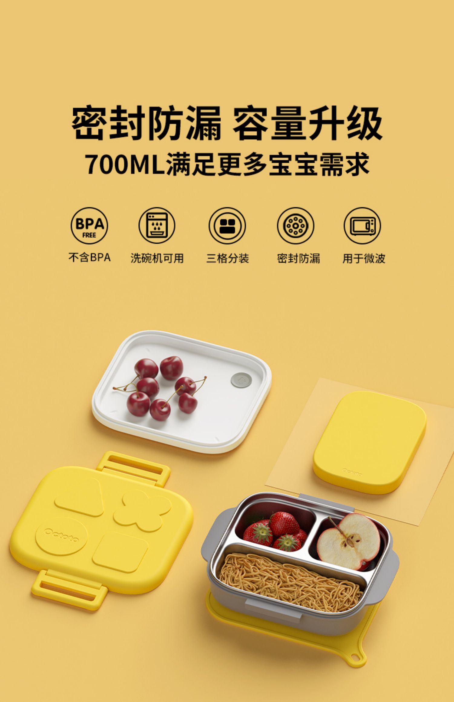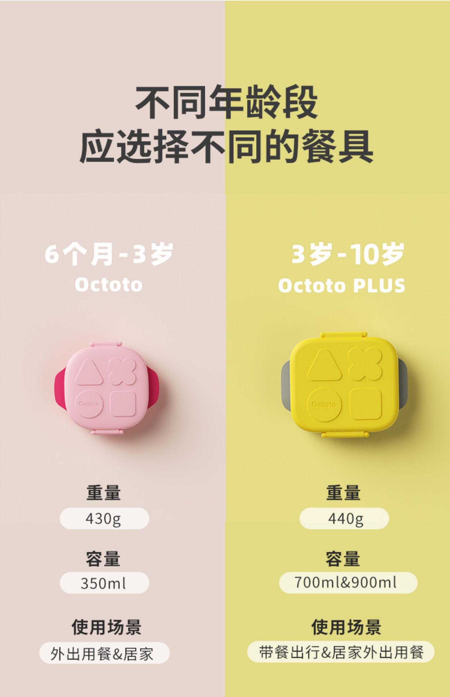 Octoto奥克兔兔分隔餐盒PLUS-收纳加强版 不锈钢儿童餐盒 宝宝吃饭餐盘便携饭盒