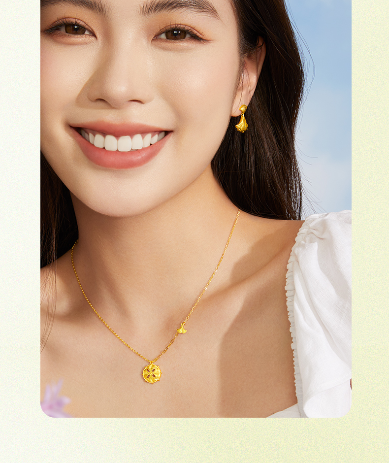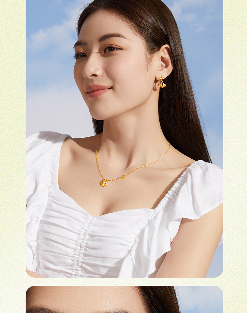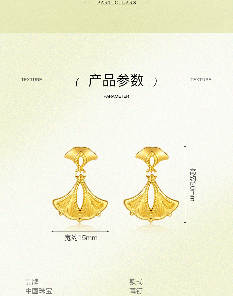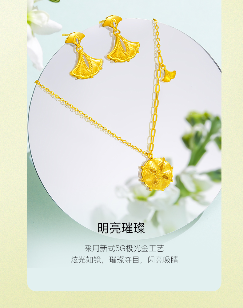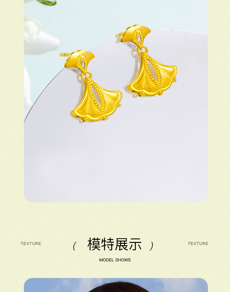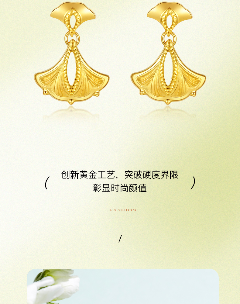 「追光」繁花黄金耳饰 银杏足金耳坠