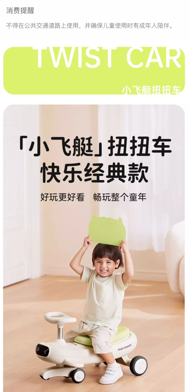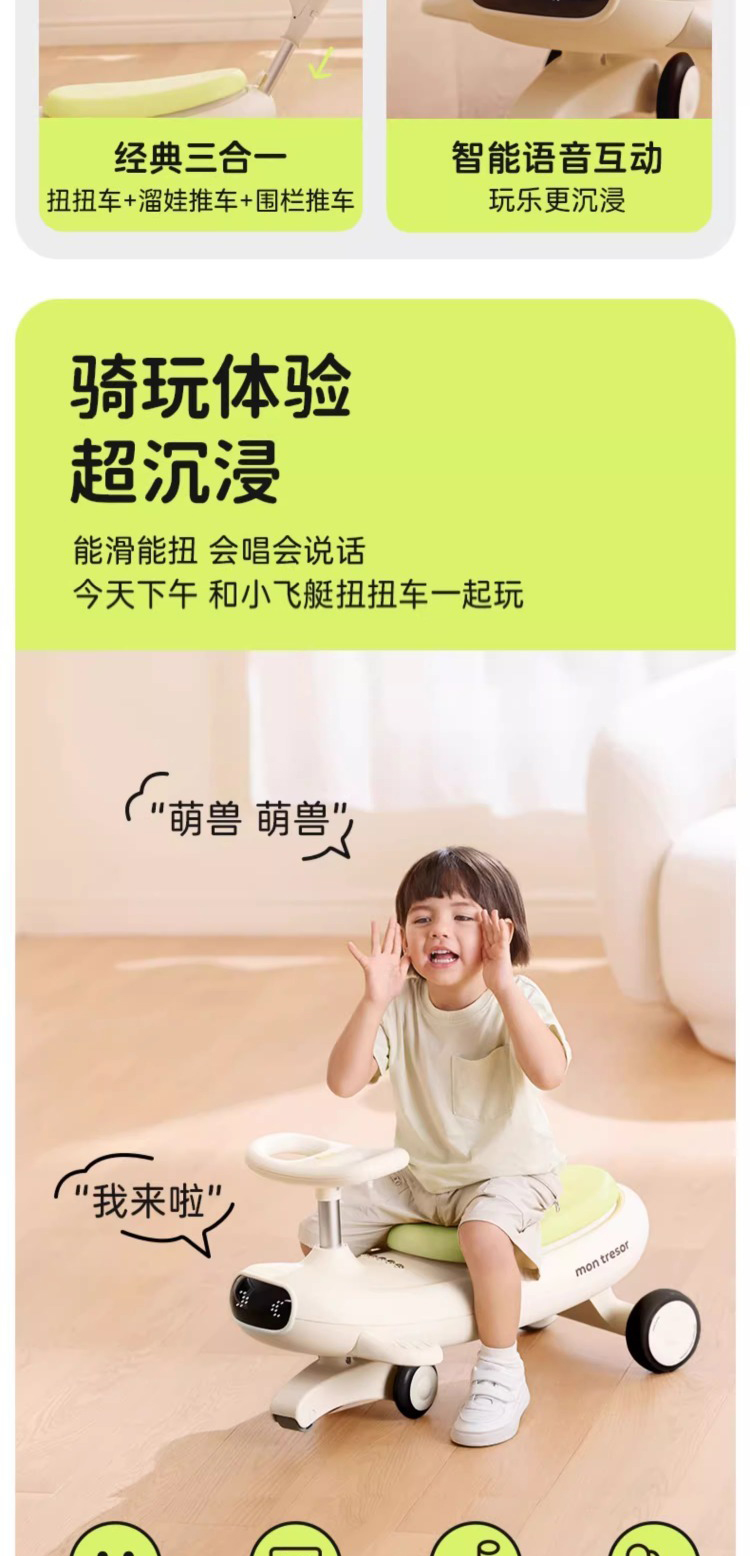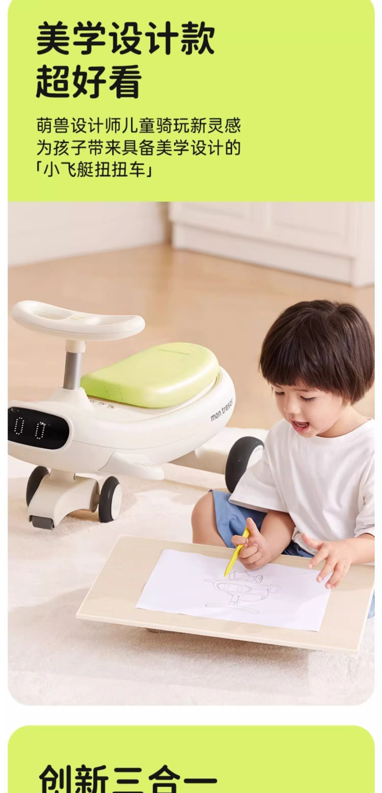 韩国montresor萌兽 | 小飞艇扭扭车 儿童扭扭车宝宝婴儿周岁礼物玩具溜溜车大人可坐双人 10月+