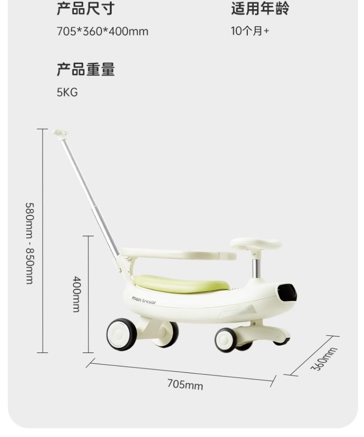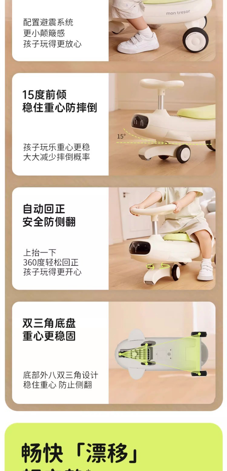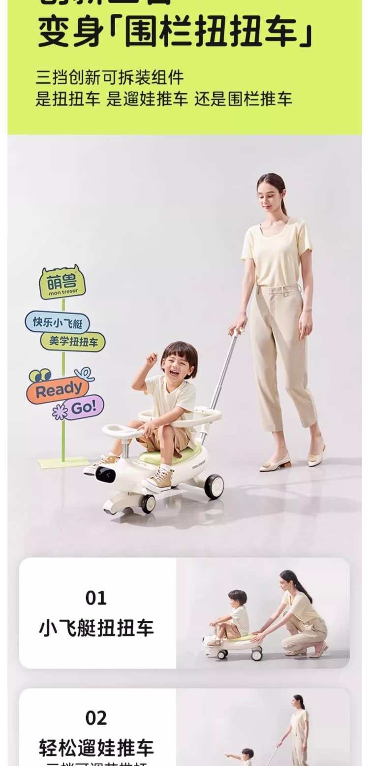 韩国montresor萌兽 | 小飞艇扭扭车 儿童扭扭车宝宝婴儿周岁礼物玩具溜溜车大人可坐双人 10月+