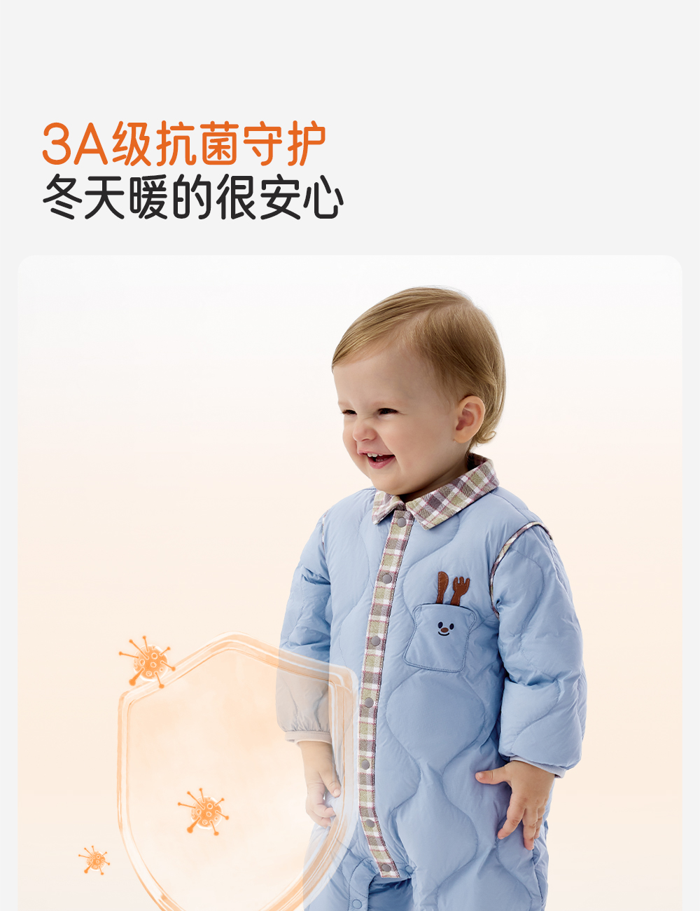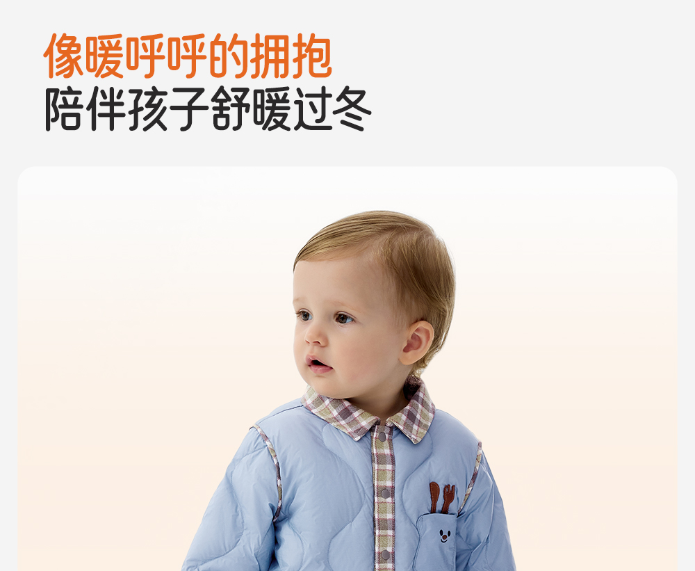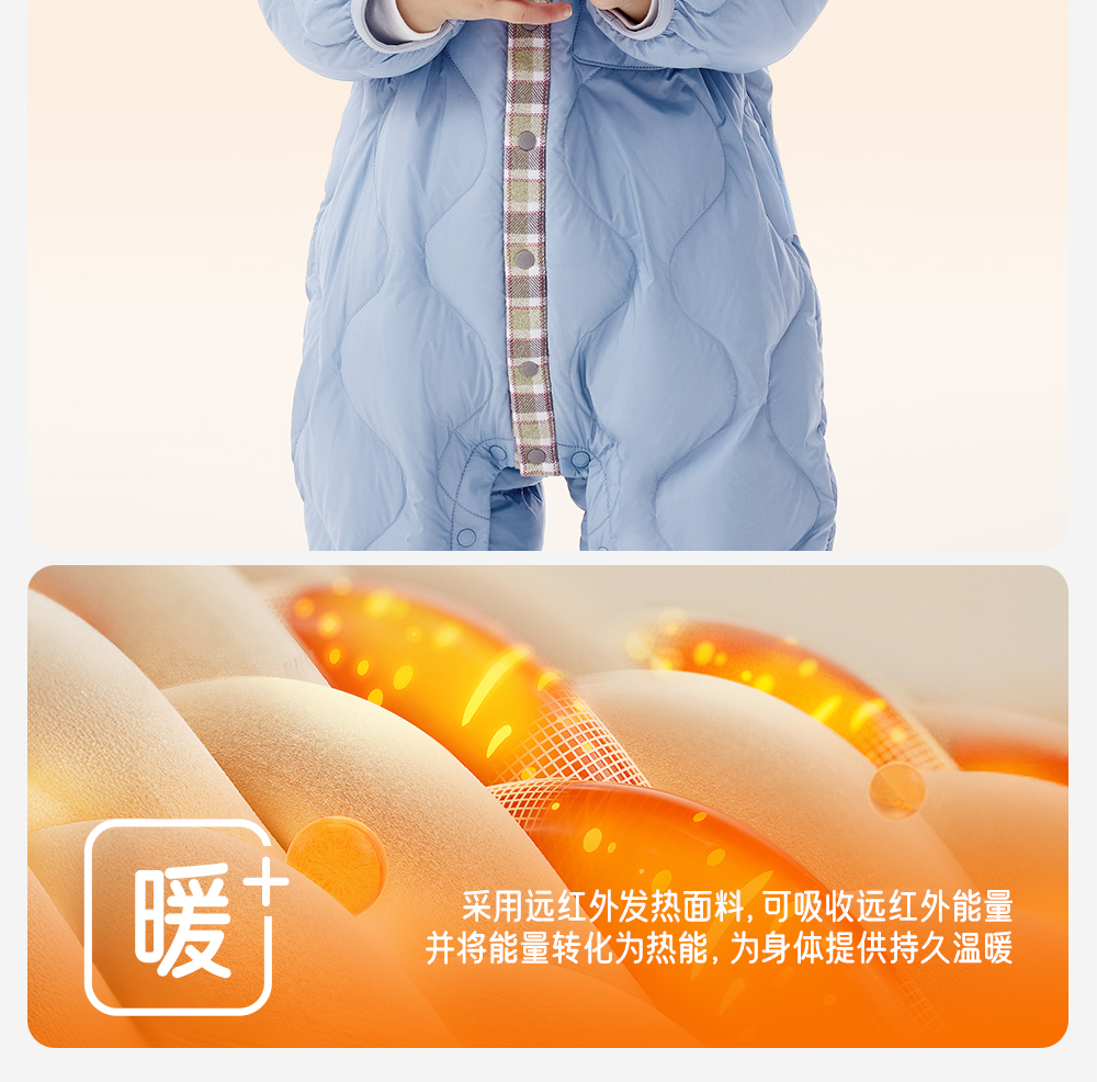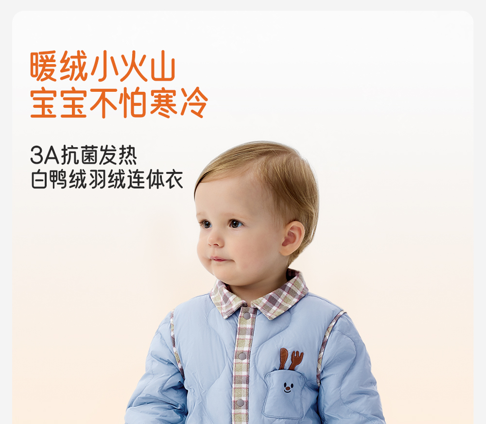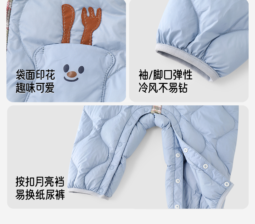 英氏婴儿连体衣羽绒服秋冬保暖防寒男童小童衣服哈衣YRHAJ4R015A