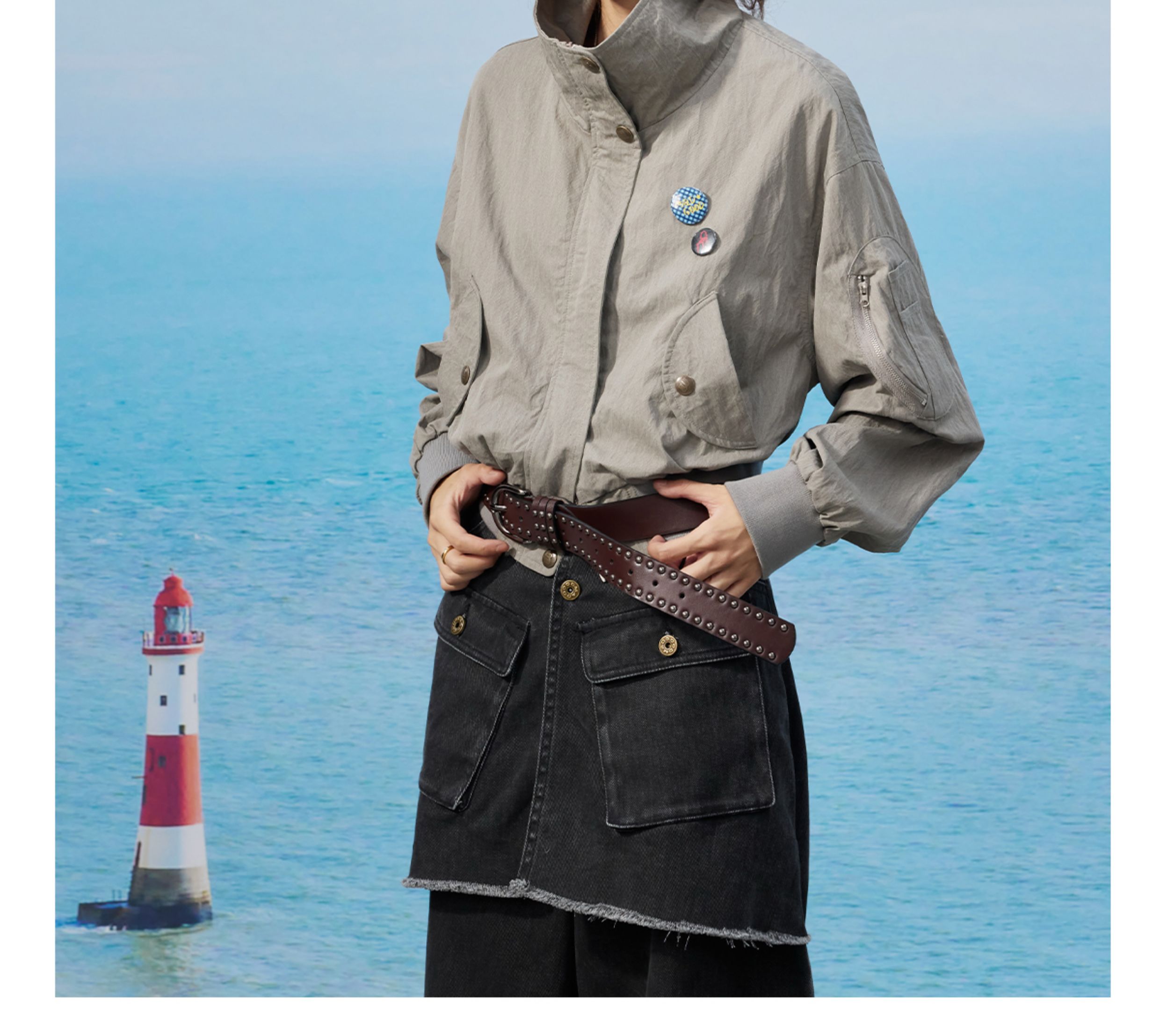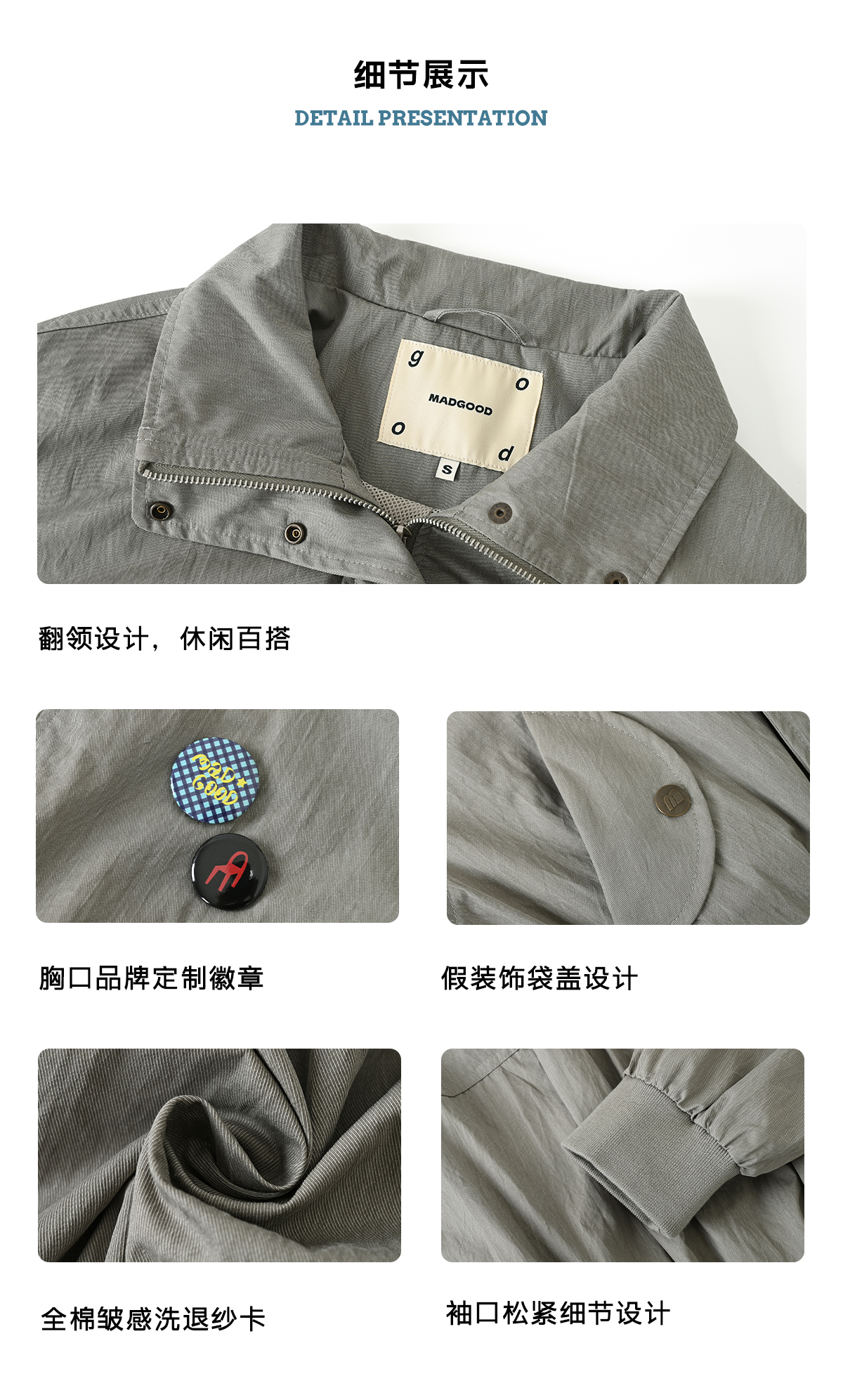 马得工地/MDGDWT13058/后背抽皱短款徽章飞行夹克
