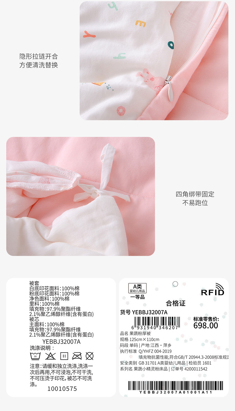 英氏婴儿秋冬纯棉盖被夹棉小被可拆洗被芯被套厚被子YEBBJ32005A YEBBJ32007A