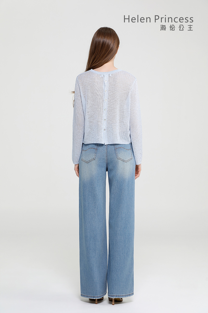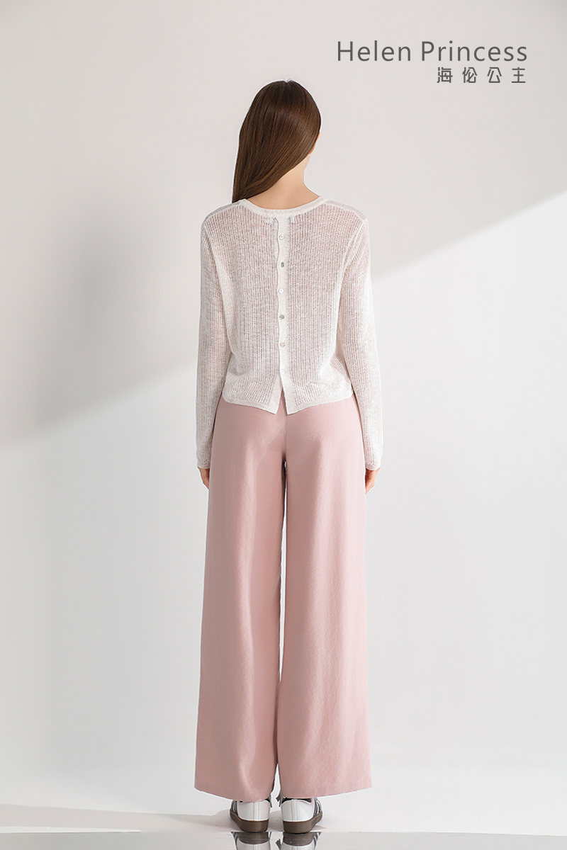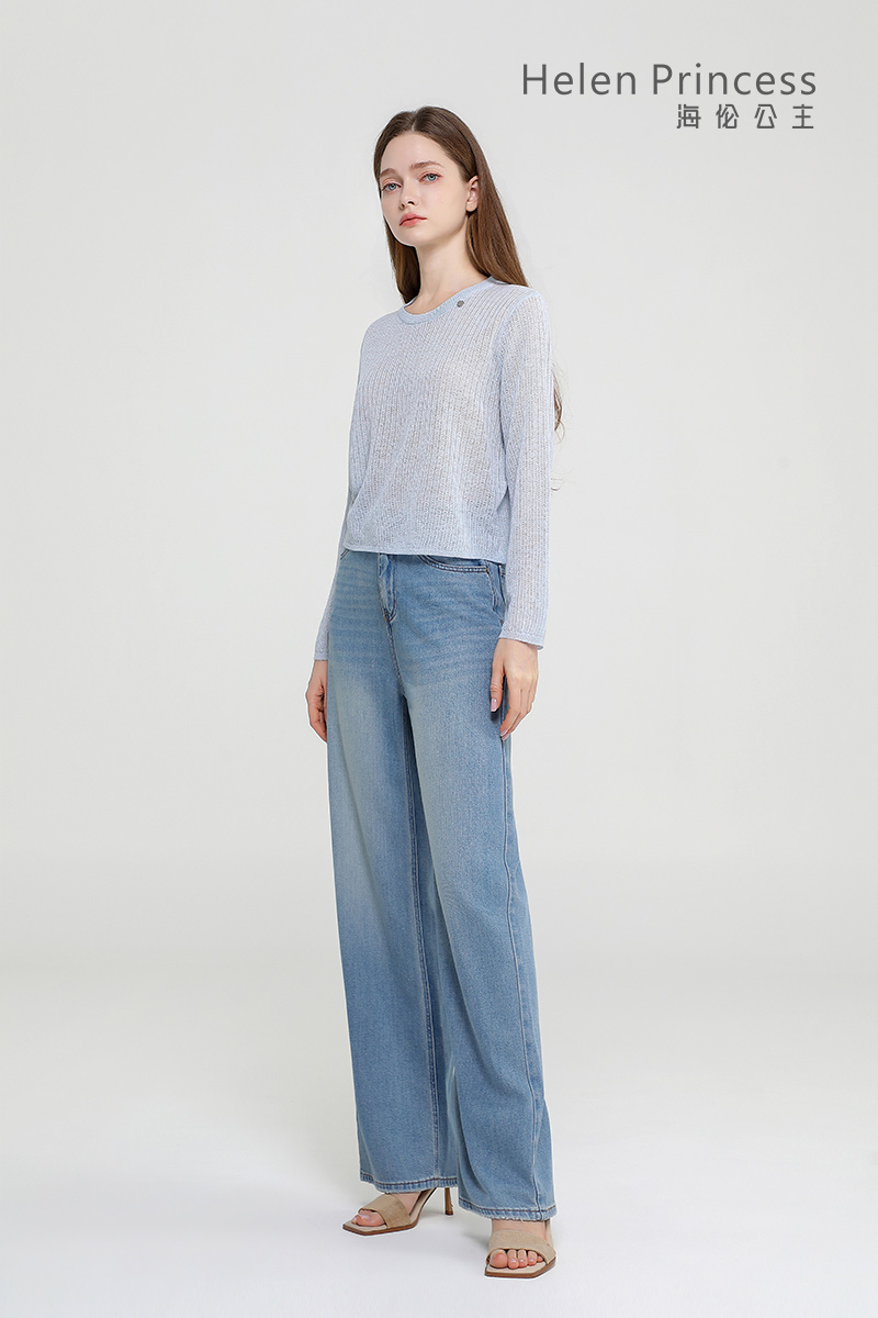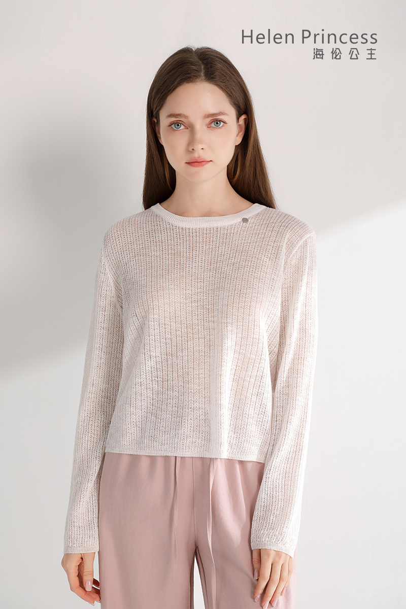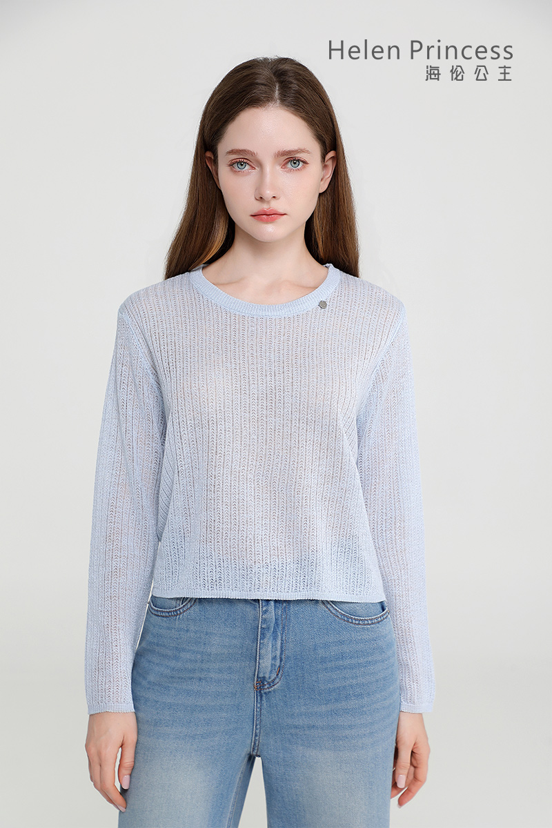 轻盈通透的坑条肌理,自带柔润空气感,圆领设计简约大气,领口金属扣巧添细节亮点。宽松落肩版型慵懒随性,微透面料自带温柔氛围感,可单穿可叠搭,轻松演绎松弛感穿搭,适配多种风格。