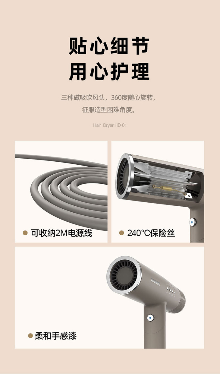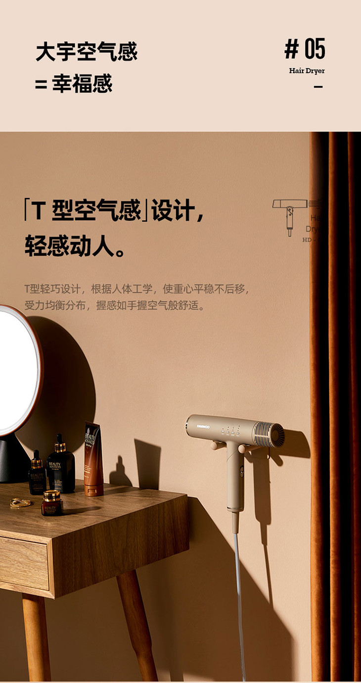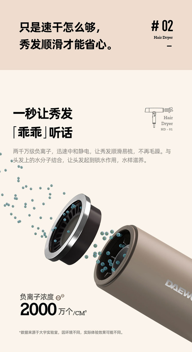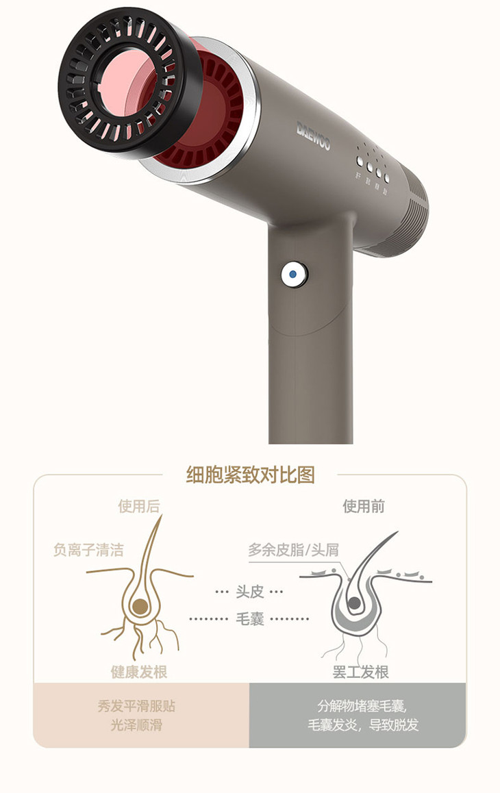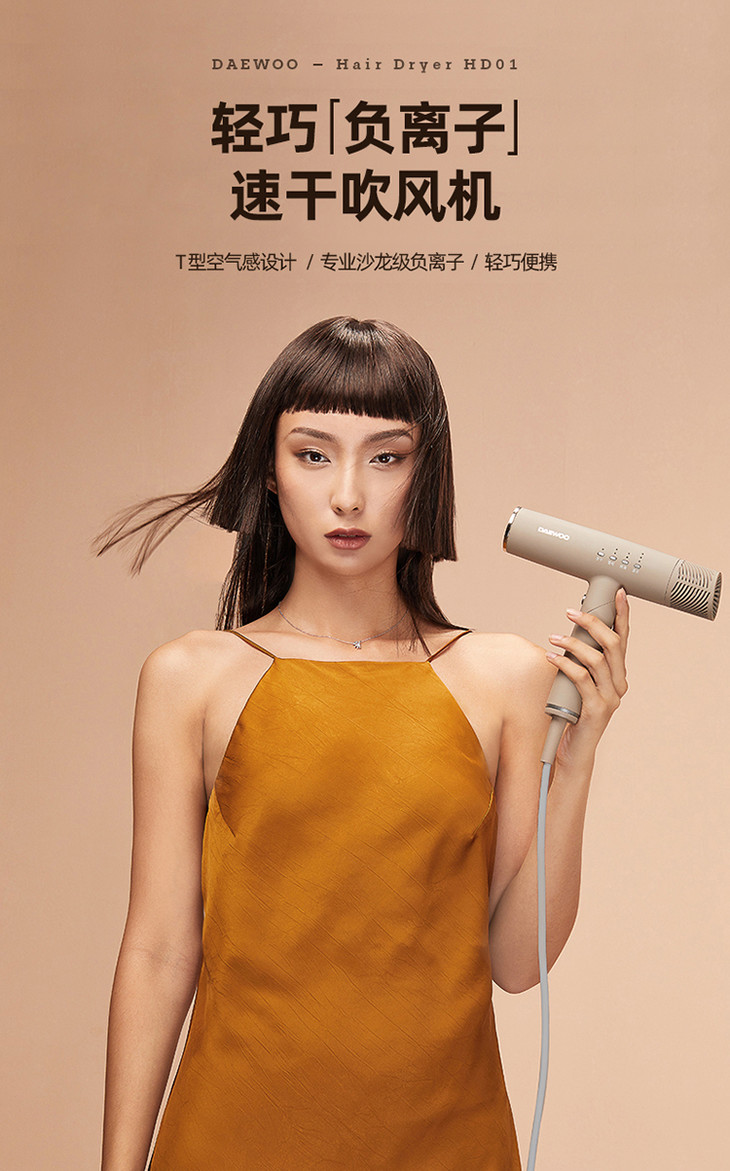 【大宇】DAEWOO韩国大宇吹风机负离子电吹风家用风筒护发速干折叠便携恒温HD01