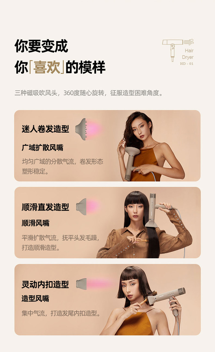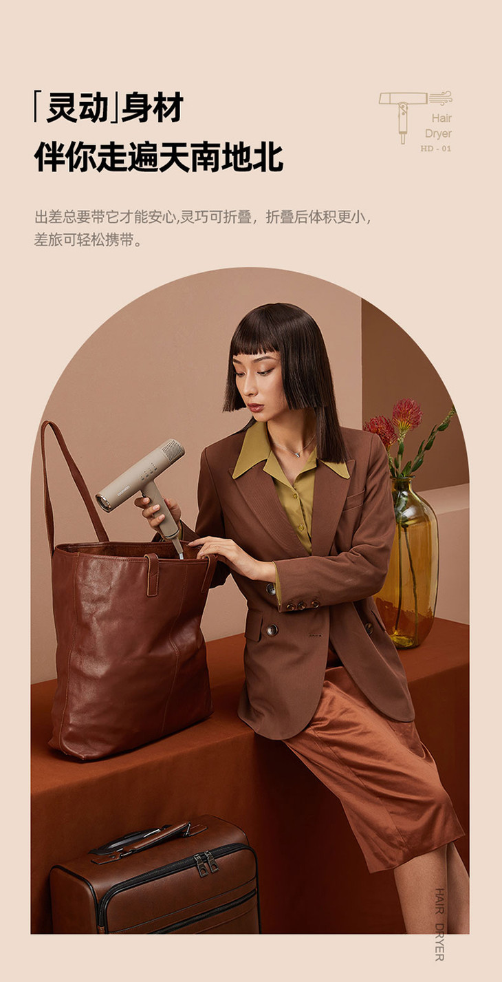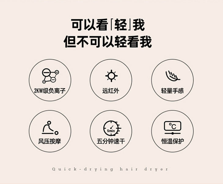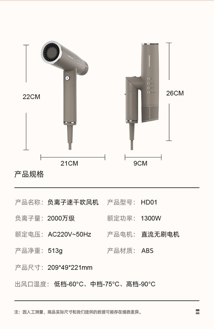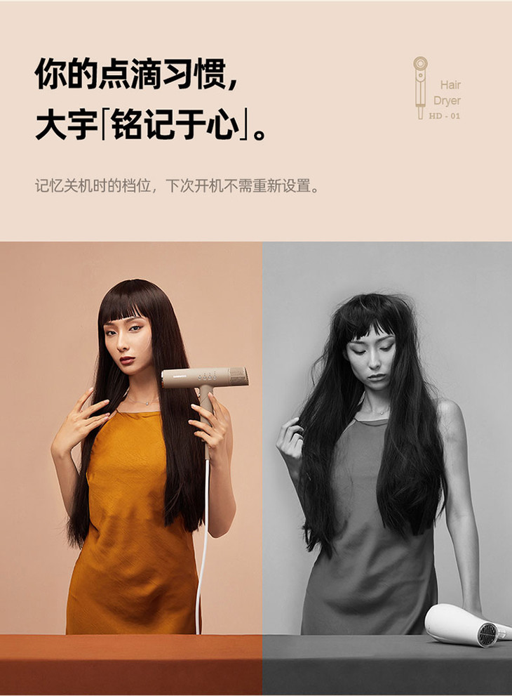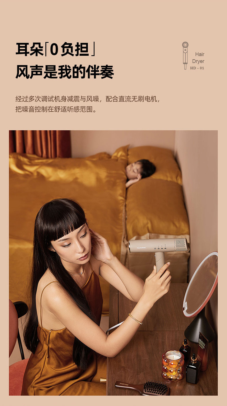 【大宇】DAEWOO韩国大宇吹风机负离子电吹风家用风筒护发速干折叠便携恒温HD01
