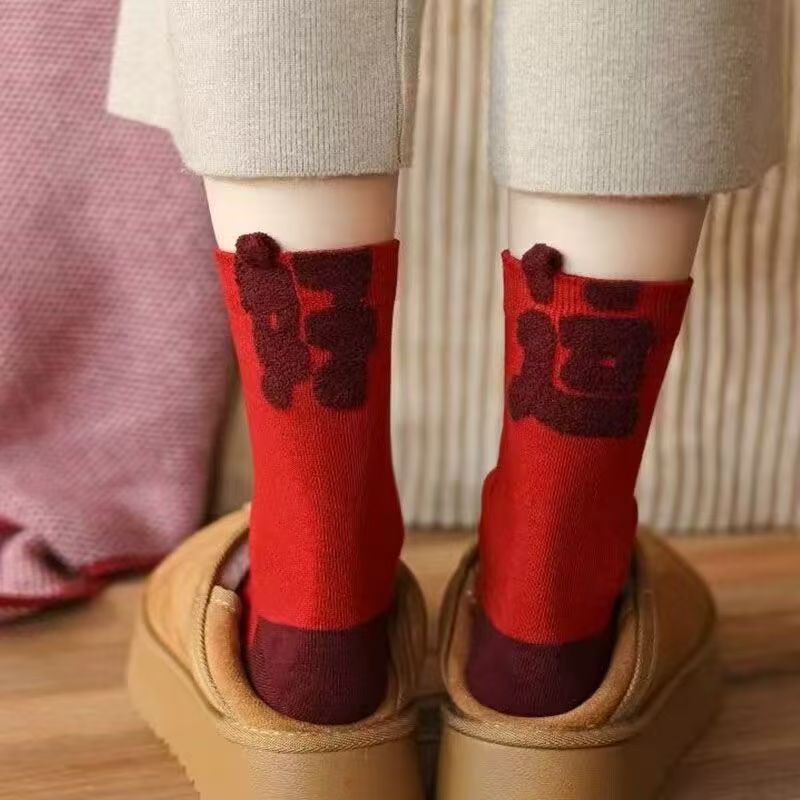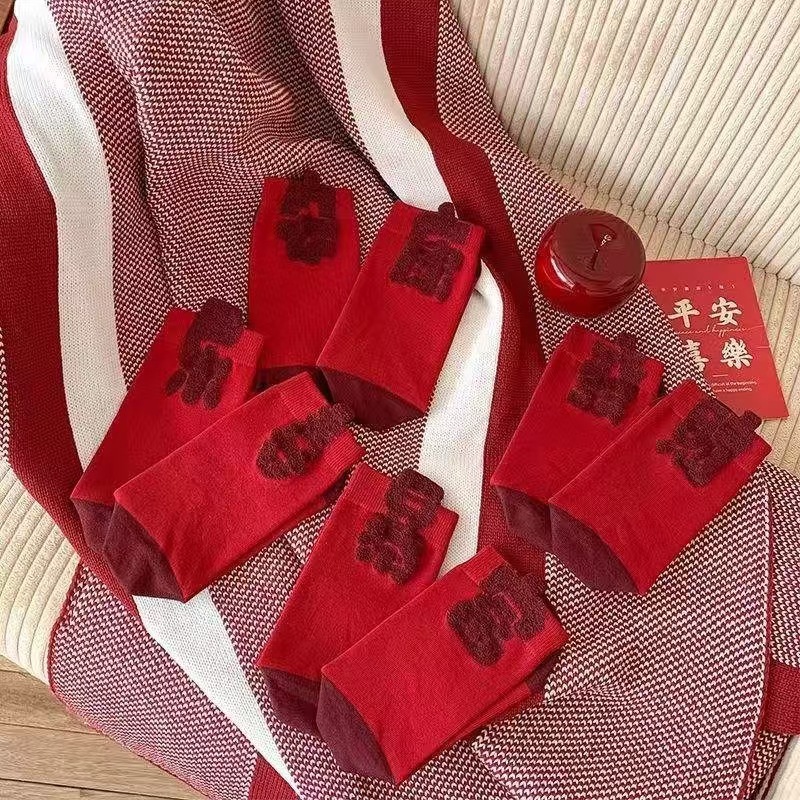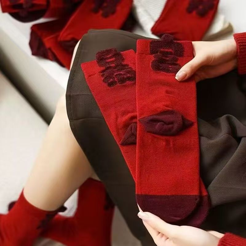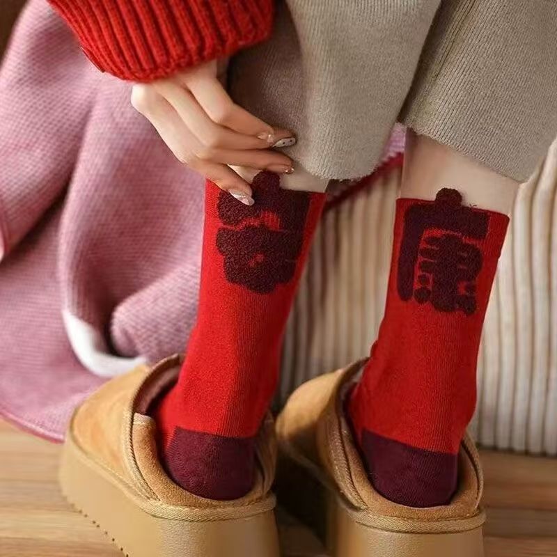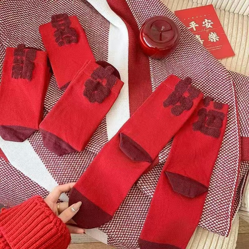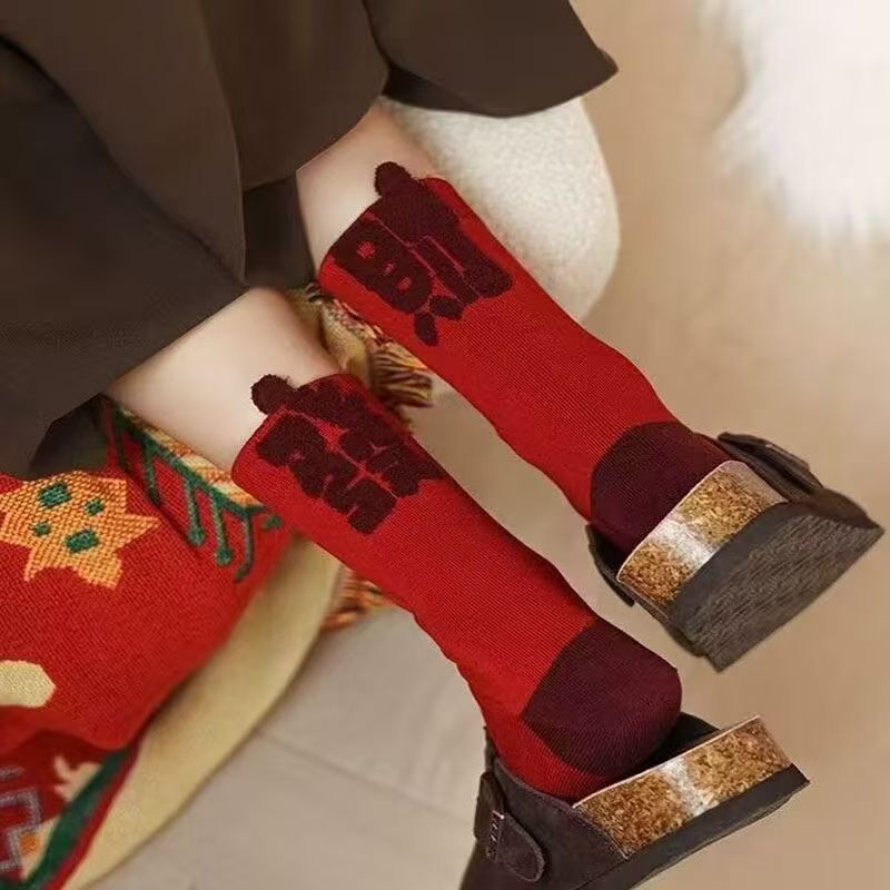 【精选优质面料云感柔软❗️贴身守护好运加持】2026年中筒袜新款男女新年袜马年本命年喜庆大红袜好运暴富文创立体时尚袜。jb