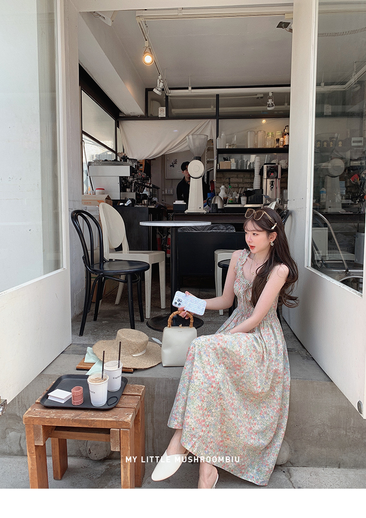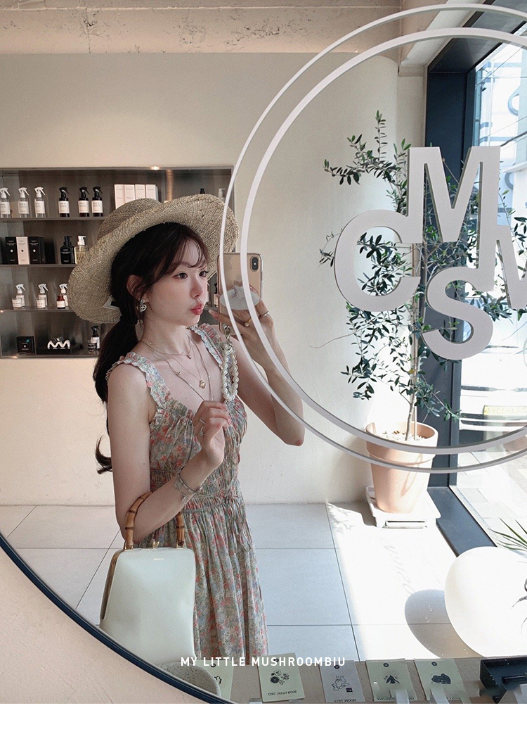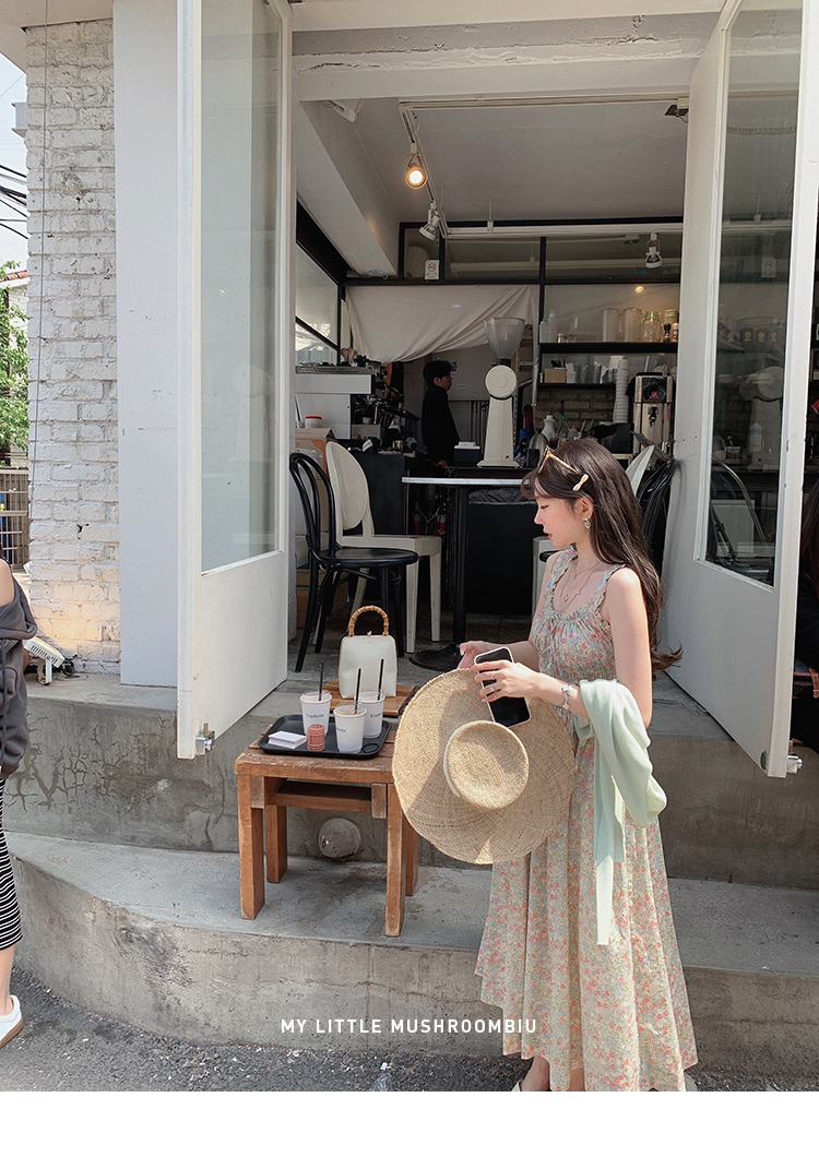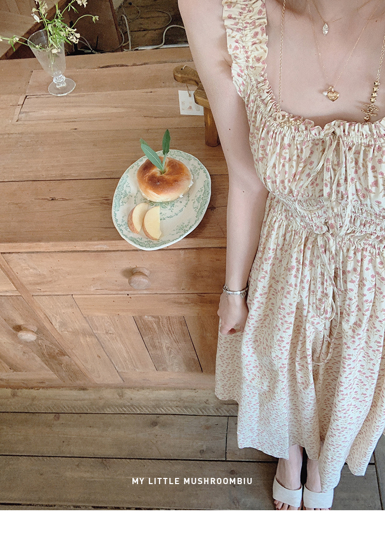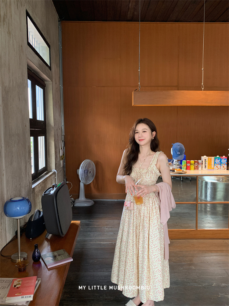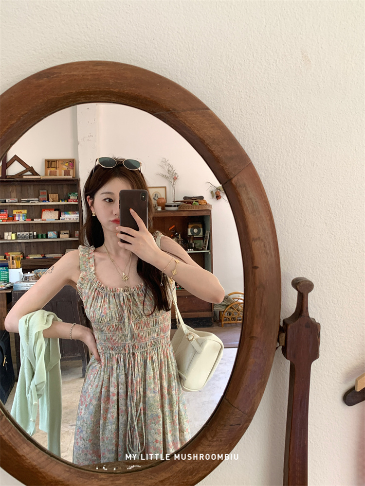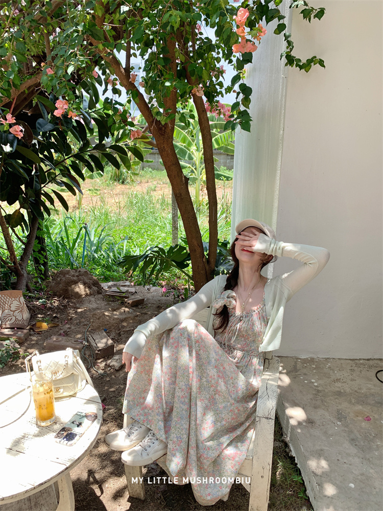 金蘑菇菇 Bonheur热恋岛屿/ 清新田园度假风碎花吊带连衣裙小众