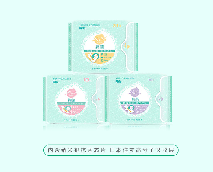 Asimi阿希米纳米银芯片抗菌卫生巾 日夜组合3包