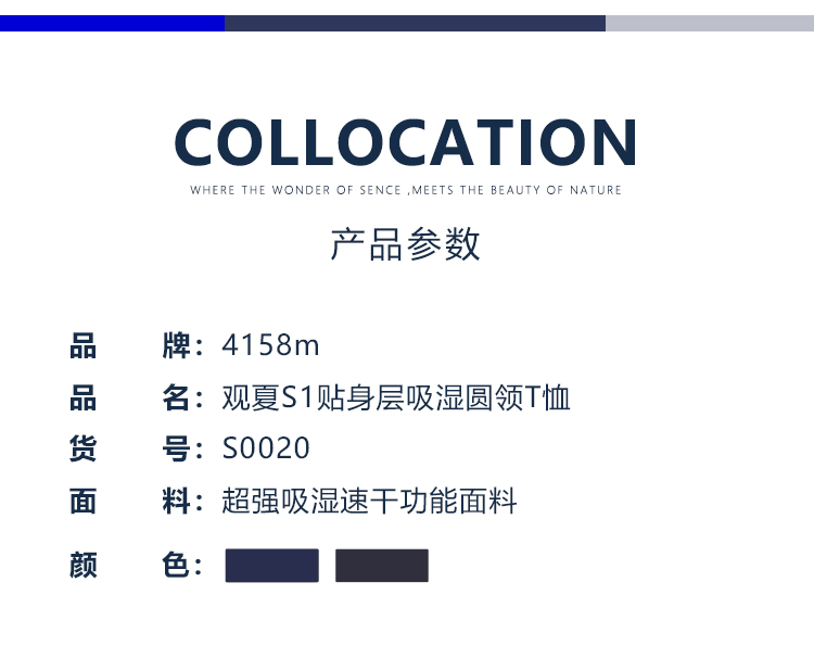 4158m山系行政 观夏S1贴身层吸湿圆领T恤速干T恤男圆领速干透气