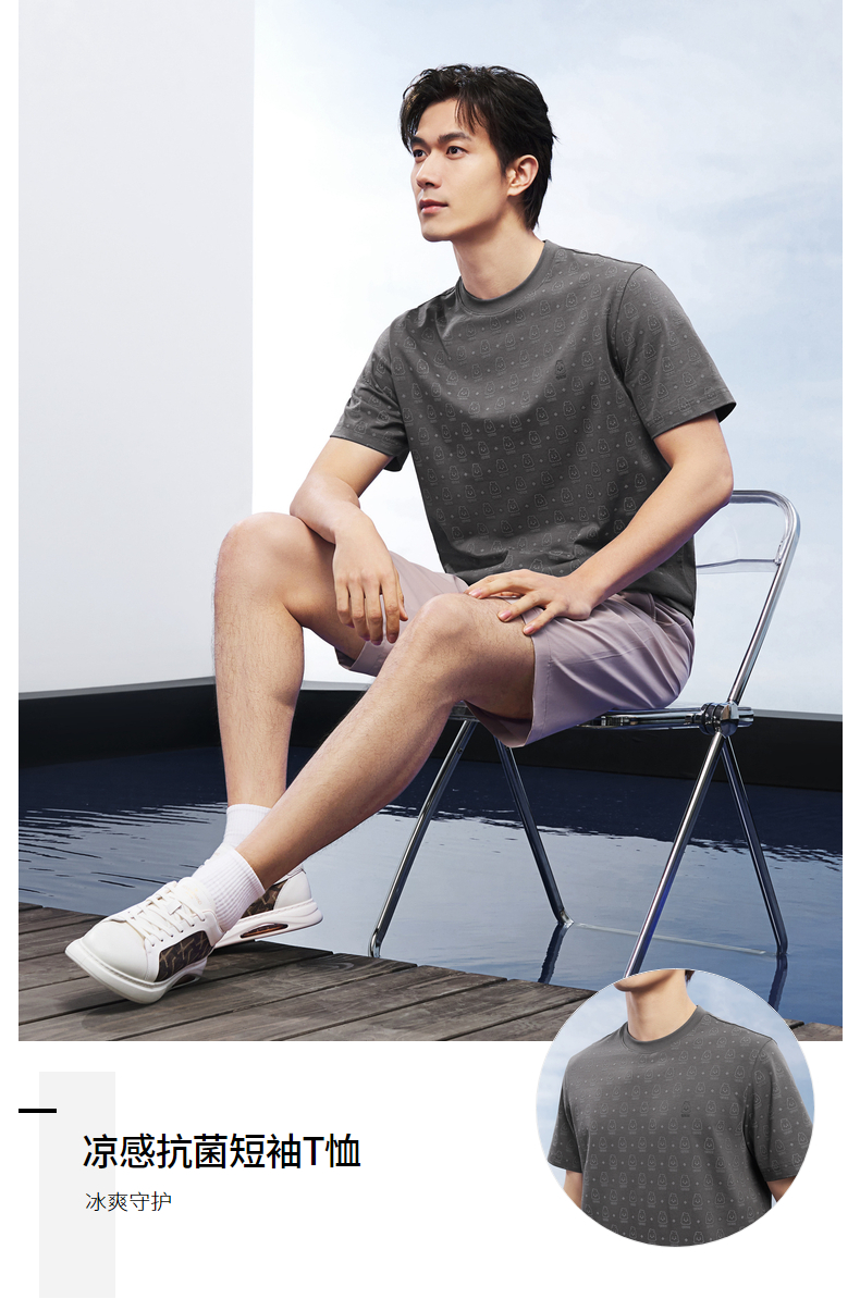 【柒先生系列】柒牌凉感短袖T恤26夏季新款索罗纳透气休闲上衣 130T71550