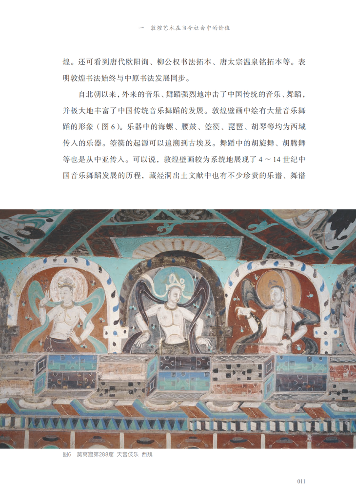 敦煌艺术融汇了中国和外国、汉族和其他民族艺术,代表了4~14世纪中国佛教艺术的重要成就,形成了一千年间系统的艺术史。特别是由于魏晋至隋唐时期中国内地的古代艺术遗存极少,敦煌艺术为全面认识中国艺术史提供了丰富而珍贵的资料。