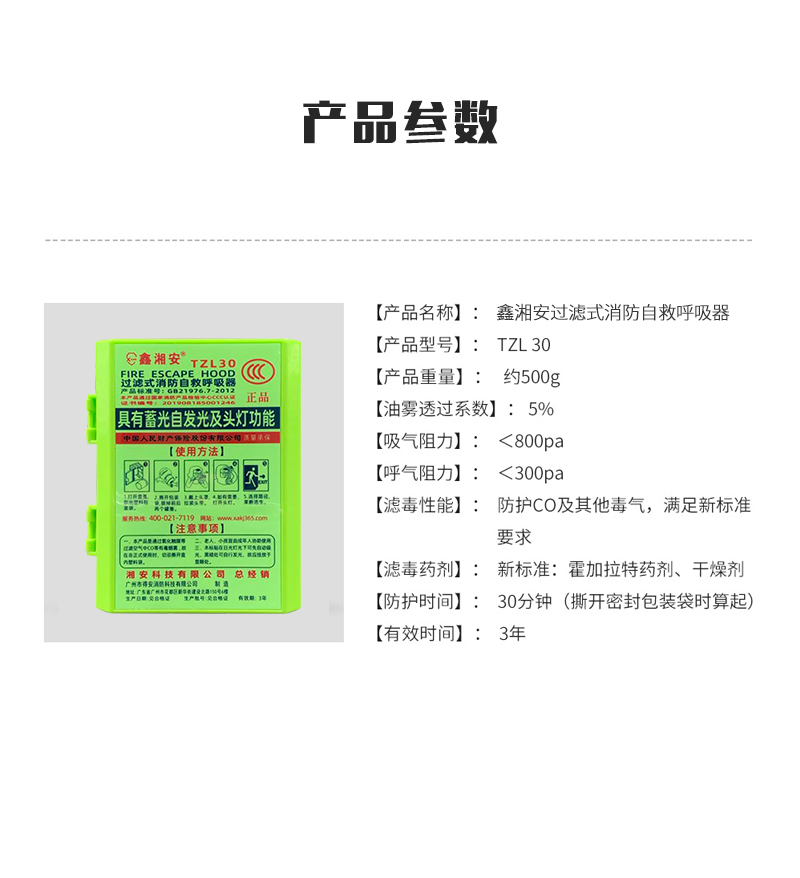 过滤式消防自救呼吸器(带头灯)