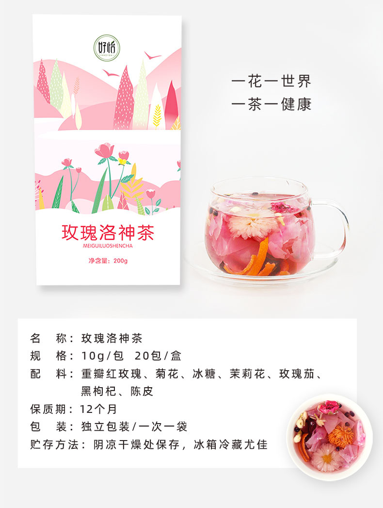 玫瑰洛神花茶+水果片茶 养生女人茶调理 美容养颜水果片茶包100克/盒玖瑰洛神花茶200克/盒